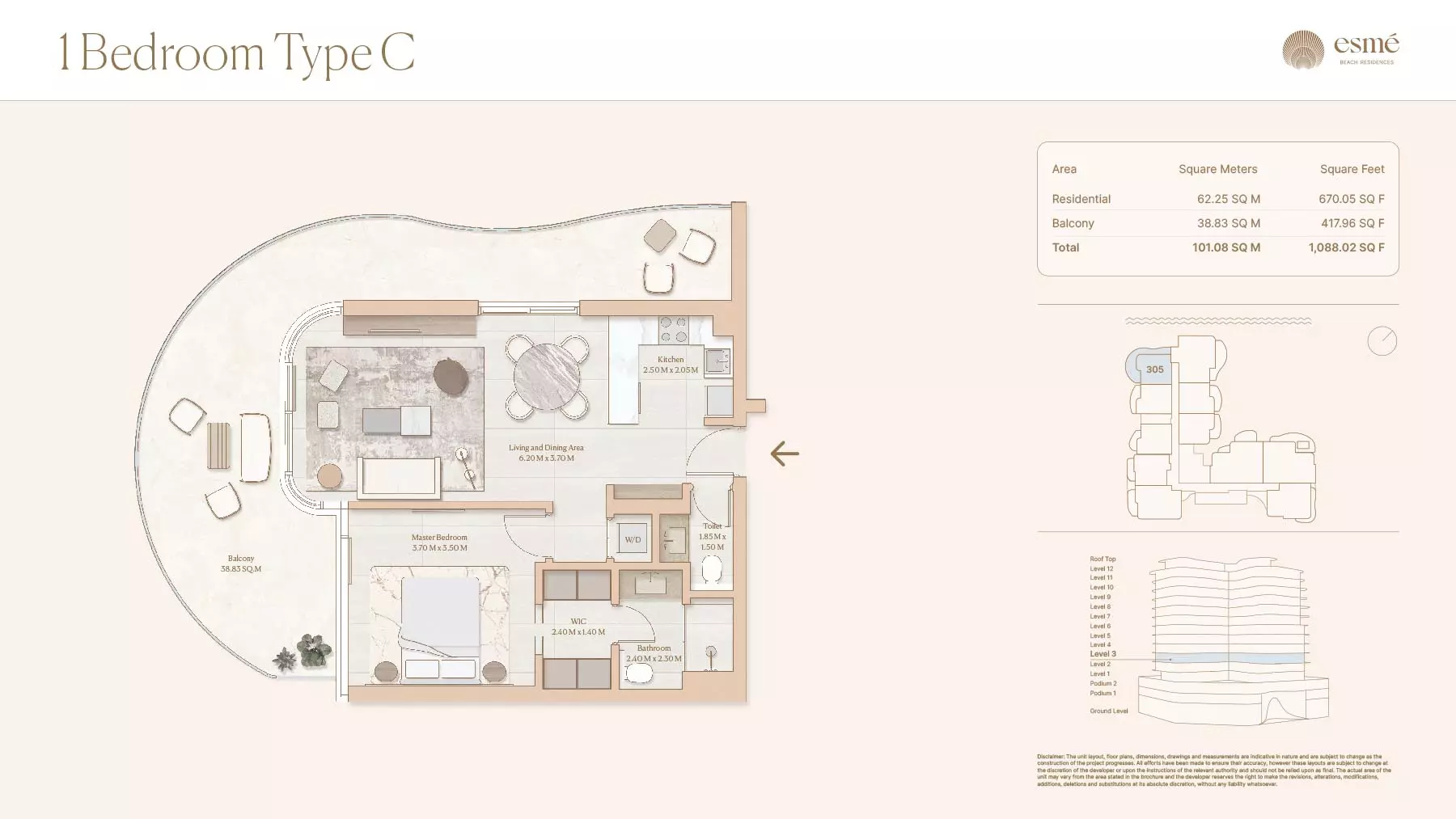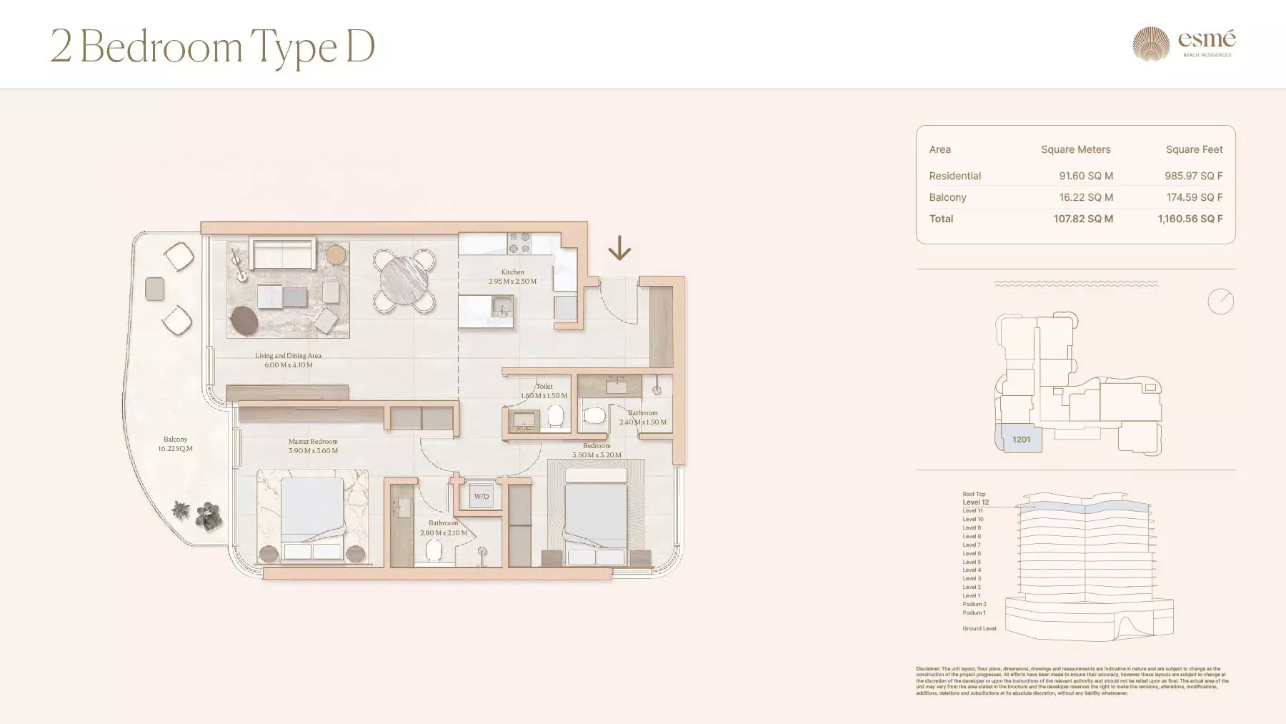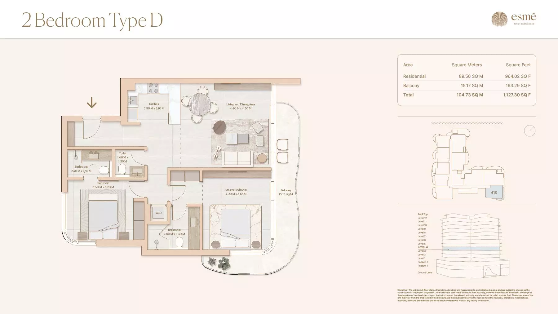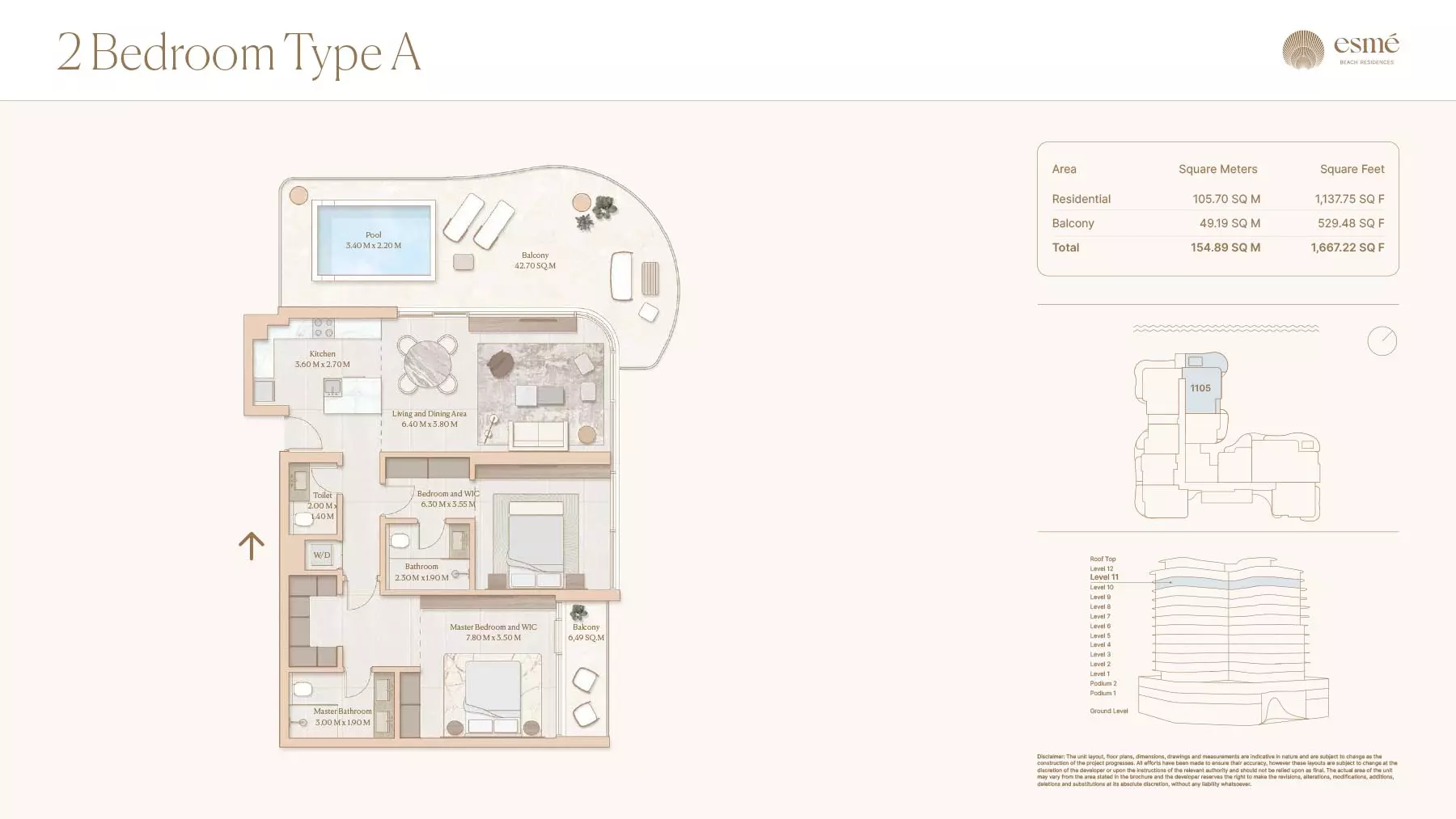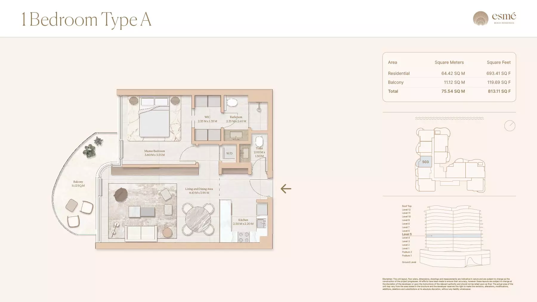 Esme Beach Residences offers a selection of 1, 2, and 3-bedroom apartments with various layouts: 1-Bedroom Apartments: Sizes range from 756 to 1,264 square feet. 2-Bedroom Apartments: Sizes range from 1,104 to 1,854 square feet. 3-Bedroom Apartments: Sizes vary; specific details can be obtained from the developer.