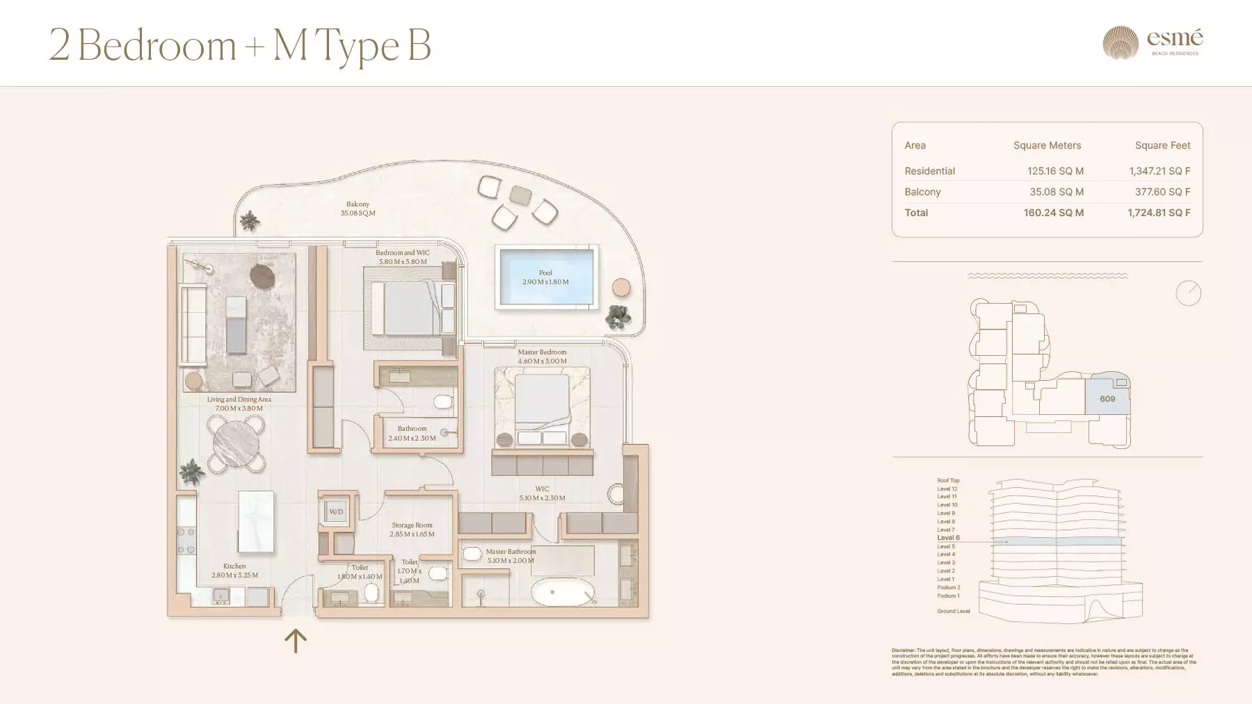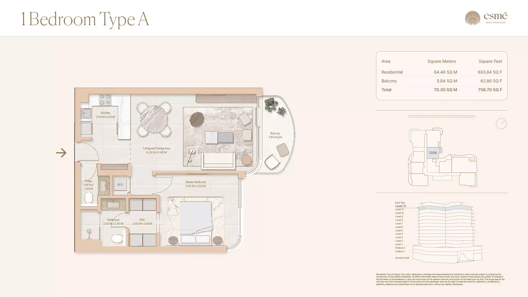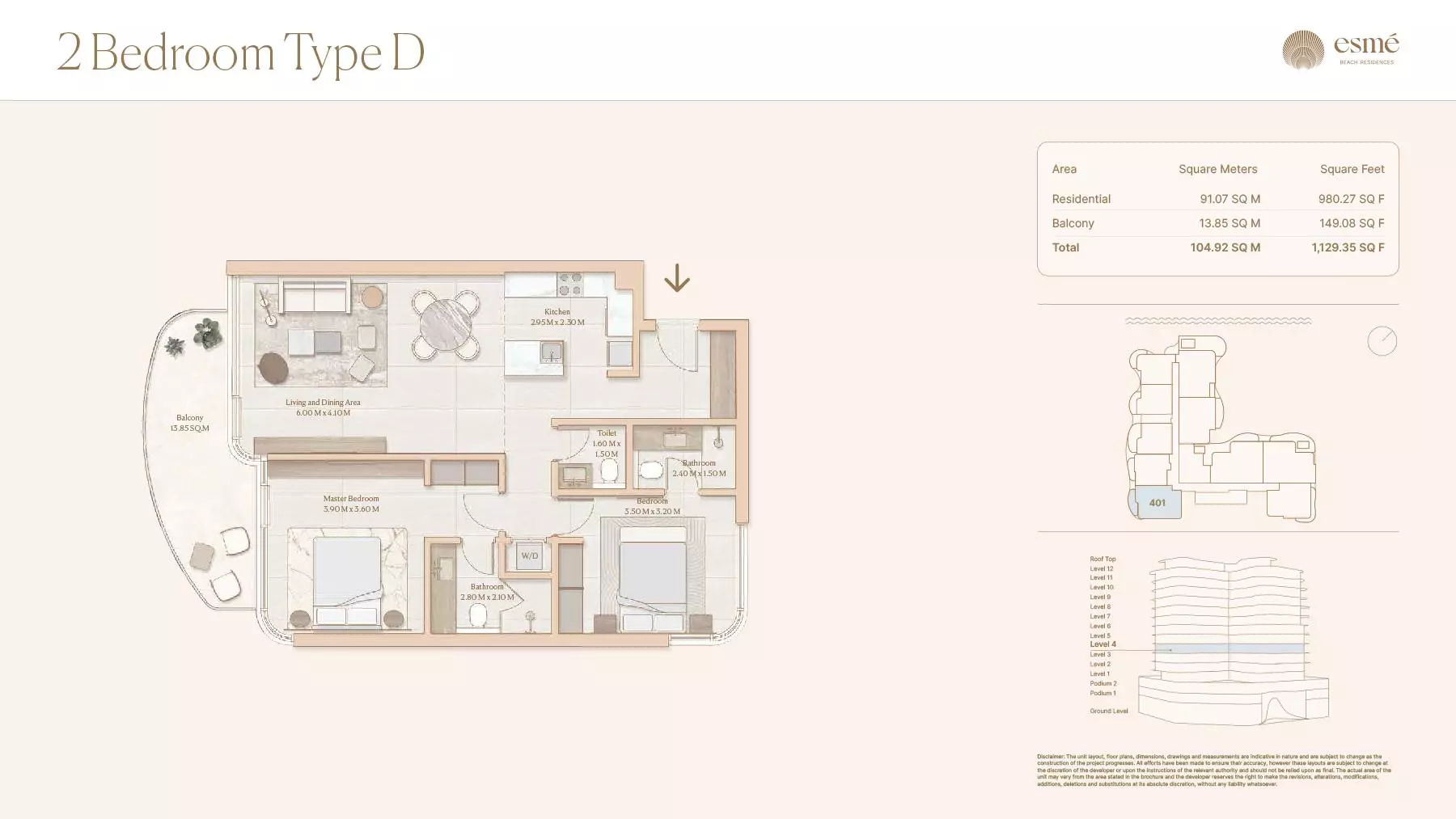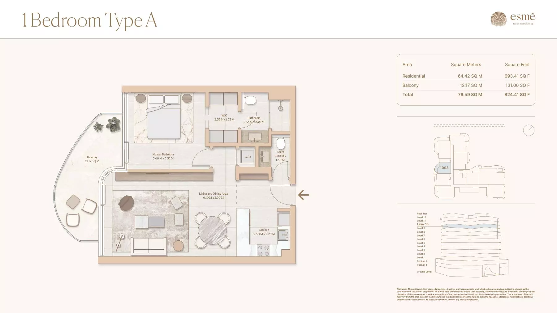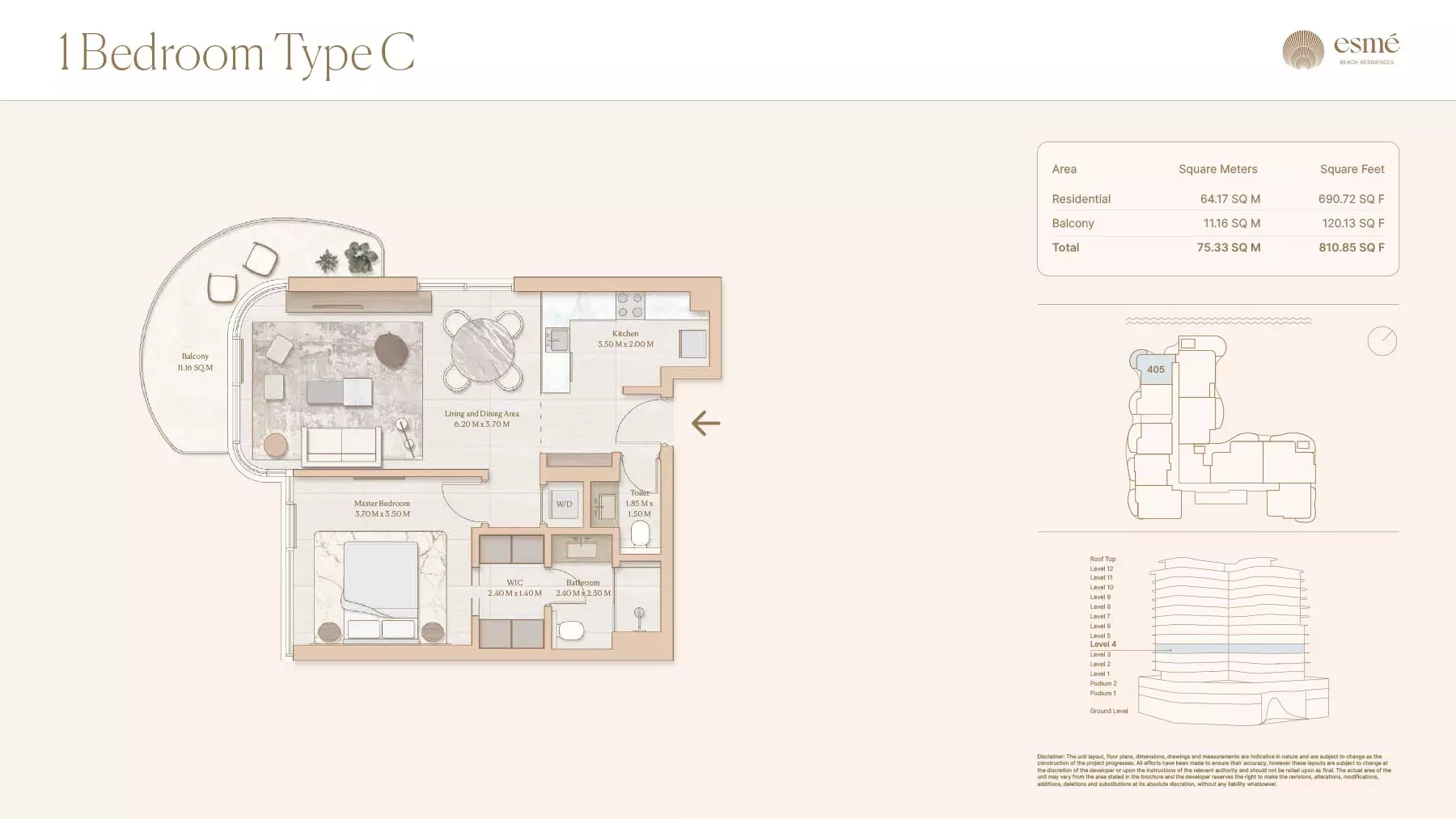 Esme Beach Residences offers a selection of 1, 2, and 3-bedroom apartments with various layouts: 1-Bedroom Apartments: Sizes range from 756 to 1,264 square feet. 2-Bedroom Apartments: Sizes range from 1,104 to 1,854 square feet. 3-Bedroom Apartments: Sizes vary; specific details can be obtained from the developer.