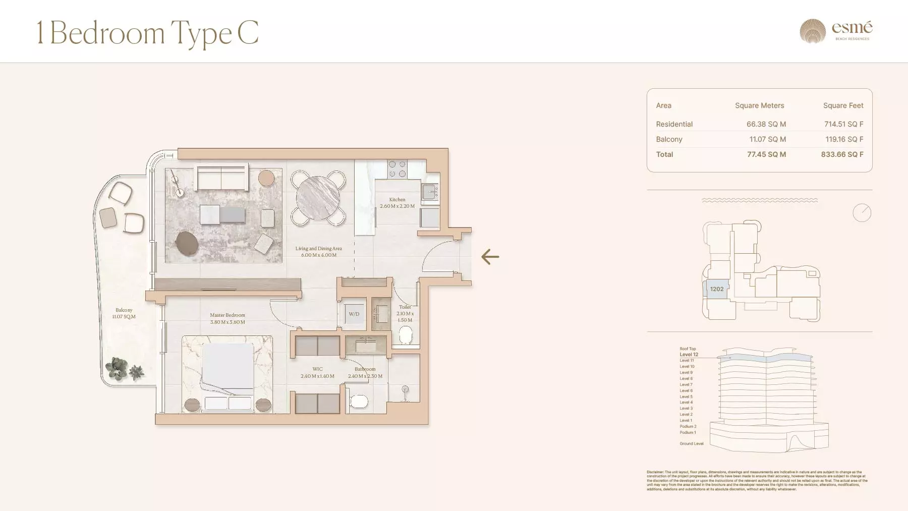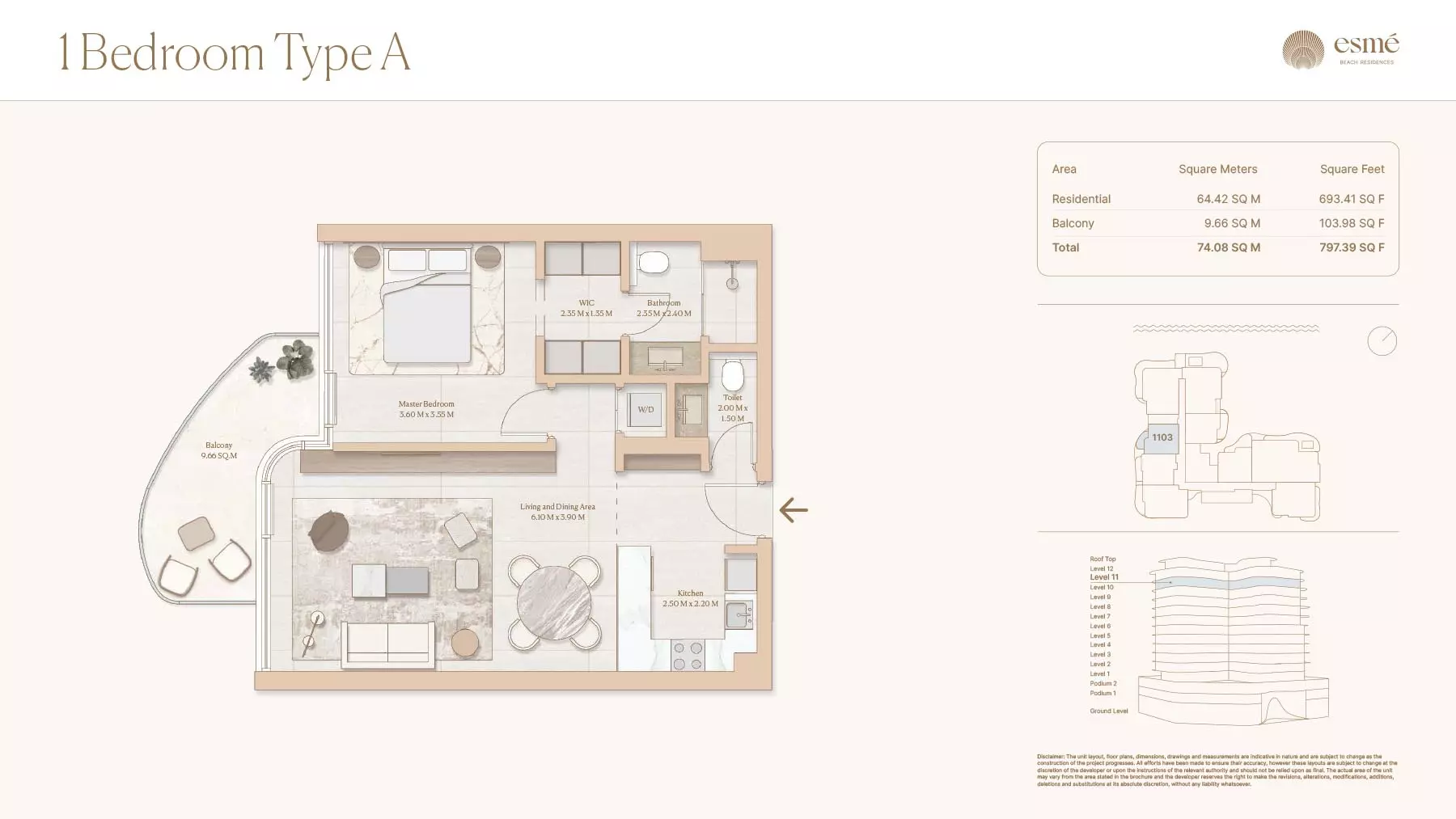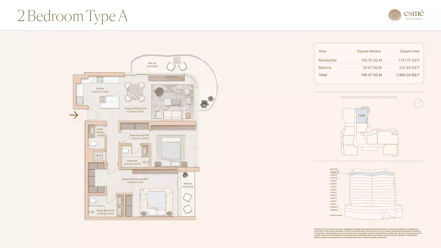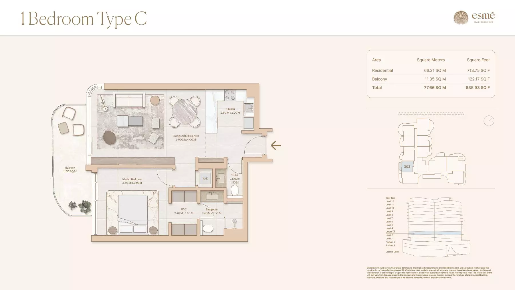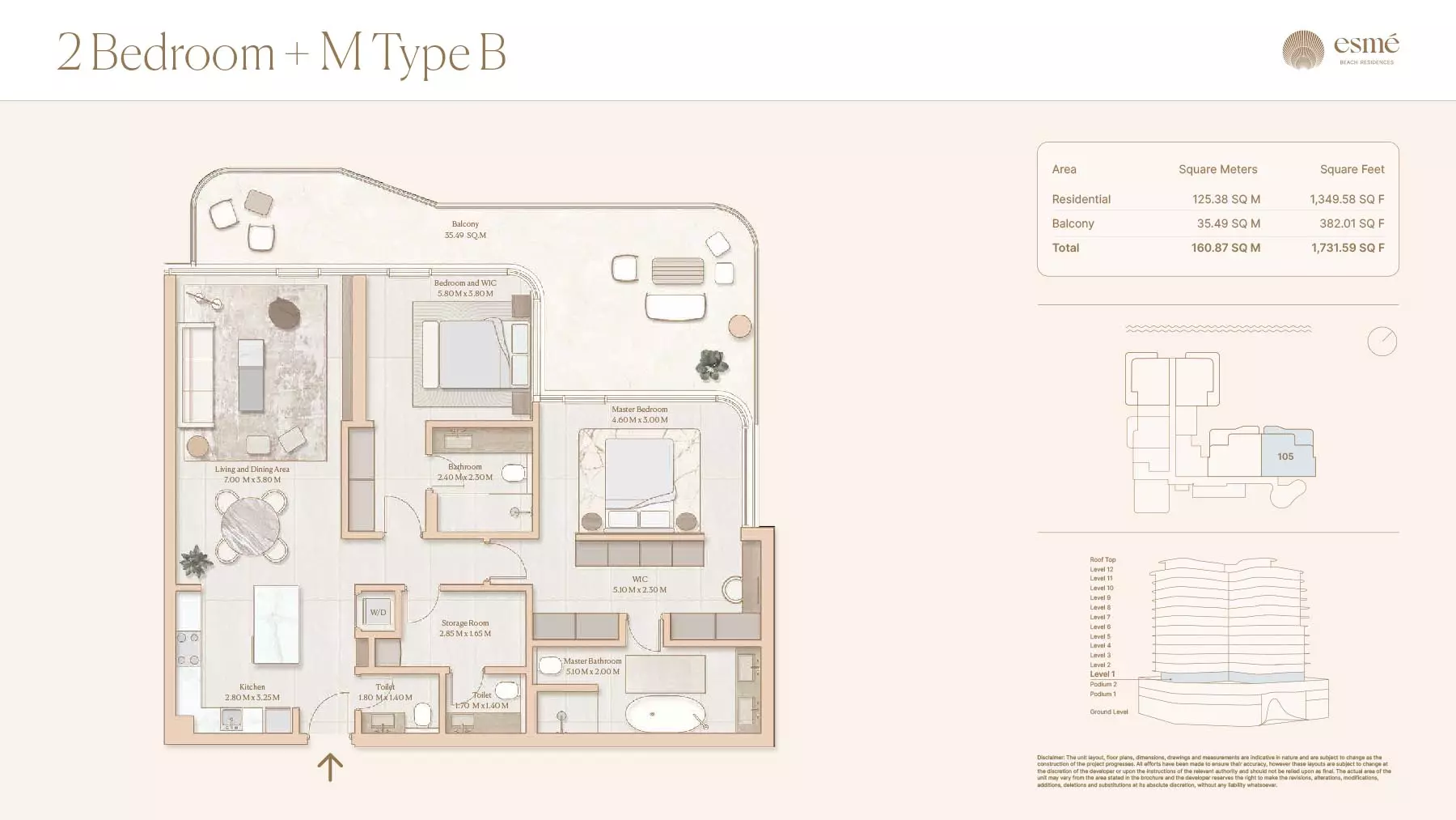 Esme Beach Residences offers a selection of 1, 2, and 3-bedroom apartments with various layouts: 1-Bedroom Apartments: Sizes range from 756 to 1,264 square feet. 2-Bedroom Apartments: Sizes range from 1,104 to 1,854 square feet. 3-Bedroom Apartments: Sizes vary; specific details can be obtained from the developer.