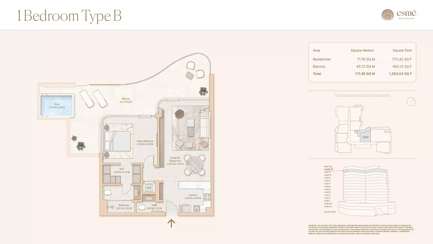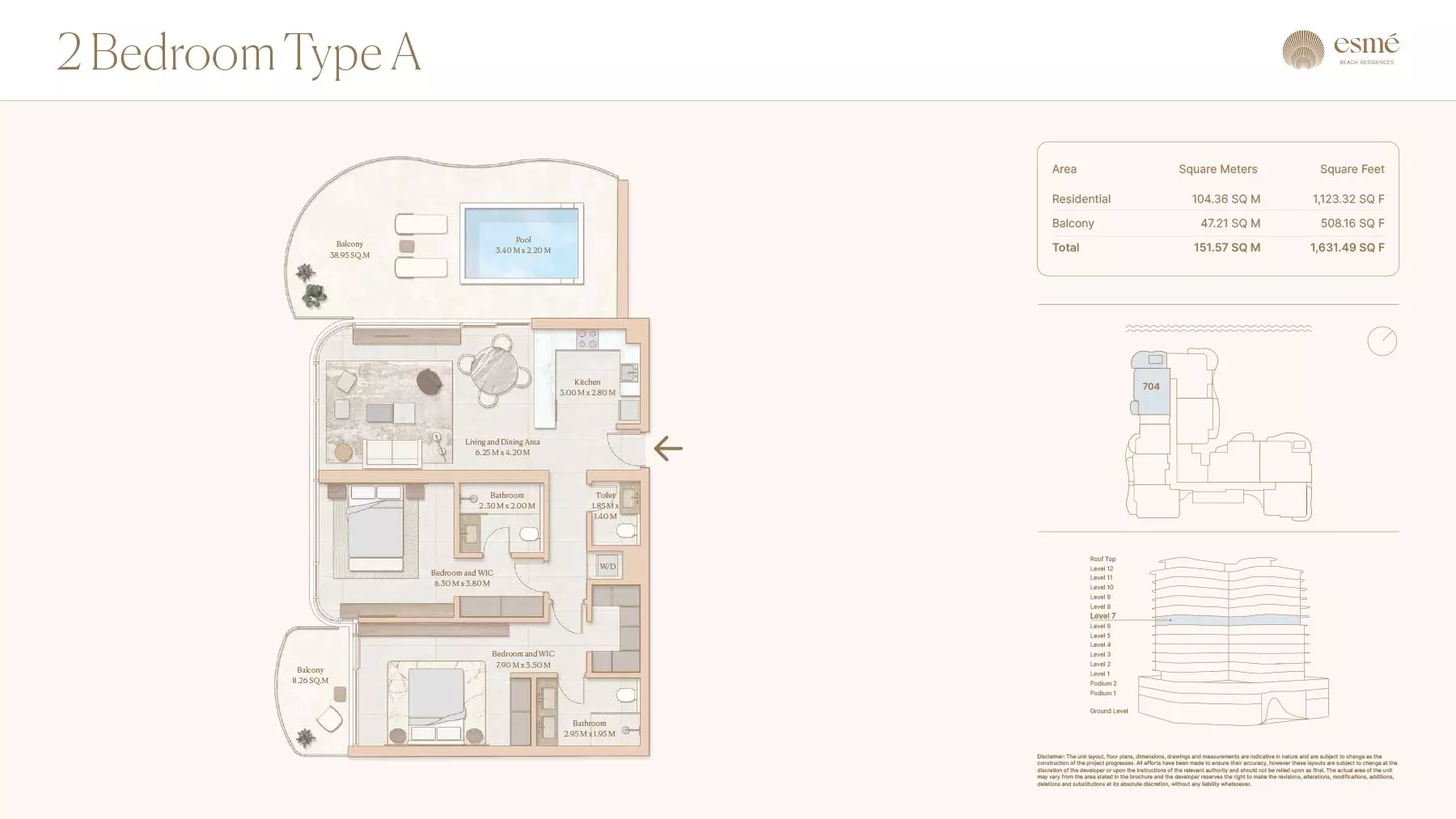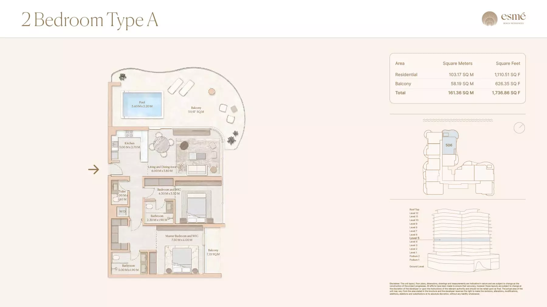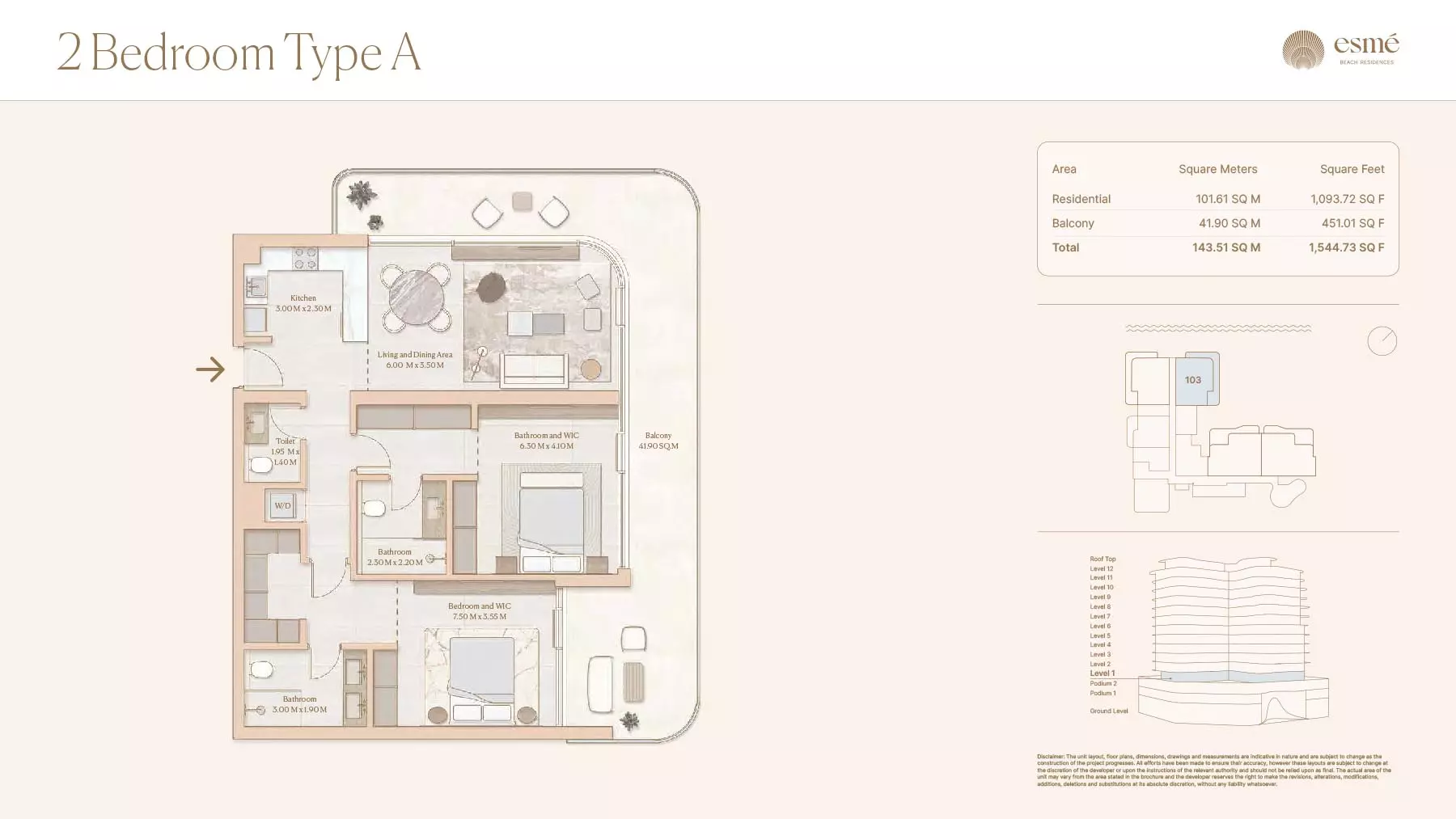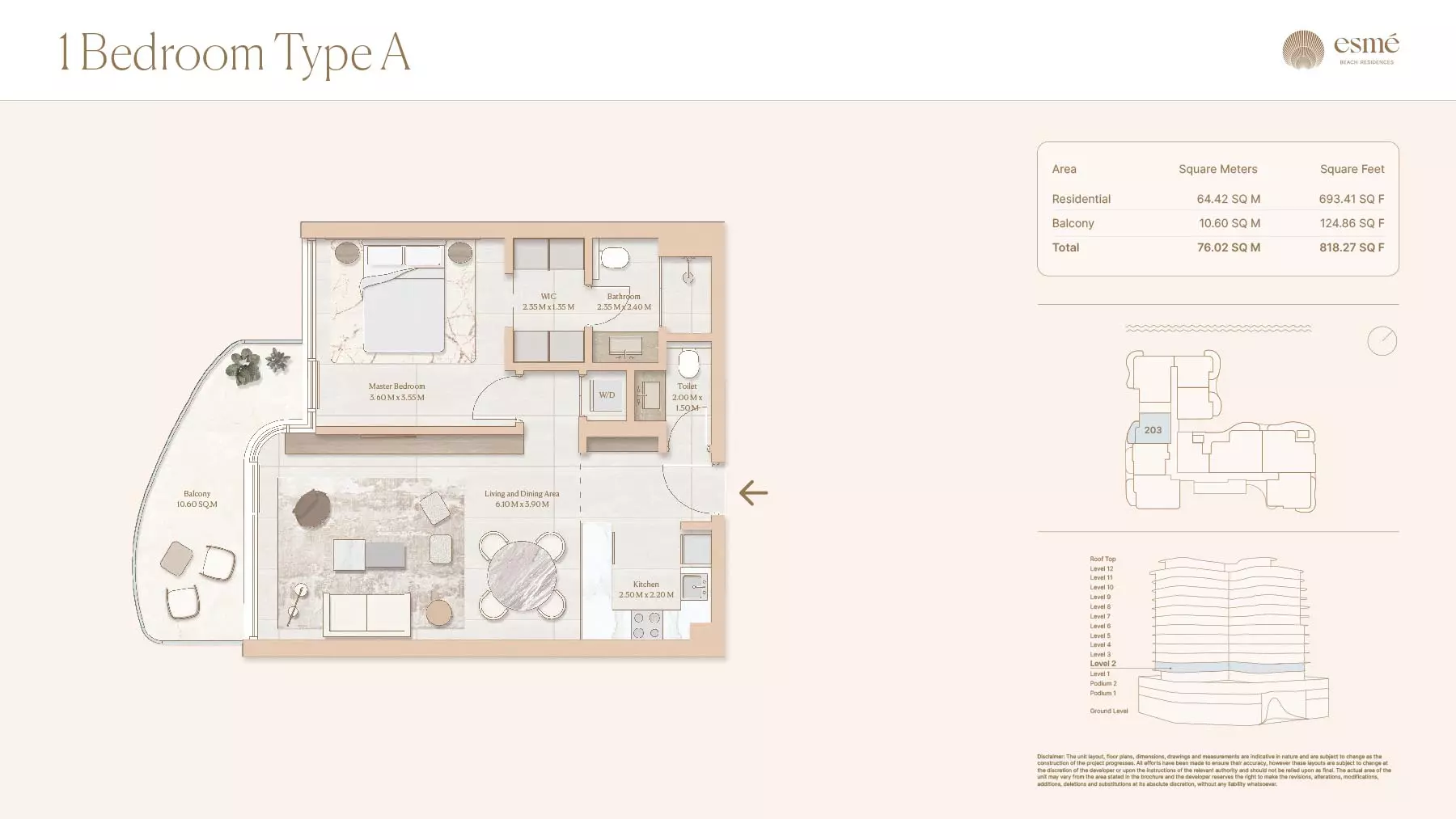 Esme Beach Residences offers a selection of 1, 2, and 3-bedroom apartments with various layouts: 1-Bedroom Apartments: Sizes range from 756 to 1,264 square feet. 2-Bedroom Apartments: Sizes range from 1,104 to 1,854 square feet. 3-Bedroom Apartments: Sizes vary; specific details can be obtained from the developer.