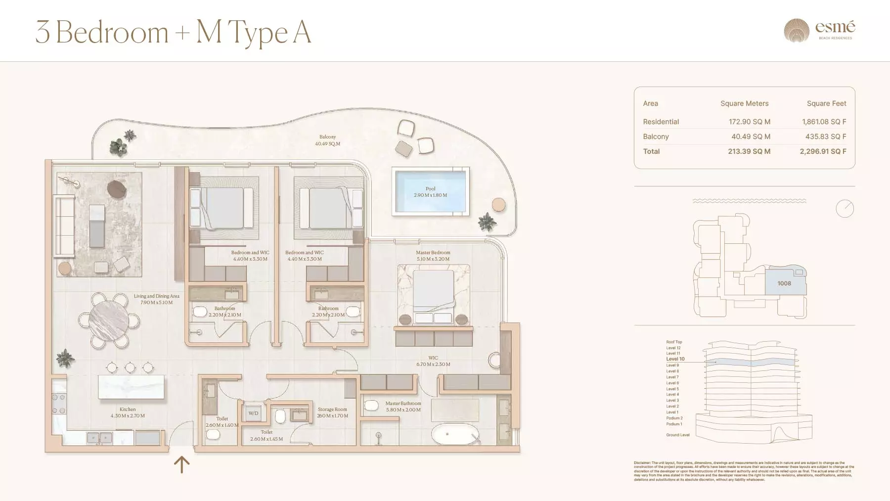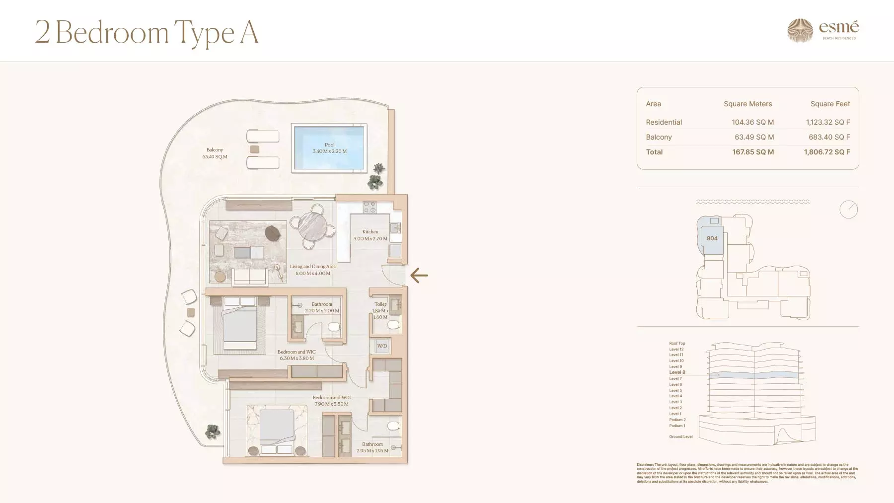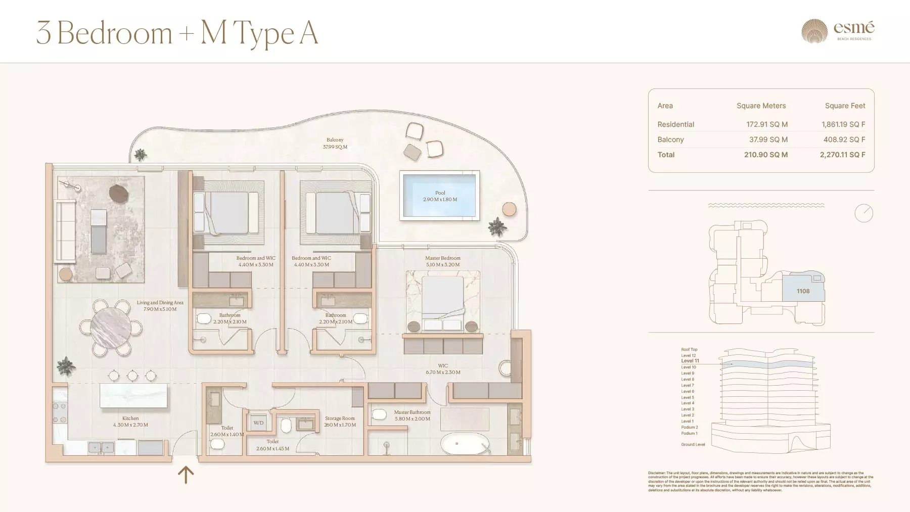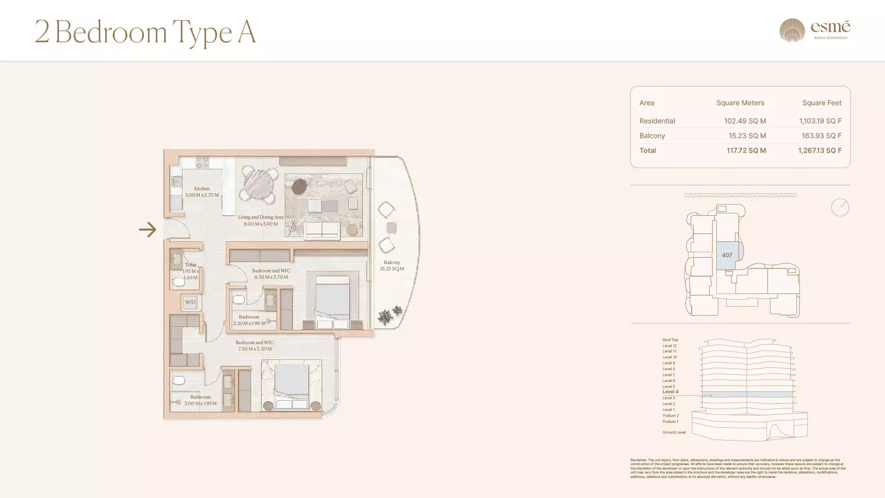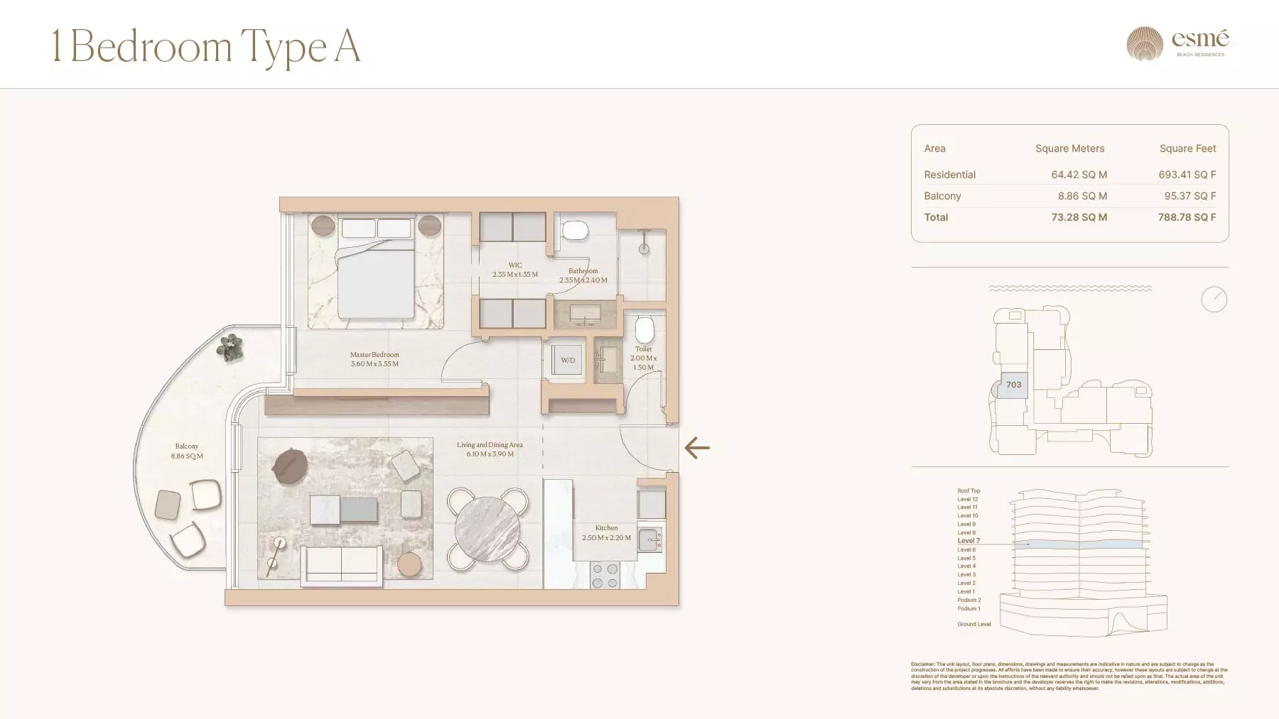 Esme Beach Residences offers a selection of 1, 2, and 3-bedroom apartments with various layouts: 1-Bedroom Apartments: Sizes range from 756 to 1,264 square feet. 2-Bedroom Apartments: Sizes range from 1,104 to 1,854 square feet. 3-Bedroom Apartments: Sizes vary; specific details can be obtained from the developer.