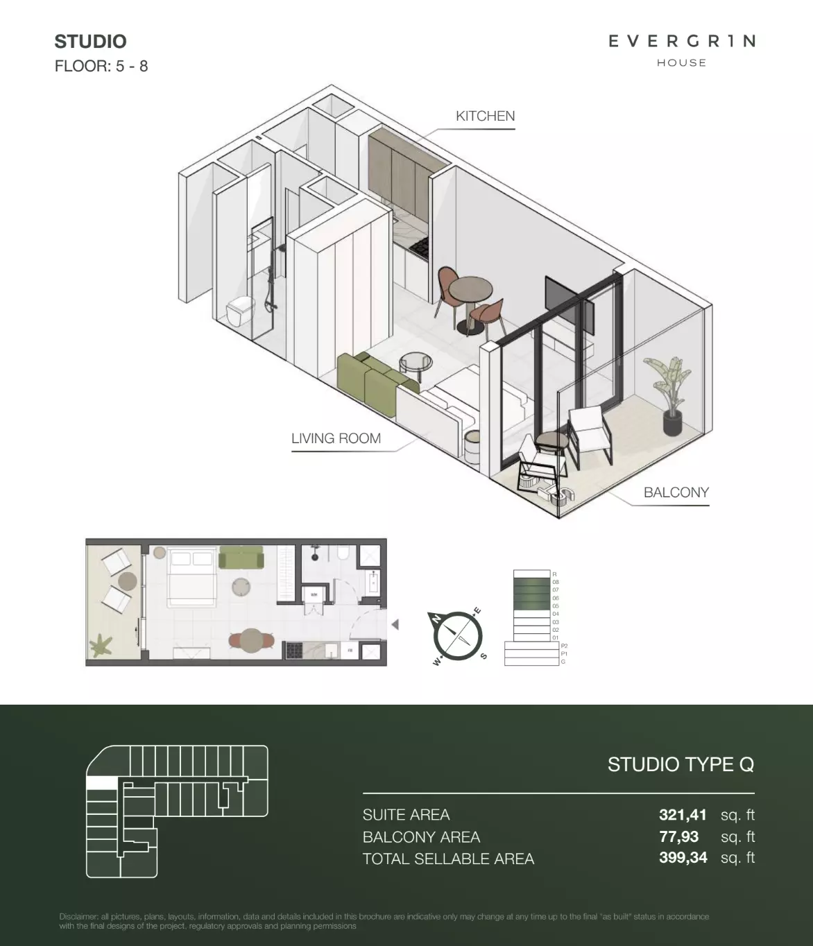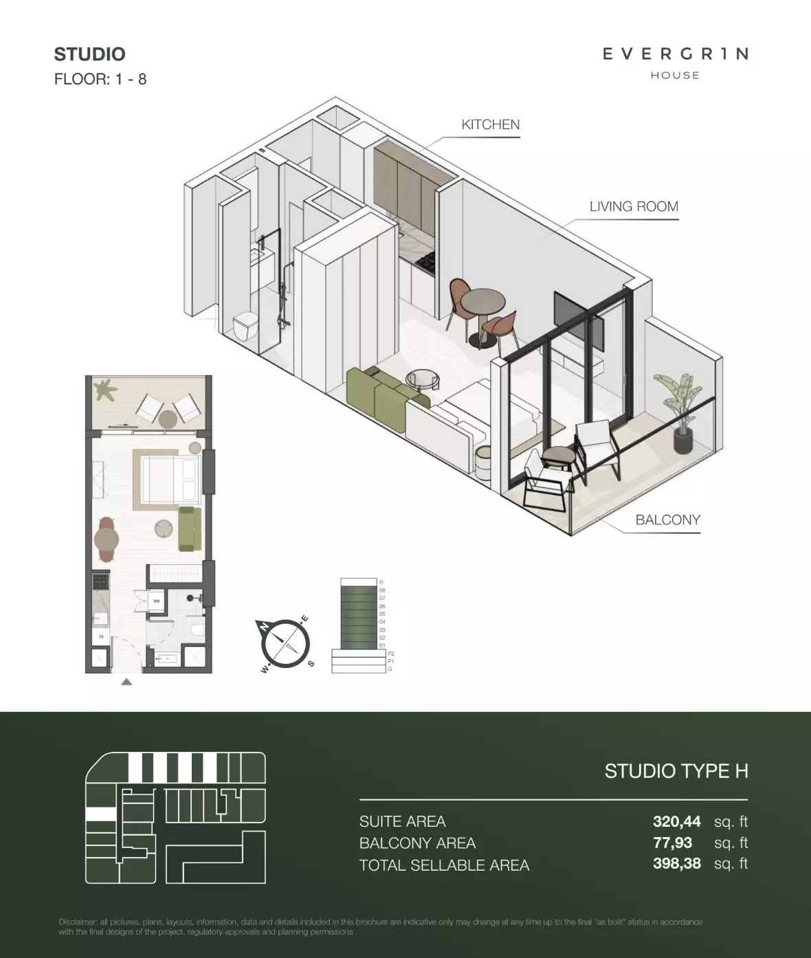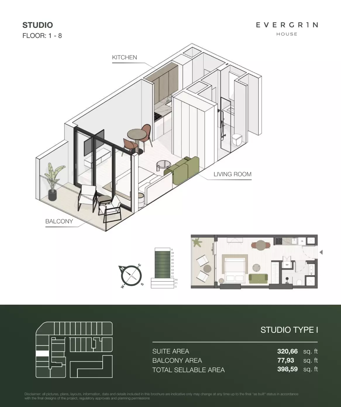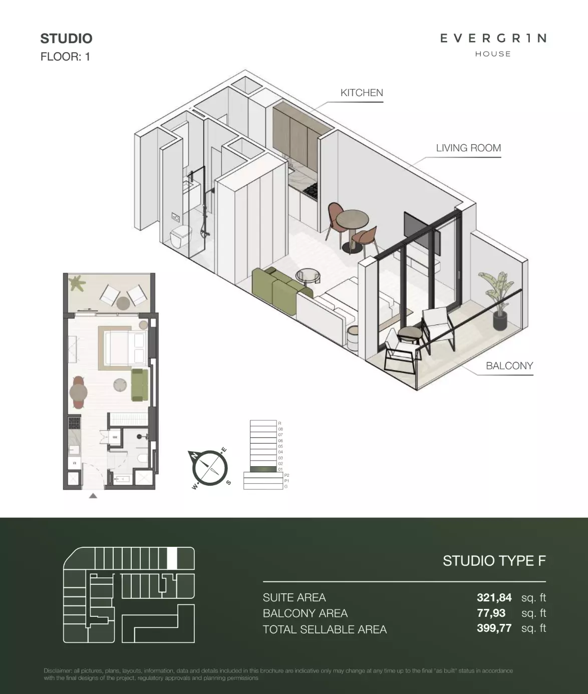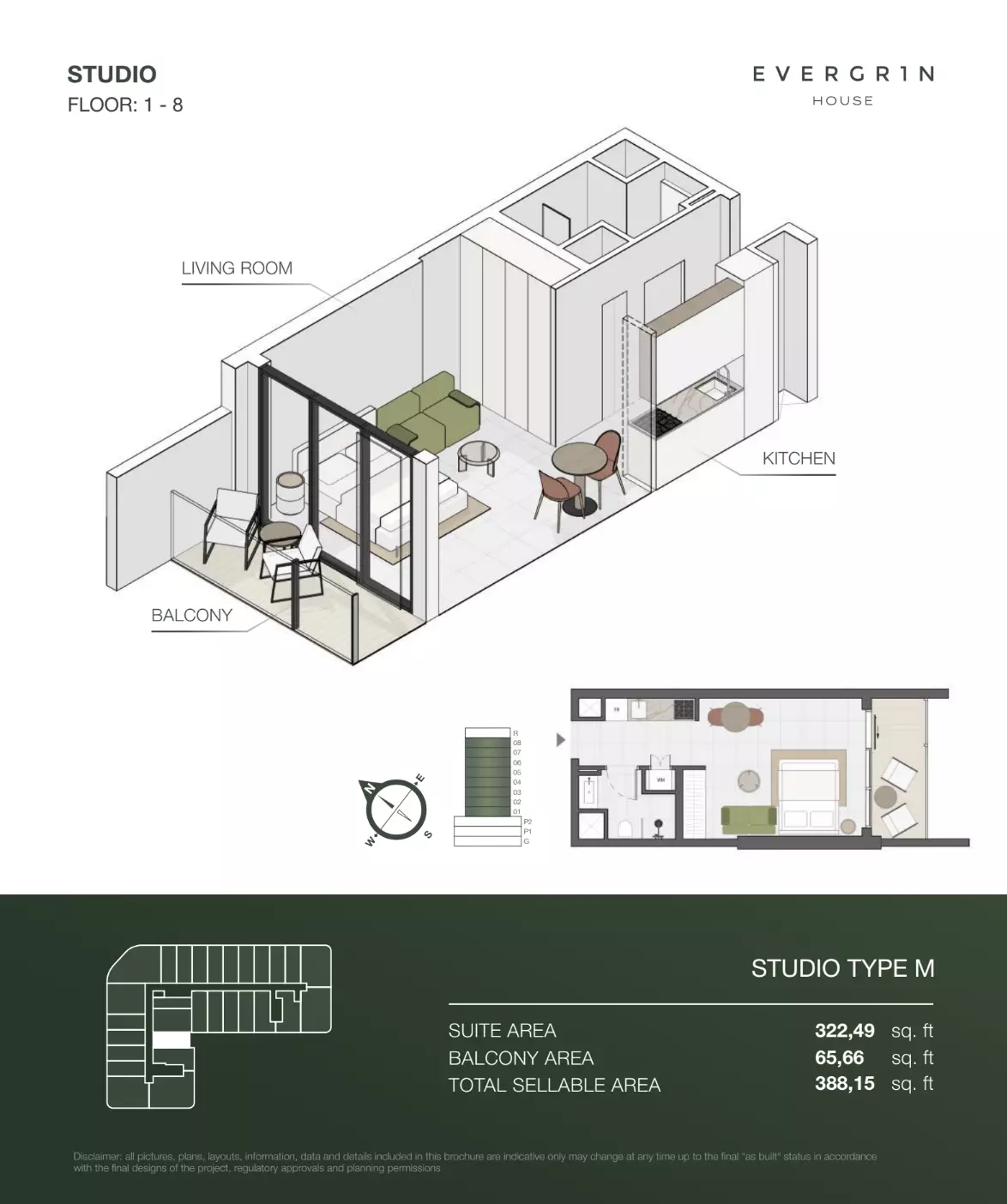 Evergr1n House offers a range of premium apartment options designed to cater to different needs and preferences. Housing options include studios, one-bedroom, and two-bedroom apartments. • Studio apartments are available with sizes ranging from 388 to 564 square feet, starting at 1 million AED. • One-bedroom apartments offer more spacious living, with sizes between 767 and 991 square feet, starting at 1.8 million AED. For larger households, • the two-bedroom apartments provide ample space, with sizes ranging from 1,137 to 1,138 square feet, starting at 2.6 million AED. These thoughtfully designed units combine functionality and style, creating ideal living spaces for modern residents.