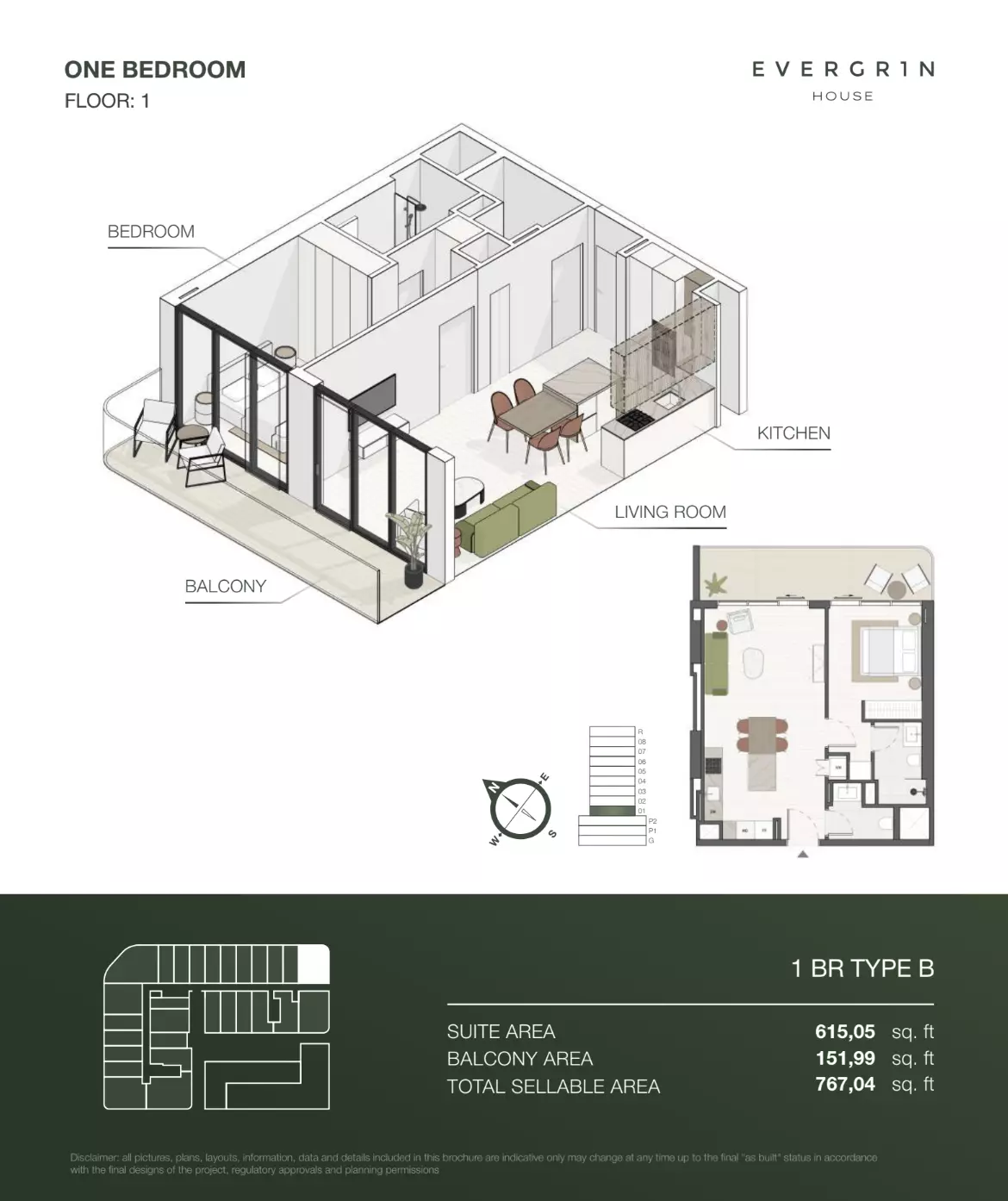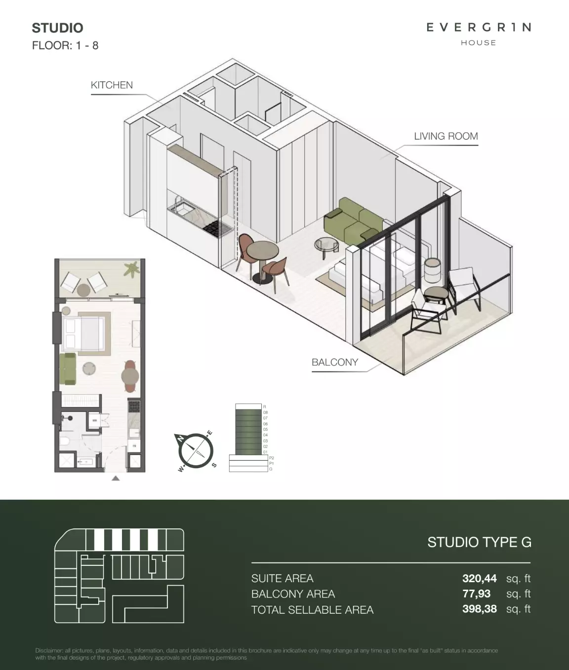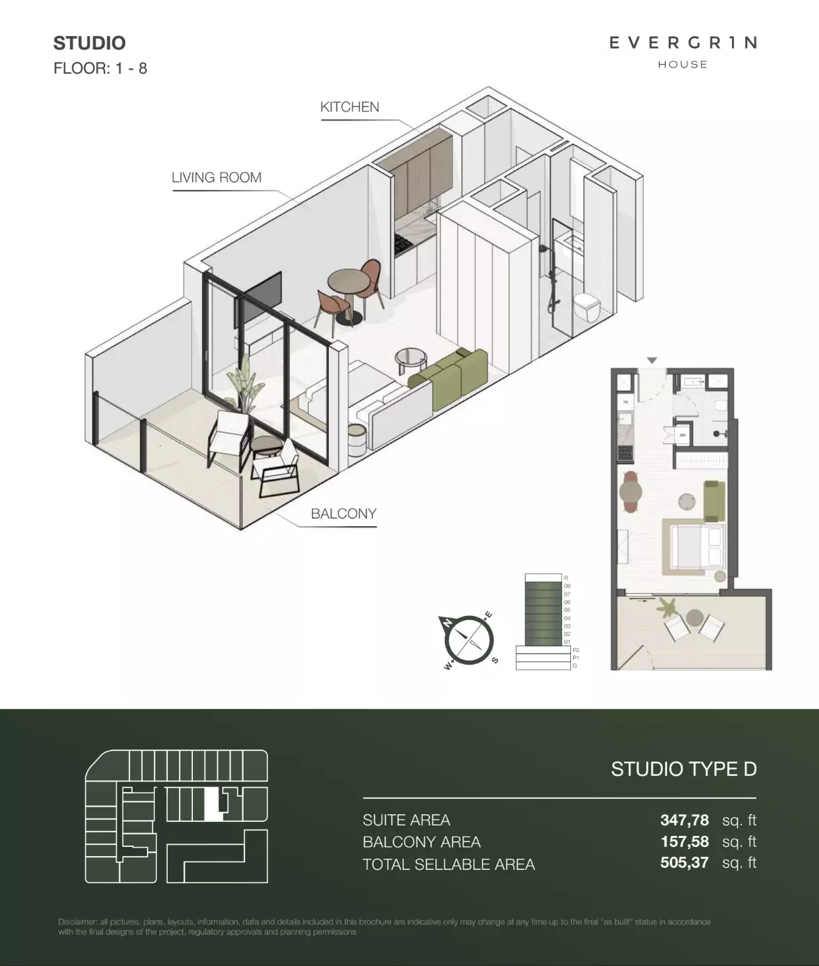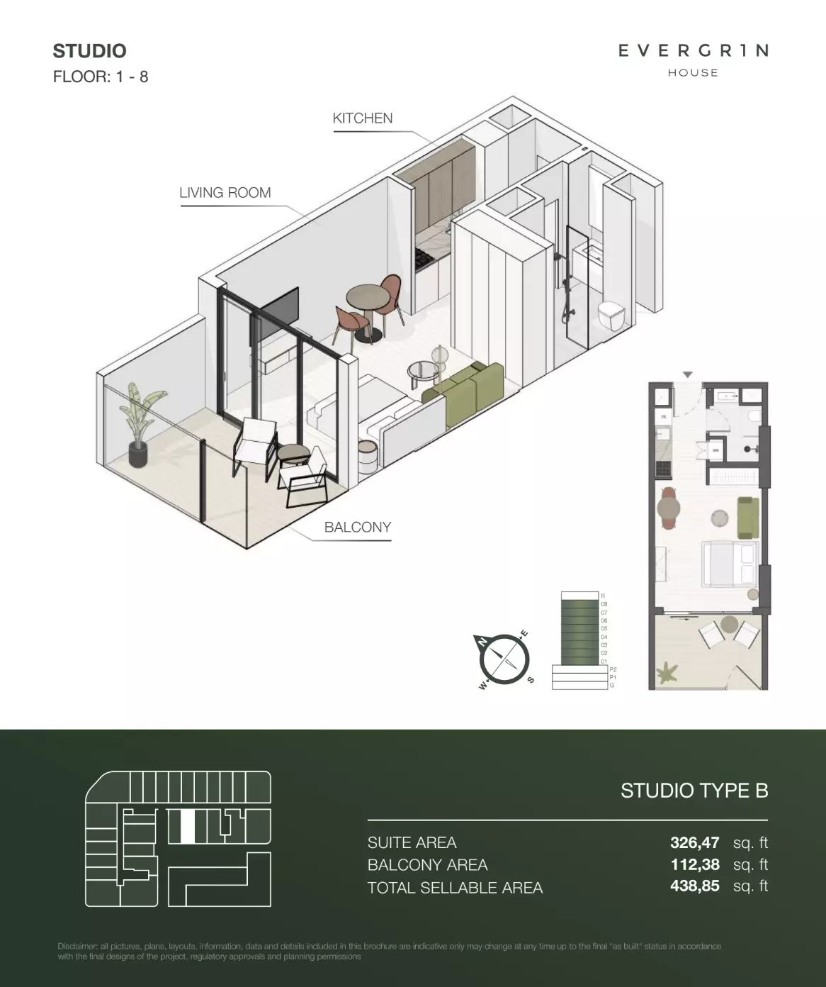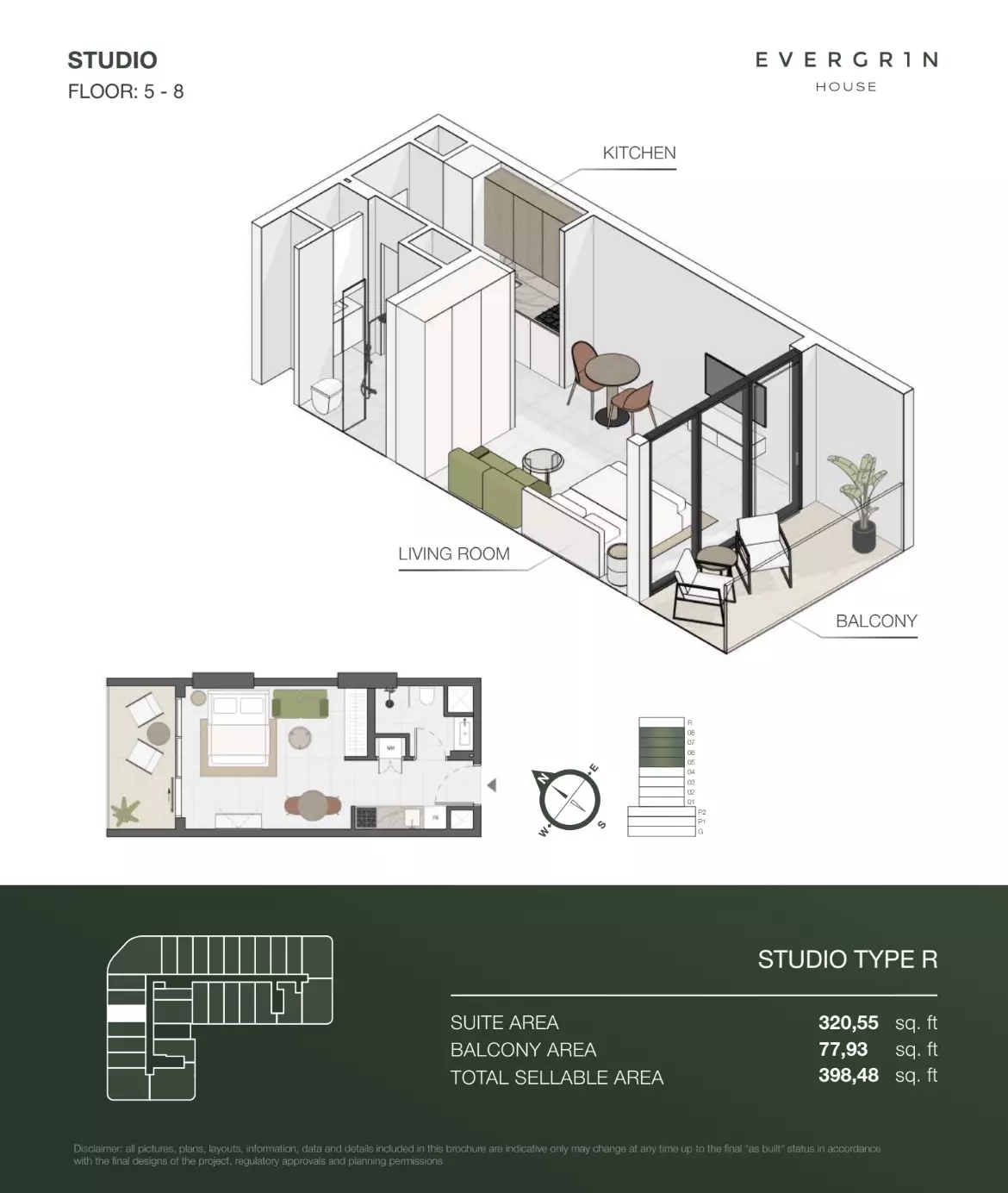 Evergr1n House offers a range of premium apartment options designed to cater to different needs and preferences. Housing options include studios, one-bedroom, and two-bedroom apartments. • Studio apartments are available with sizes ranging from 388 to 564 square feet, starting at 1 million AED. • One-bedroom apartments offer more spacious living, with sizes between 767 and 991 square feet, starting at 1.8 million AED. For larger households, • the two-bedroom apartments provide ample space, with sizes ranging from 1,137 to 1,138 square feet, starting at 2.6 million AED. These thoughtfully designed units combine functionality and style, creating ideal living spaces for modern residents.