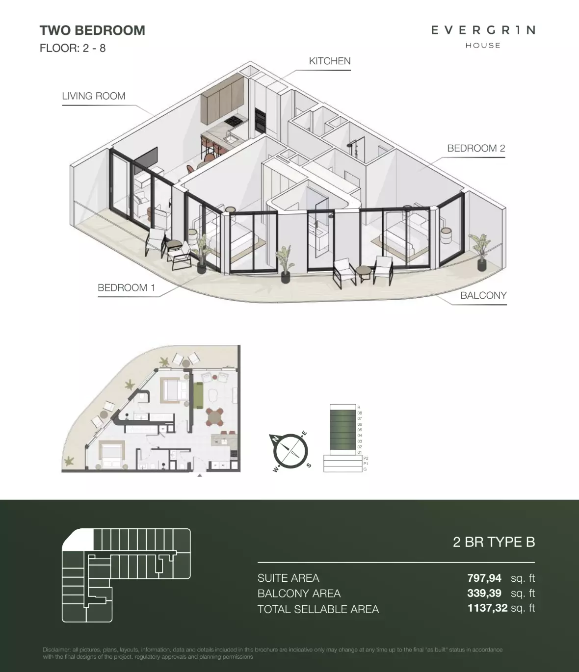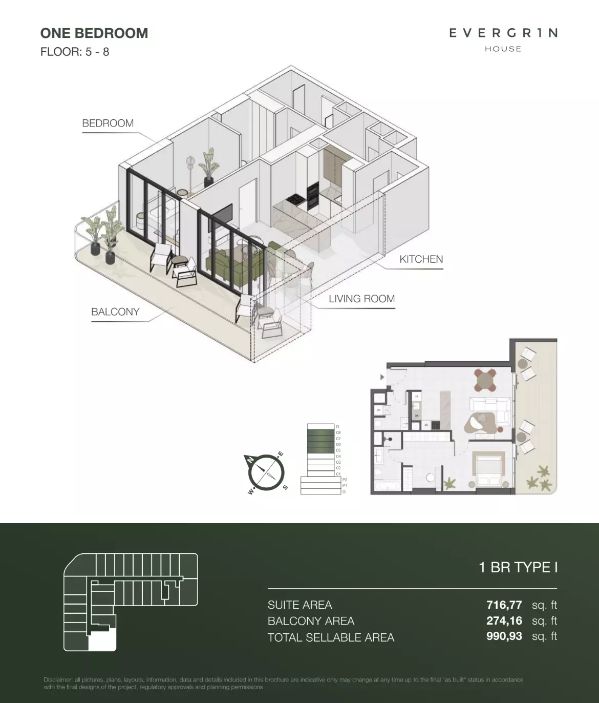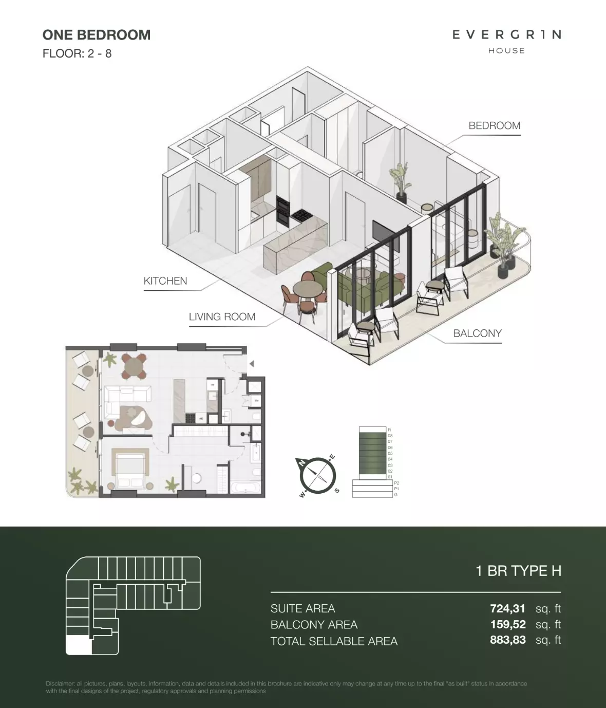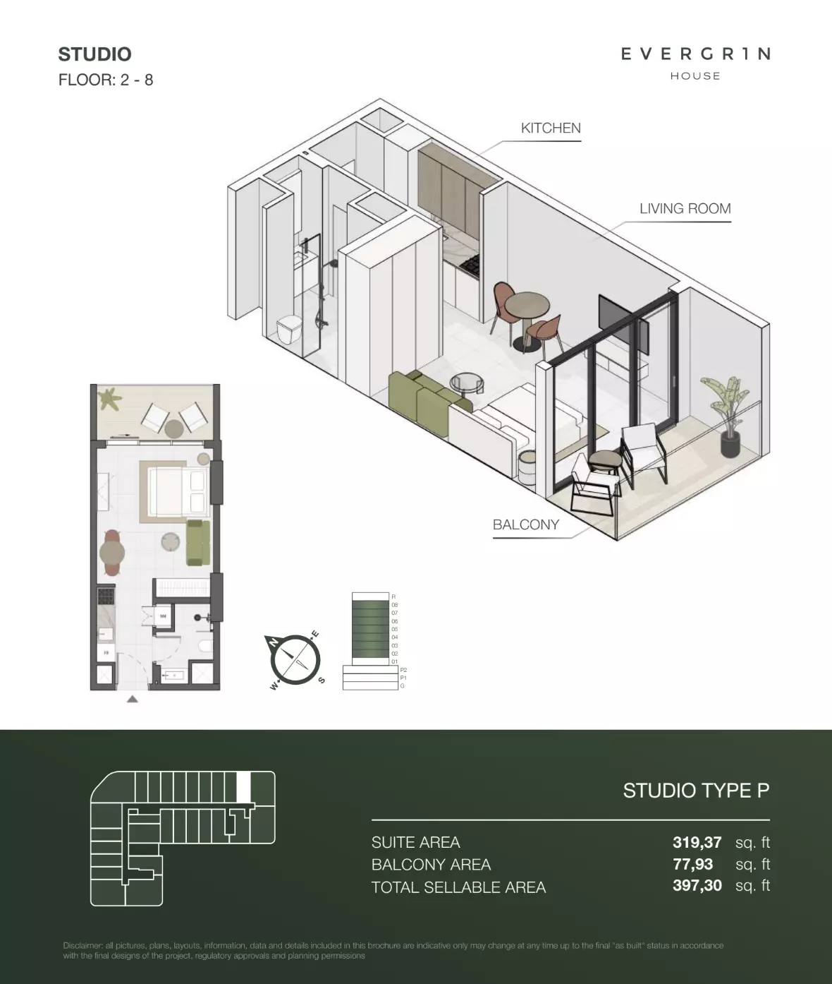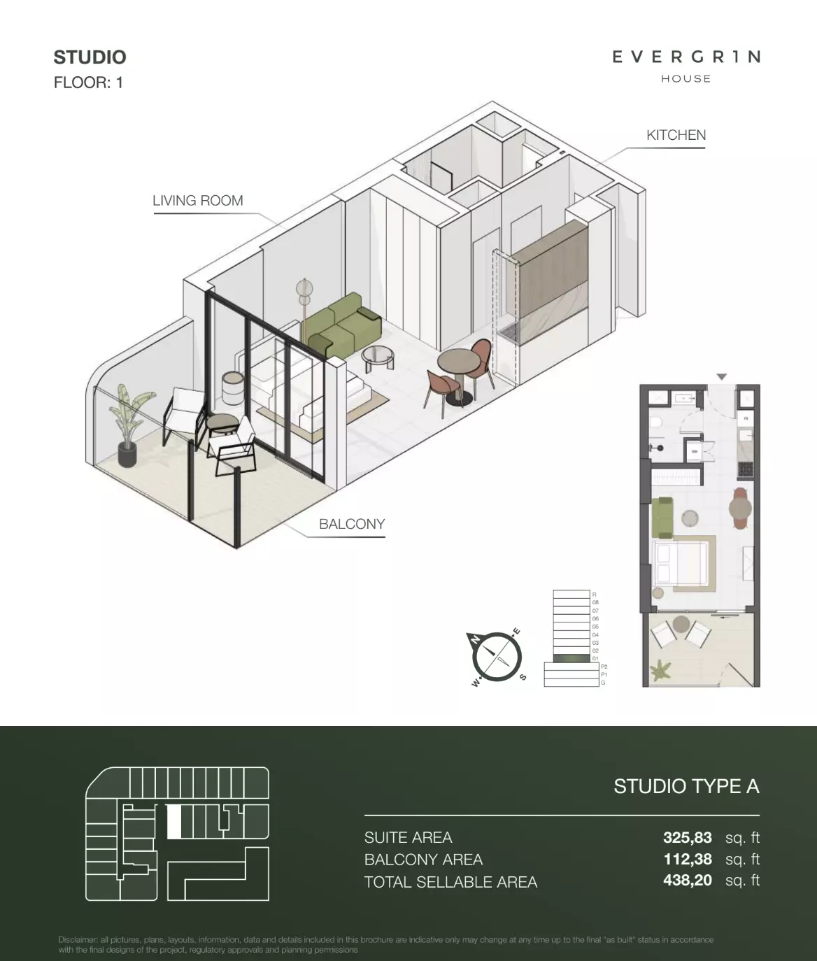 Evergr1n House offers a range of premium apartment options designed to cater to different needs and preferences. Housing options include studios, one-bedroom, and two-bedroom apartments. • Studio apartments are available with sizes ranging from 388 to 564 square feet, starting at 1 million AED. • One-bedroom apartments offer more spacious living, with sizes between 767 and 991 square feet, starting at 1.8 million AED. For larger households, • the two-bedroom apartments provide ample space, with sizes ranging from 1,137 to 1,138 square feet, starting at 2.6 million AED. These thoughtfully designed units combine functionality and style, creating ideal living spaces for modern residents.