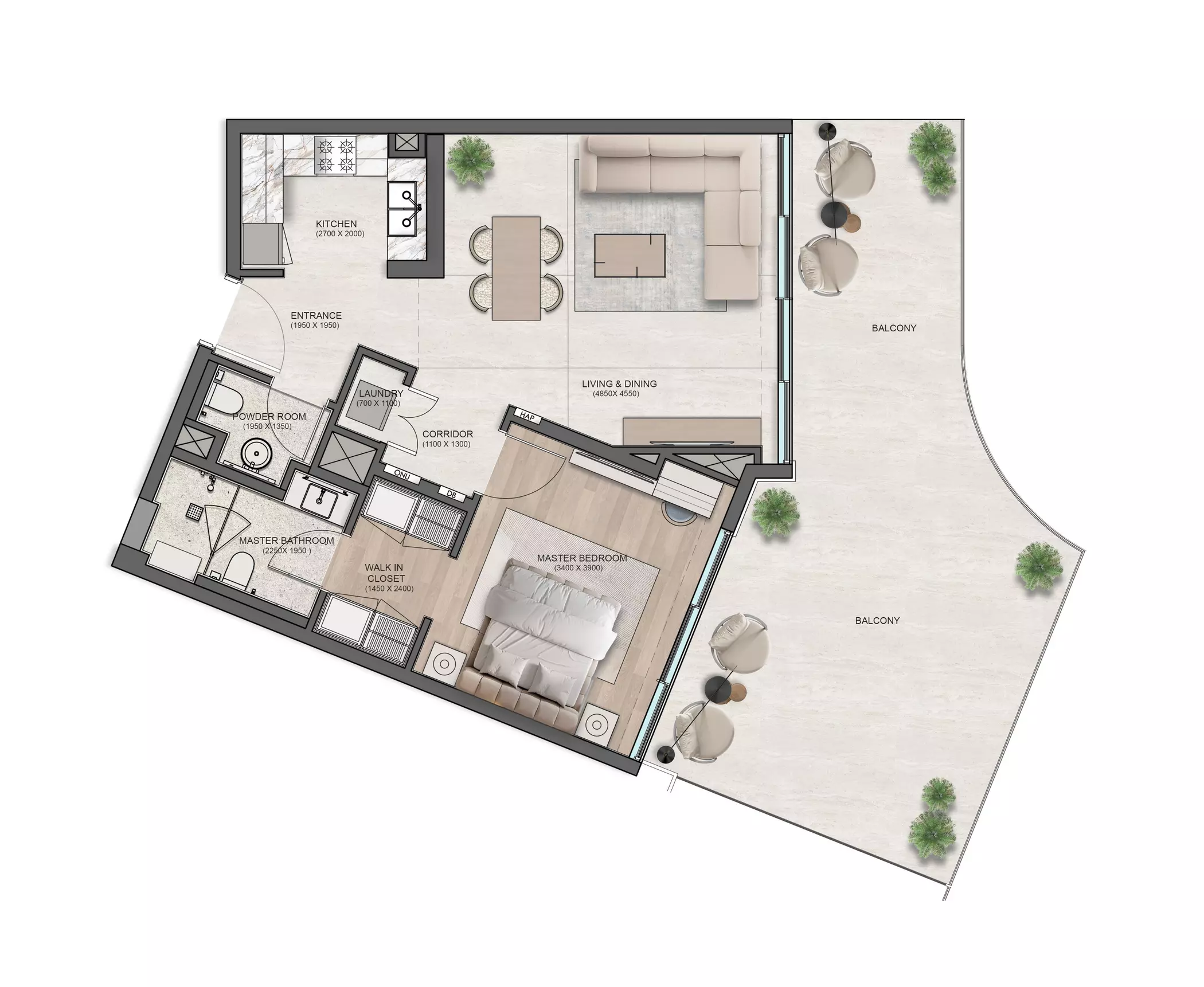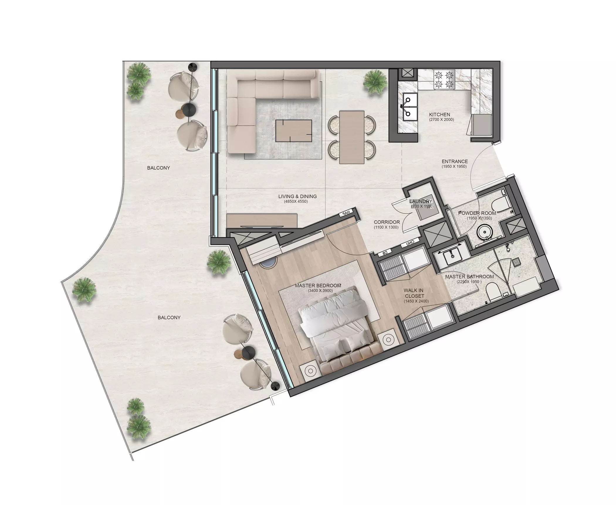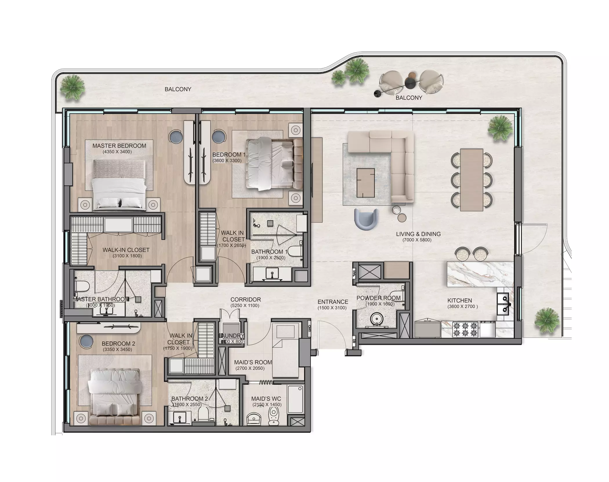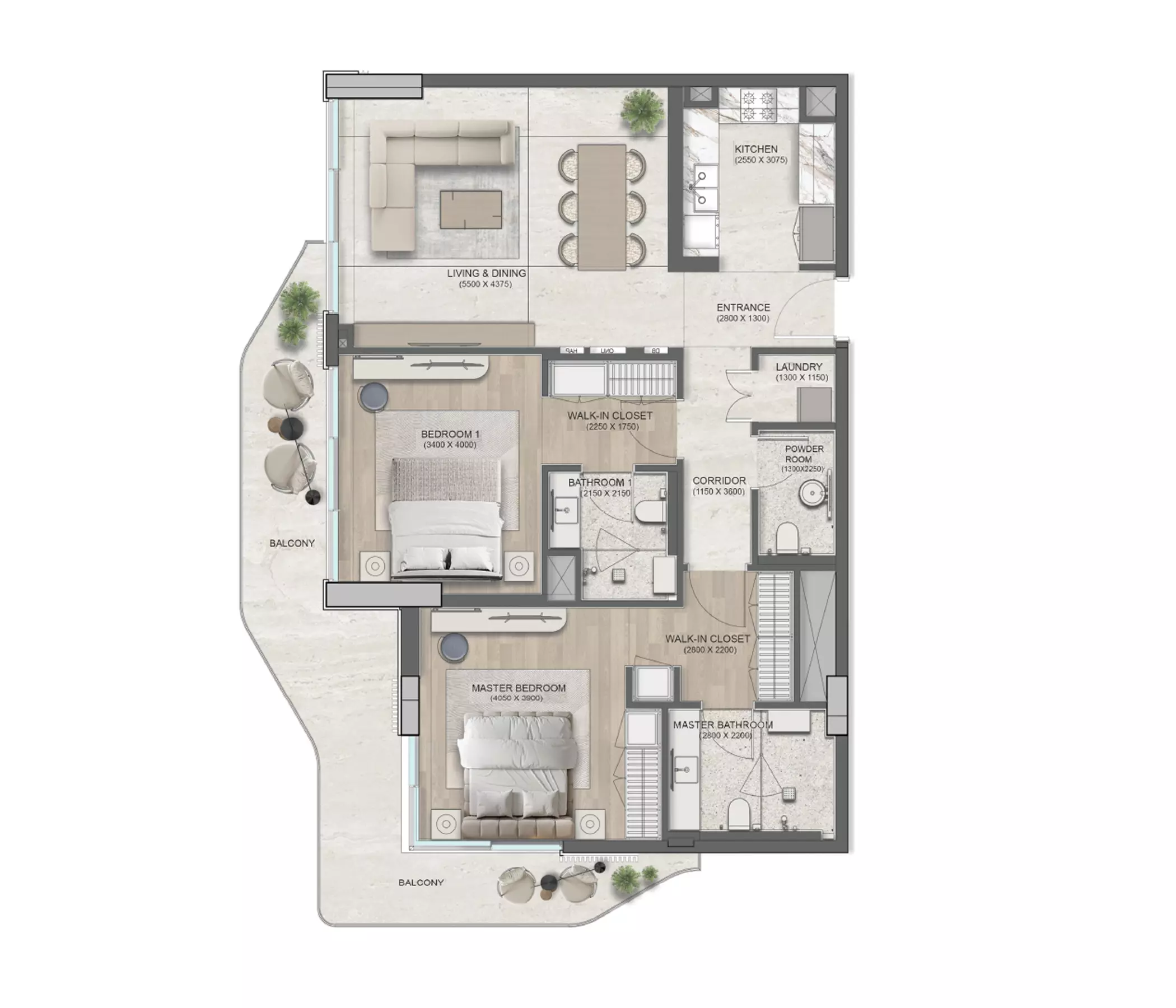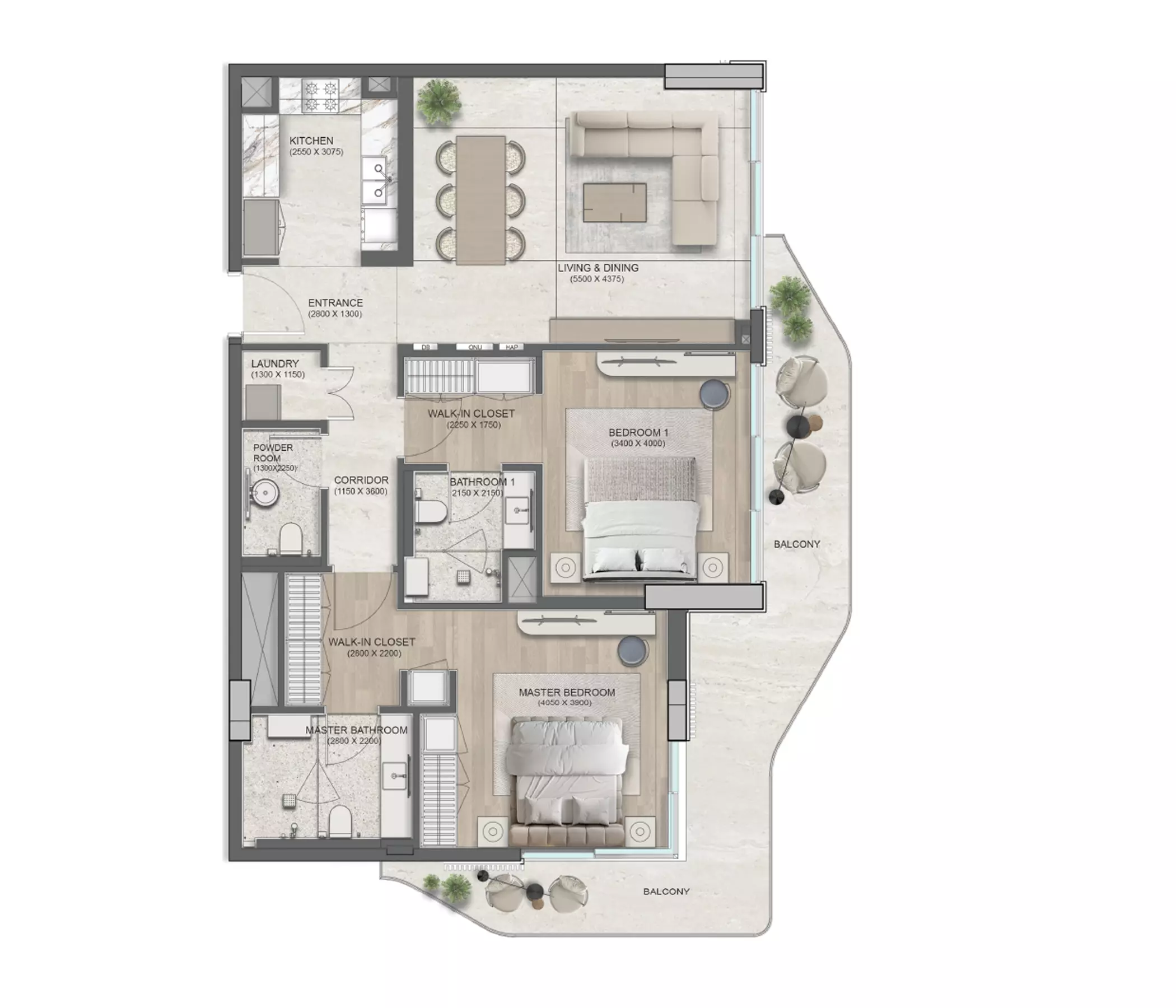 Flora Isle offers luxury apartment options with different sizes and prices: • 1-Bedroom: 813 sqft, starting from 2.1M AED • 2-Bedroom: 1324 sqft, starting from 3.1M AED • 3-Bedroom: 2443 sqft, starting from 6.3M AED These residences are designed to offer modern living in a prestigious location with a seamless blend of sophistication and tranquility.