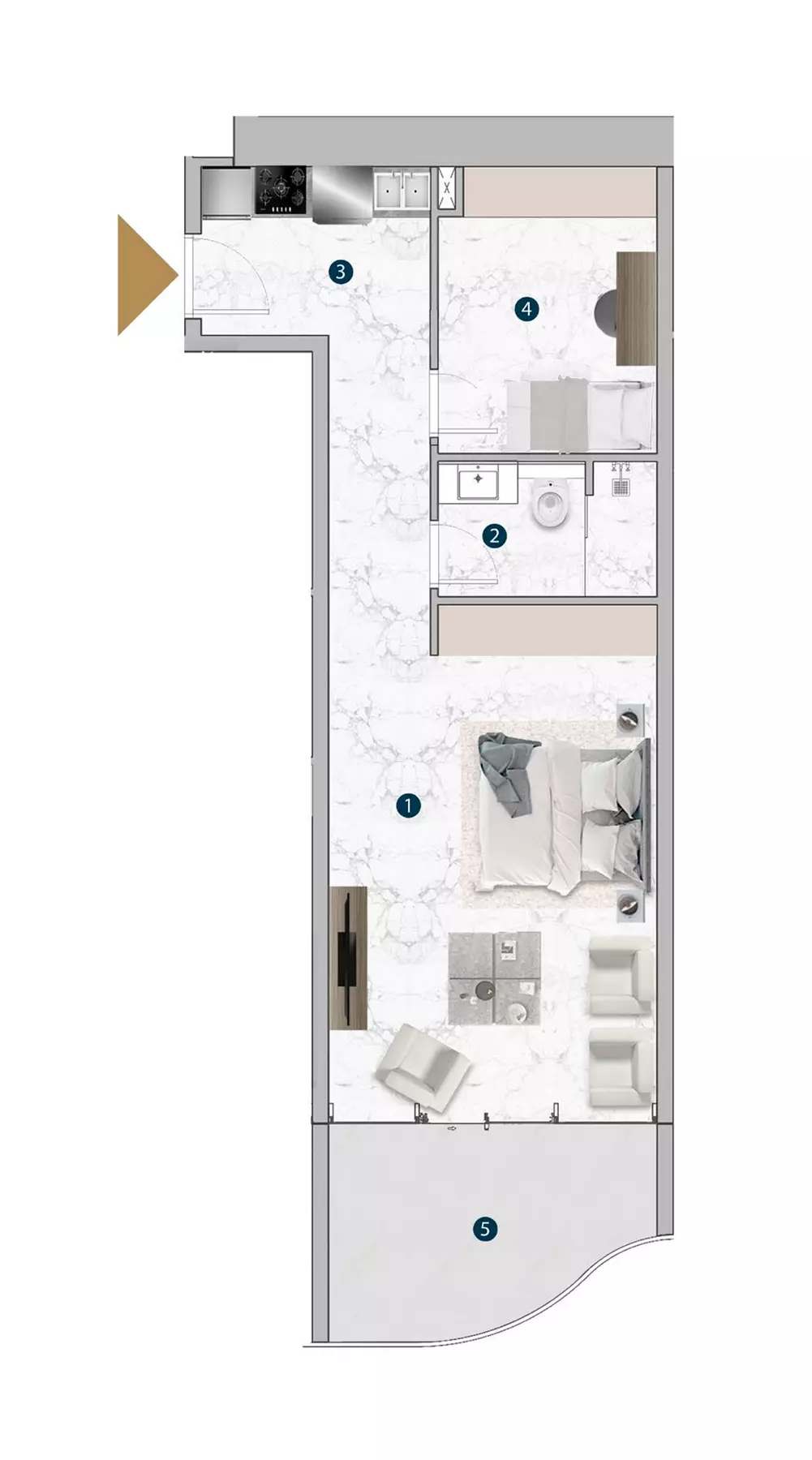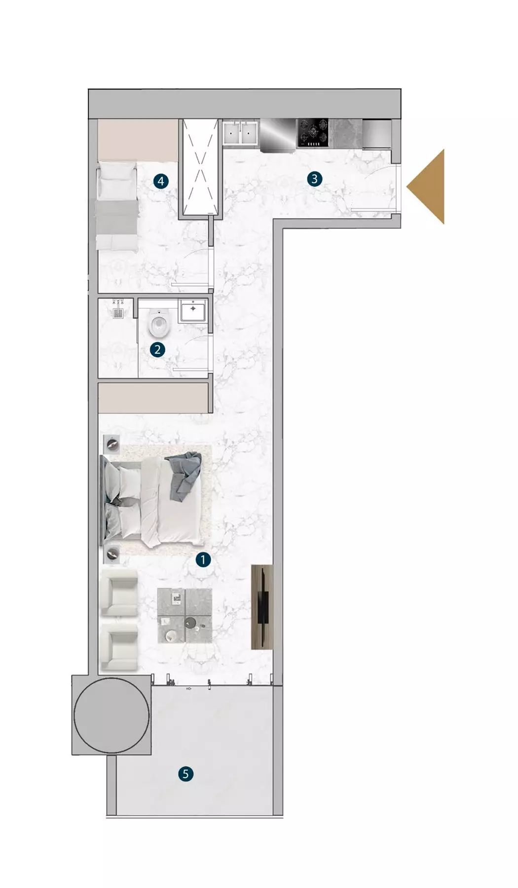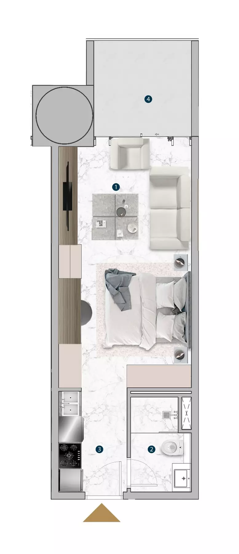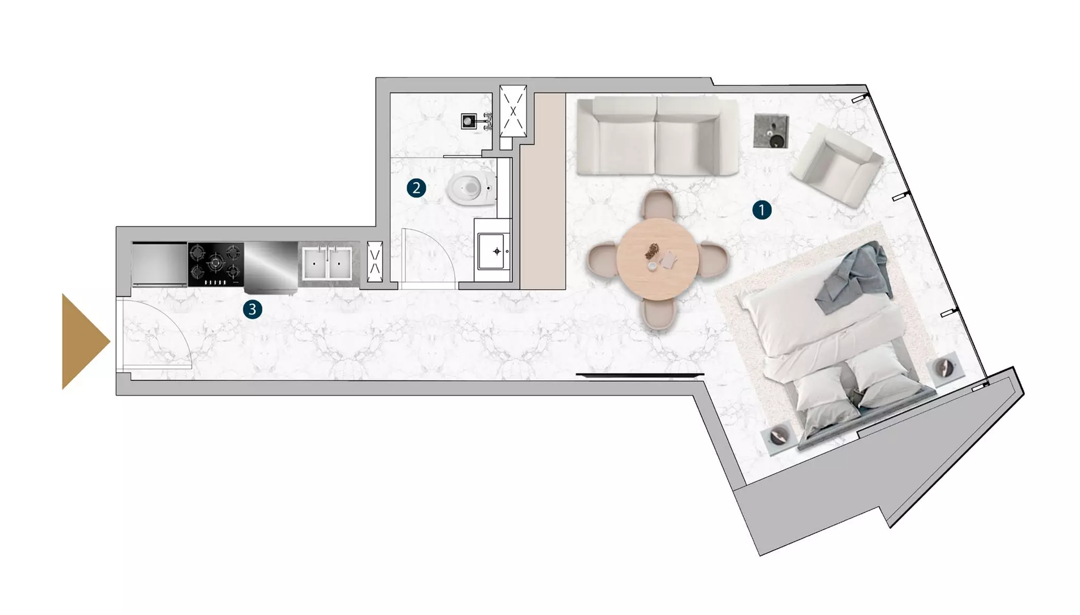 Franck Muller Vanguard offers the following housing options: • Studio: Ranging from 399 to 995 sqft. • 1 Bedroom: Ranging from 758 to 977 sqft. • 2 Bedrooms: 1040 sqft. • 3 Bedrooms: 1802 sqft. These units are designed to offer luxurious living spaces in the heart of Dubai Marina.