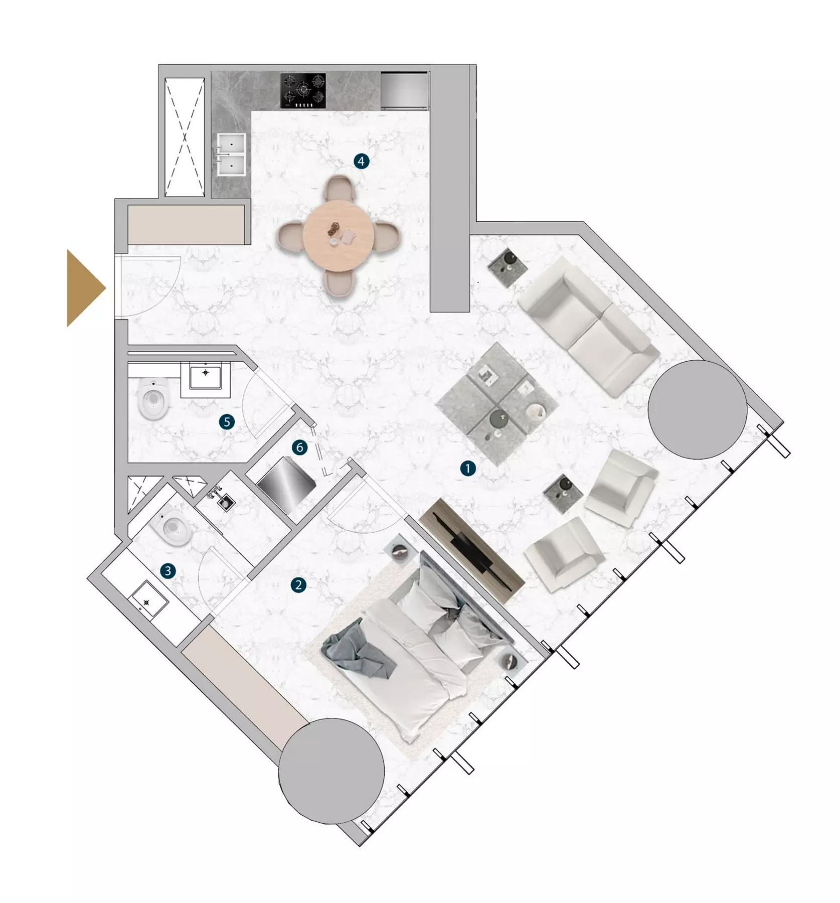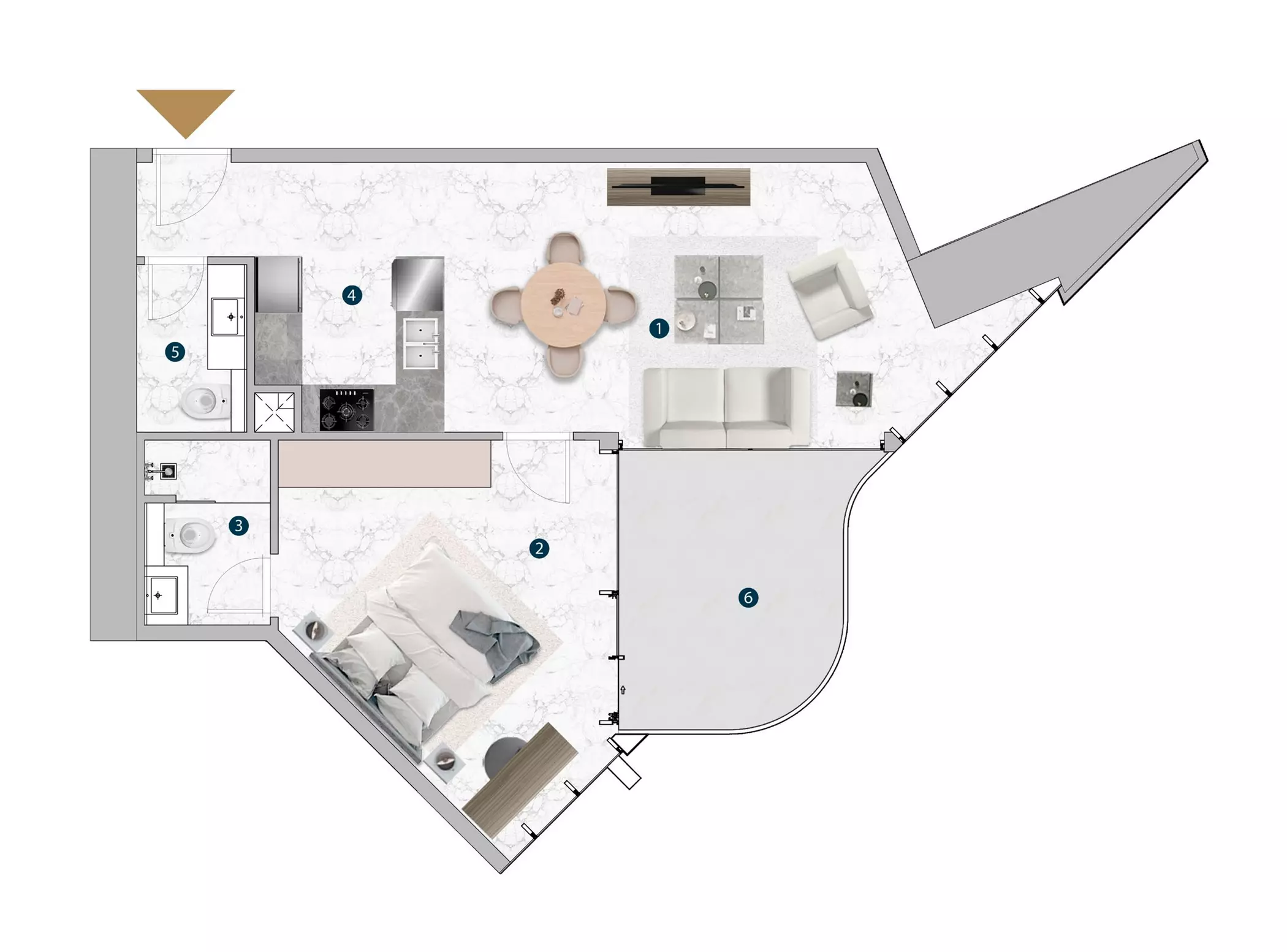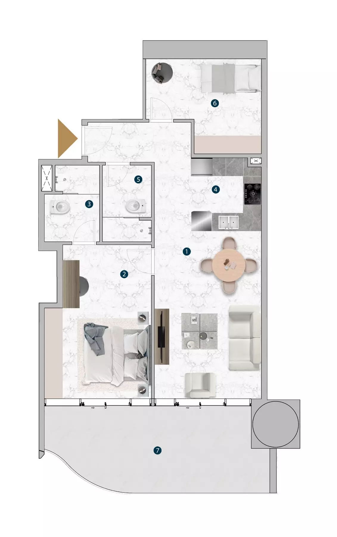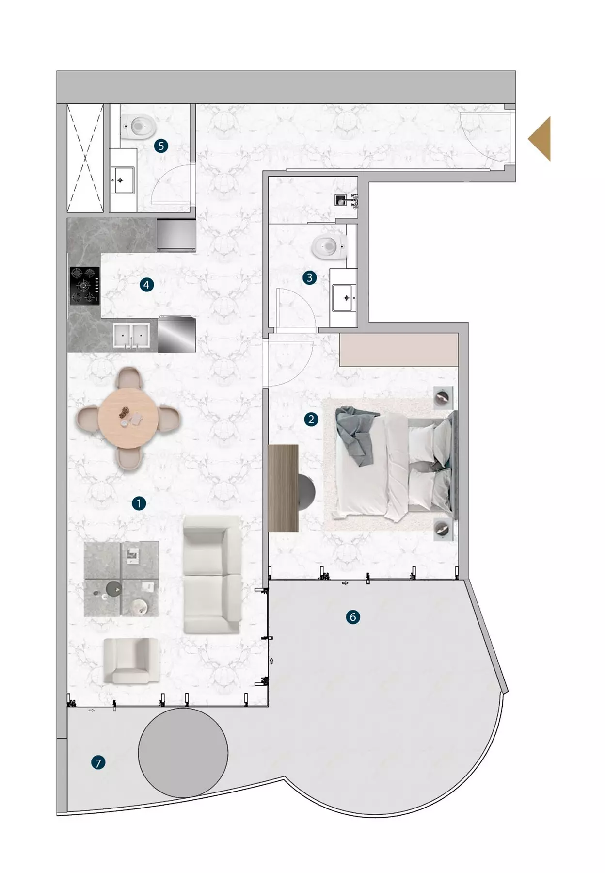 Franck Muller Vanguard offers the following housing options: • Studio: Ranging from 399 to 995 sqft. • 1 Bedroom: Ranging from 758 to 977 sqft. • 2 Bedrooms: 1040 sqft. • 3 Bedrooms: 1802 sqft. These units are designed to offer luxurious living spaces in the heart of Dubai Marina.