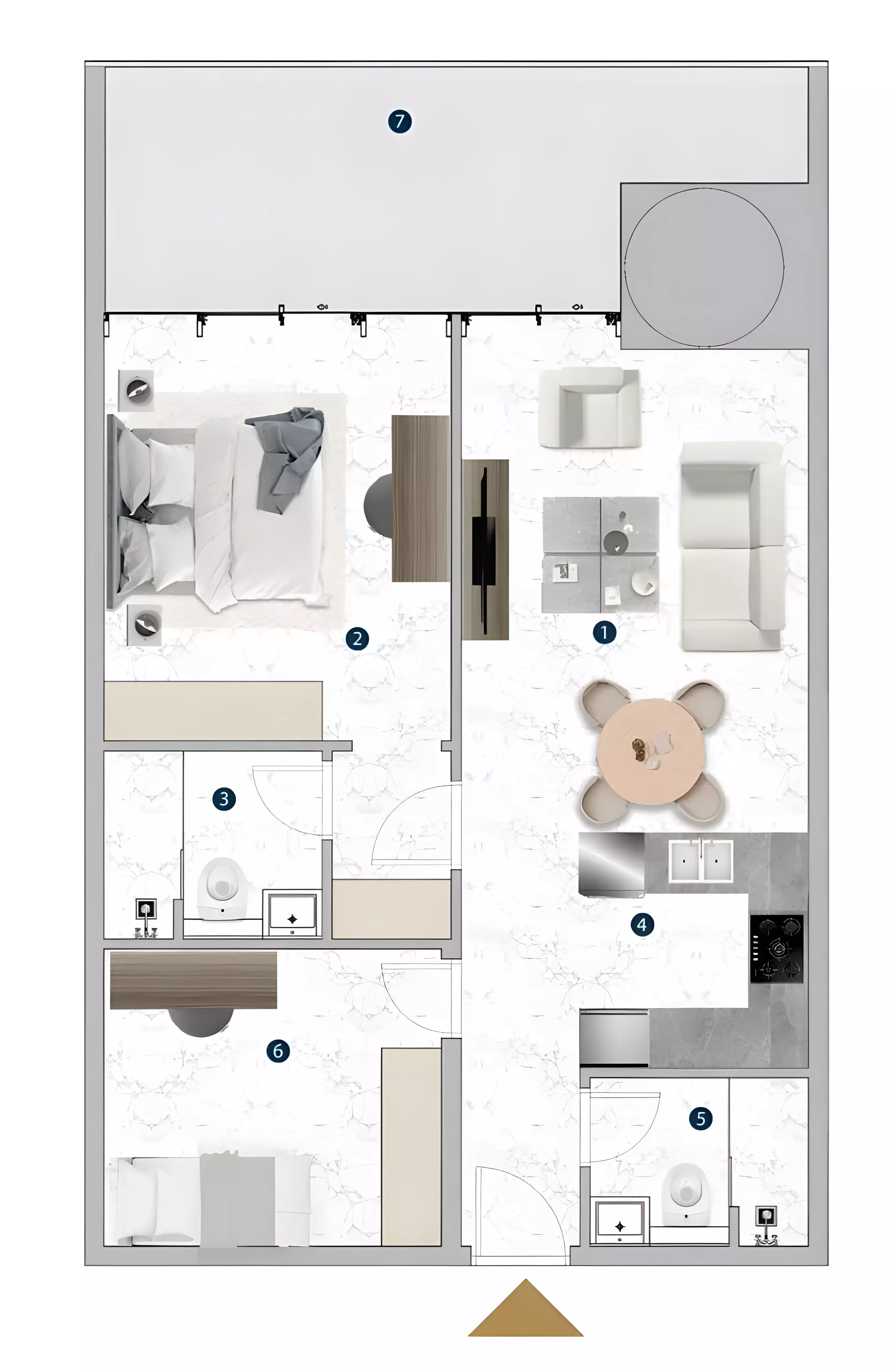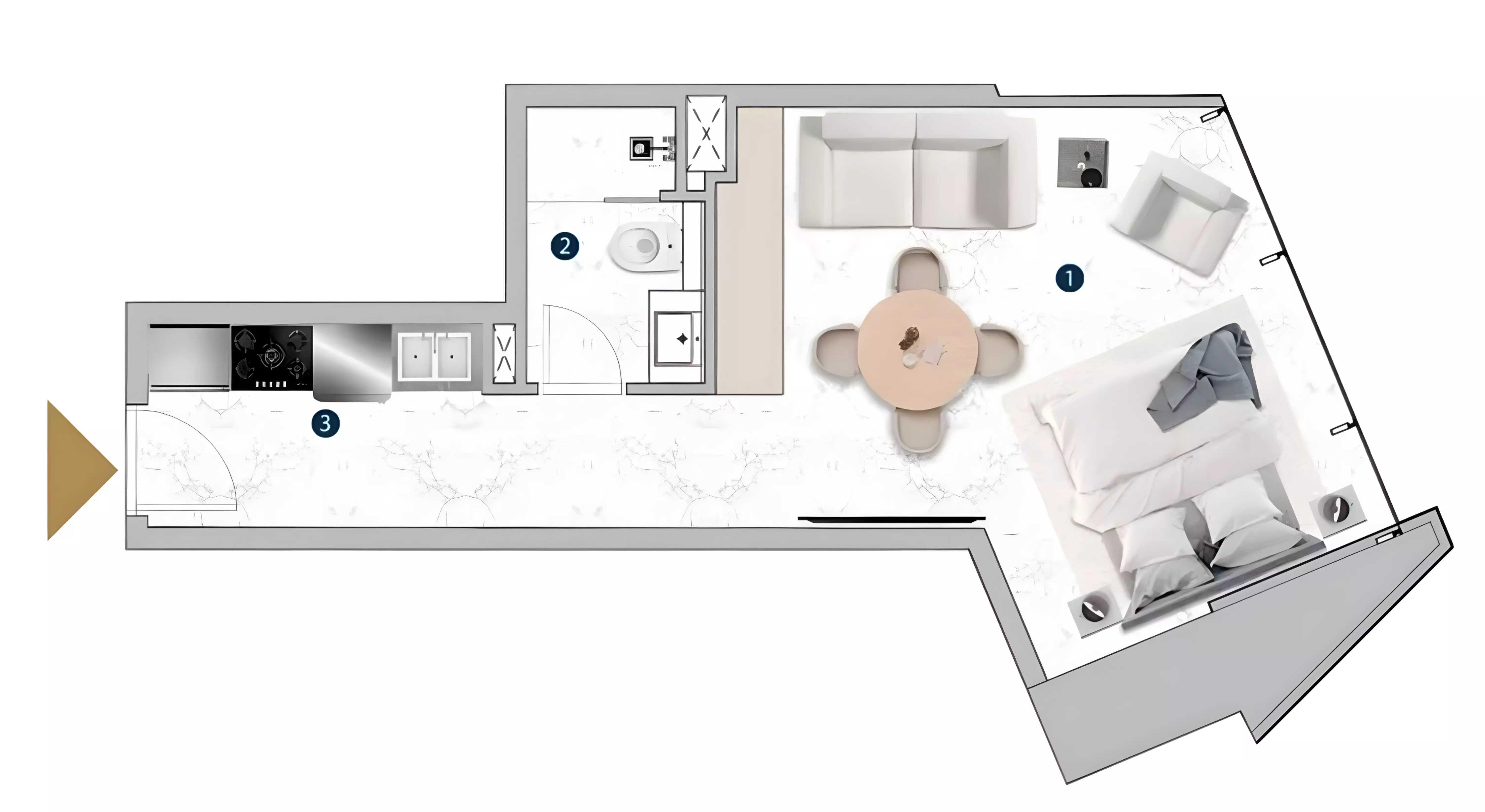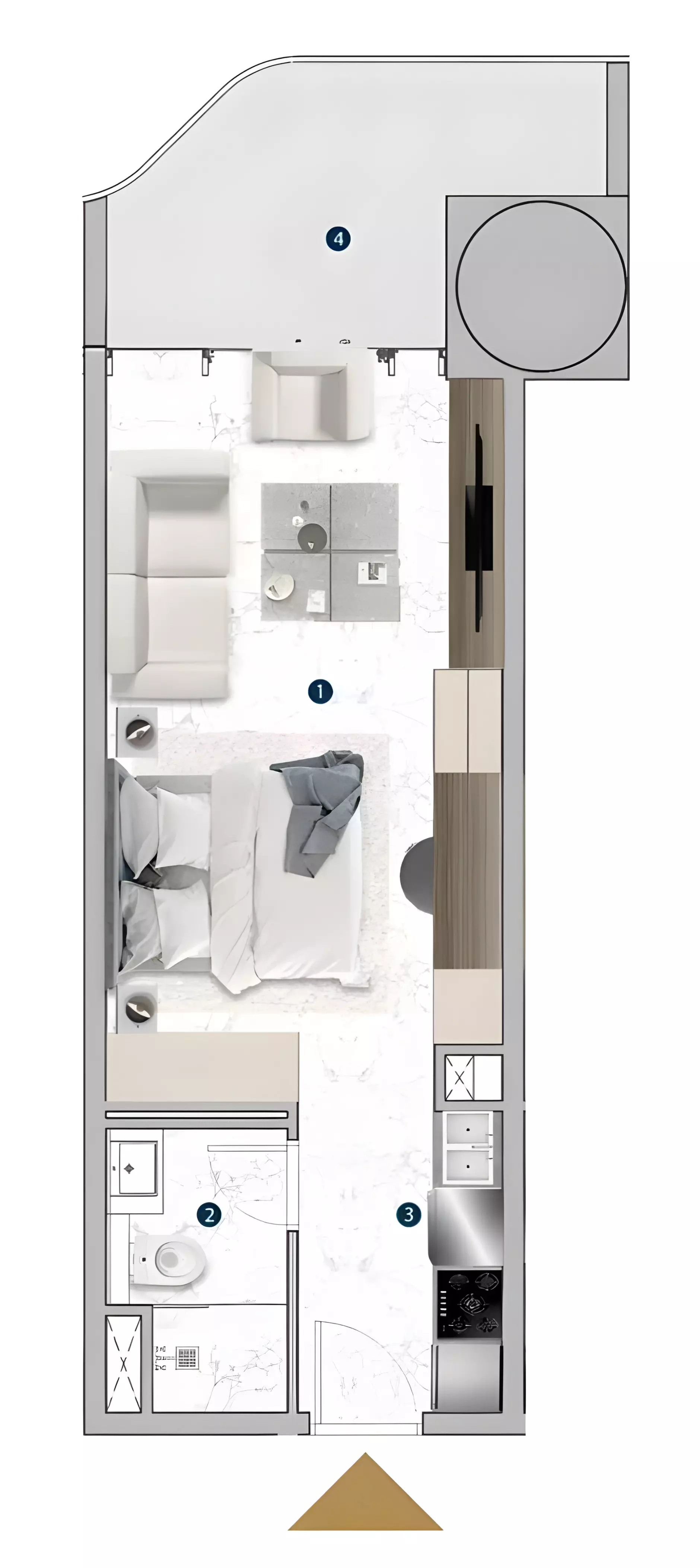 Franck Muller Yachting offers a diverse collection of apartments with layouts ranging from compact studios to expansive three-bedroom units. The studio apartments are priced from 1.2 million AED, with sizes ranging between 379 and 2,712 square feet, providing flexible options for different lifestyle needs. The one-bedroom residences start from 1.9 million AED and range in size from 758 to 1,182 square feet, offering a balance of space and functionality. For those seeking larger homes, the two-bedroom apartments are available from 2.5 million AED, with a fixed size of 950 square feet. The three-bedroom units extend to 1,803 square feet, delivering a spacious option for families.