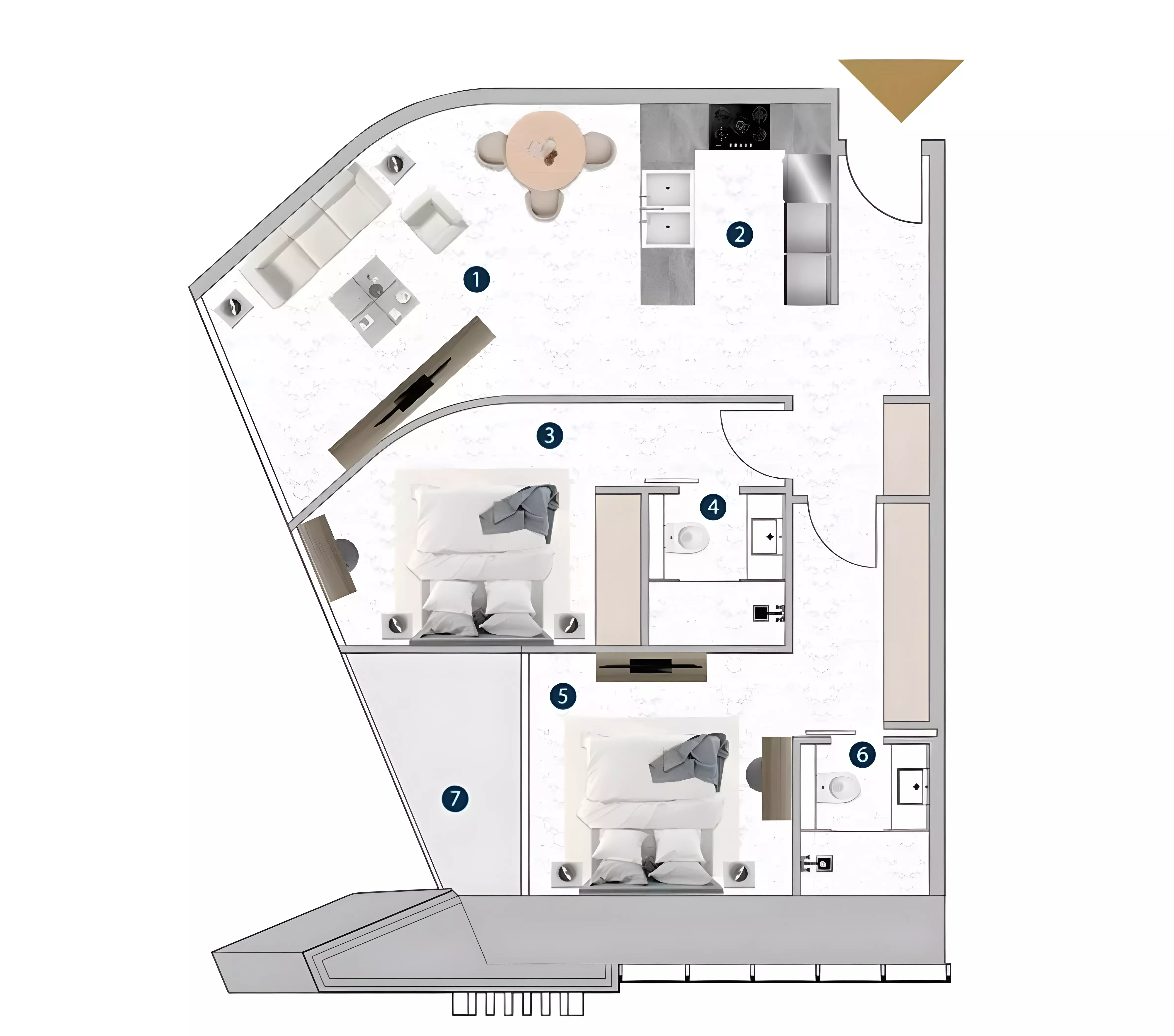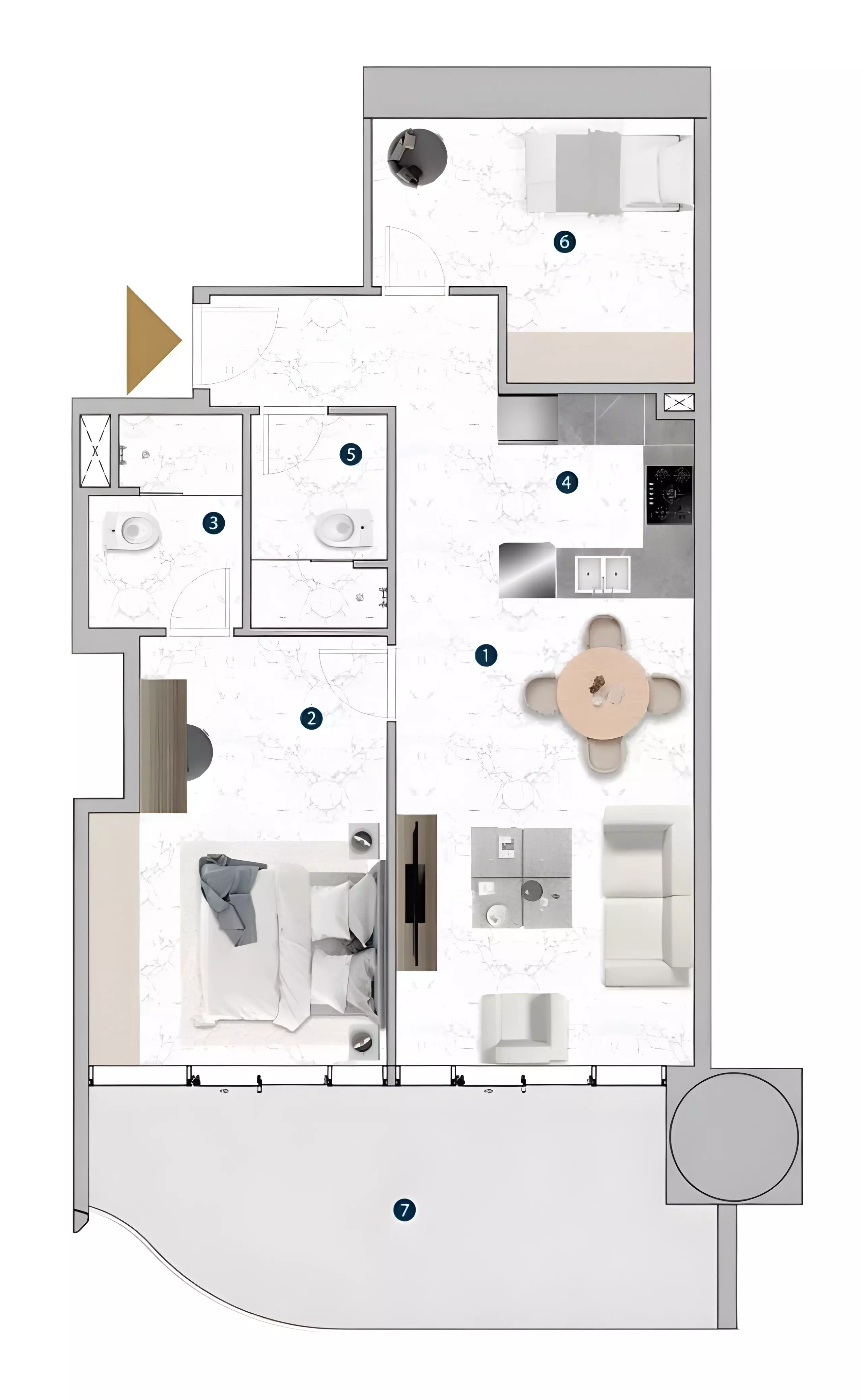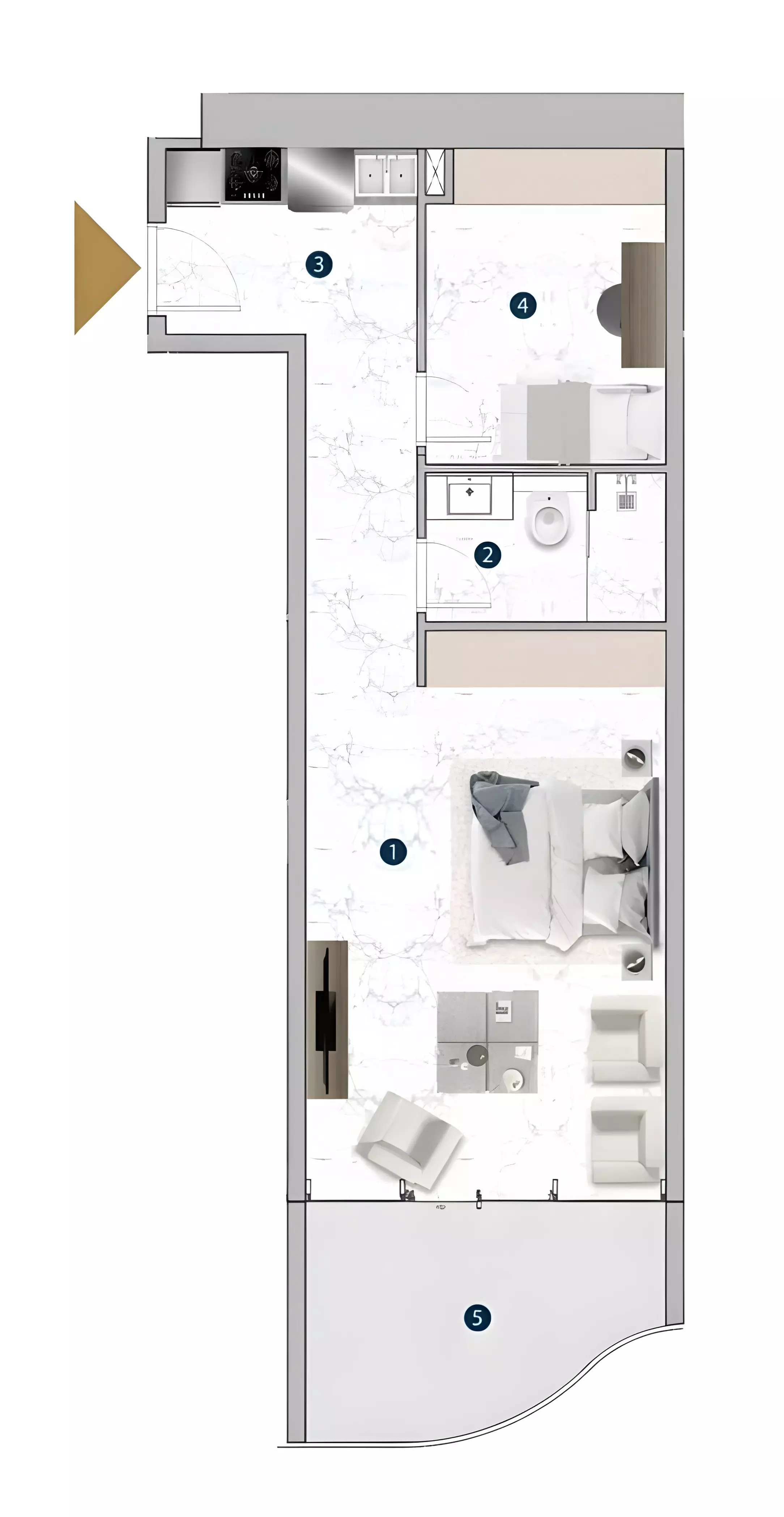 Franck Muller Yachting offers a diverse collection of apartments with layouts ranging from compact studios to expansive three-bedroom units. The studio apartments are priced from 1.2 million AED, with sizes ranging between 379 and 2,712 square feet, providing flexible options for different lifestyle needs. The one-bedroom residences start from 1.9 million AED and range in size from 758 to 1,182 square feet, offering a balance of space and functionality. For those seeking larger homes, the two-bedroom apartments are available from 2.5 million AED, with a fixed size of 950 square feet. The three-bedroom units extend to 1,803 square feet, delivering a spacious option for families.