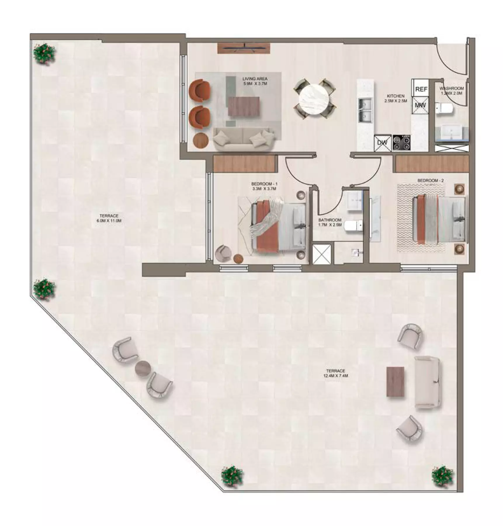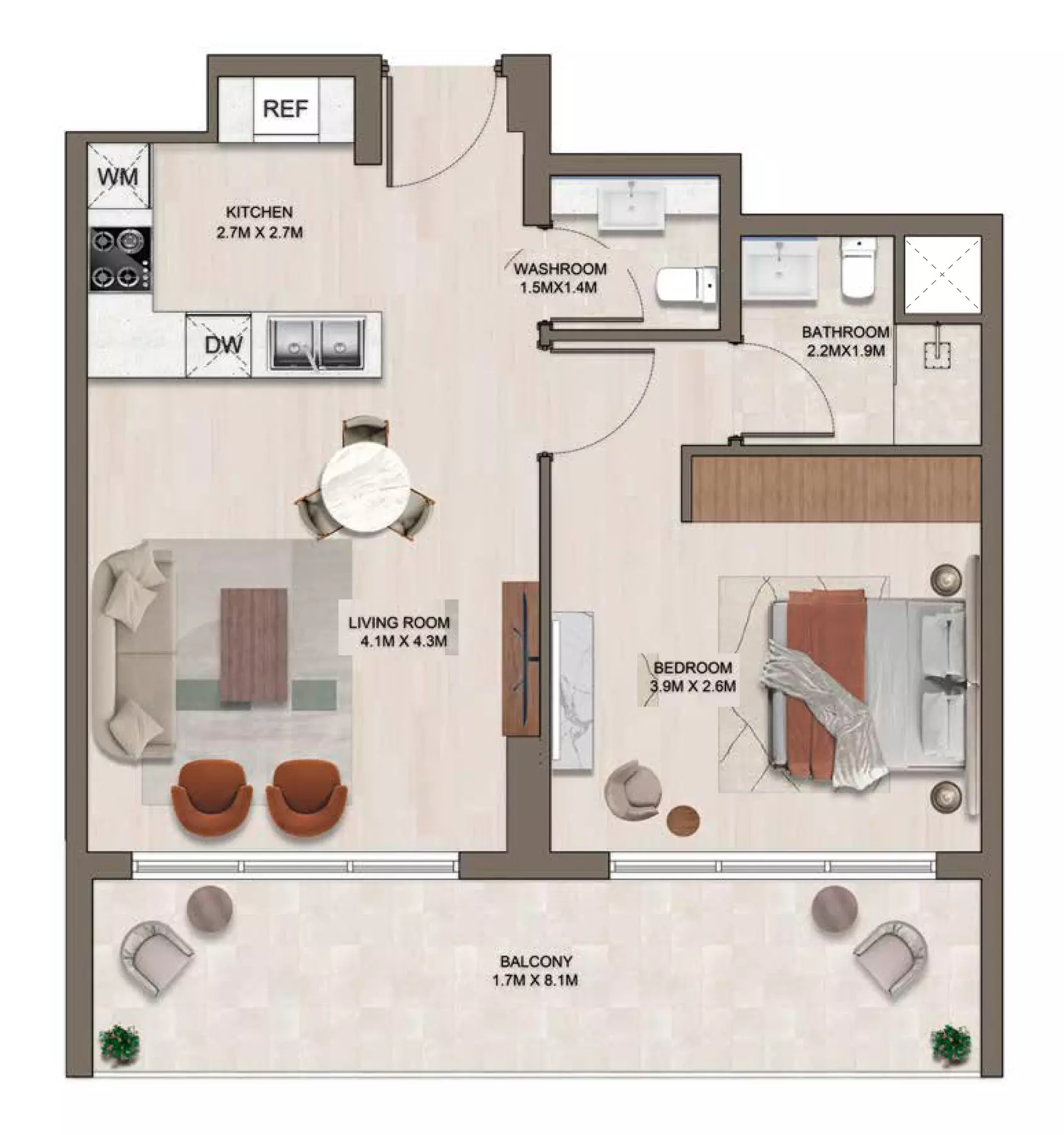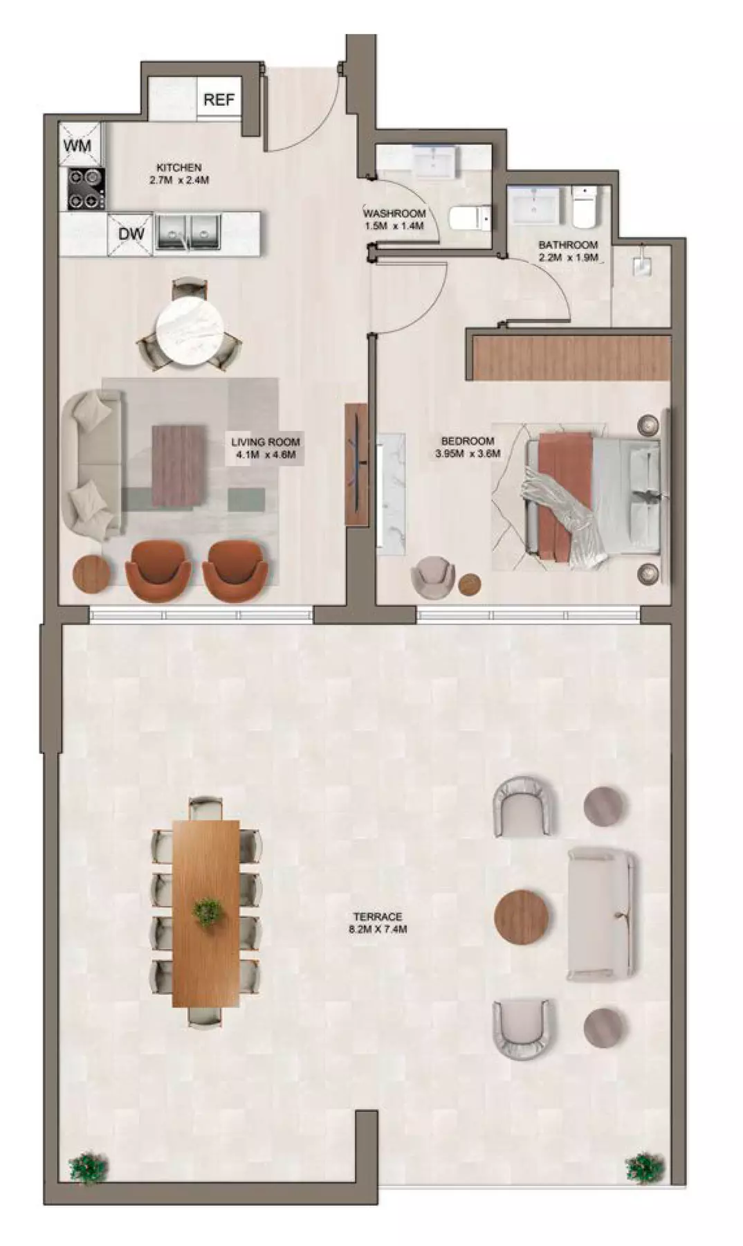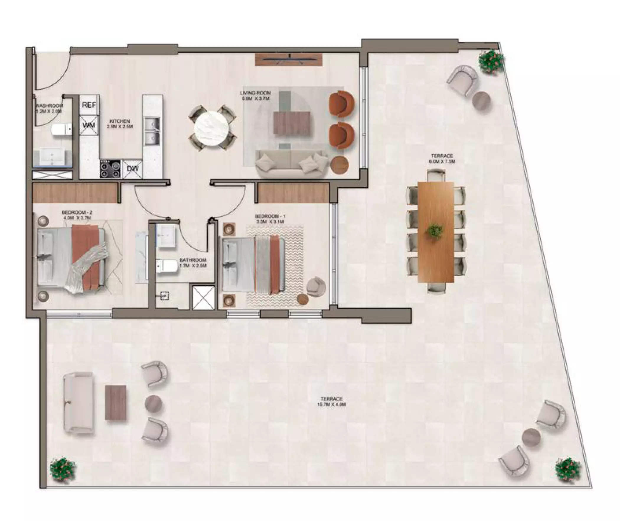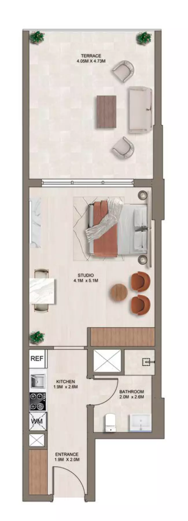 Ghaff Land Residence offers a range of housing options, primarily apartments and duplex units: Studio apartments starting from 590K AED, with sizes ranging from 604 sqft. 1 Bedroom apartments from 890K AED, with sizes between 1114 - 1361 sqft. 2 Bedroom apartments starting from 1.1M AED, with sizes ranging from 1677 - 2264 sqft. 2 Bedroom duplexes from 2.1M AED, with a size of 2012 sqft. These options cater to different needs, whether you're looking for a compact living space or a more spacious duplex home.