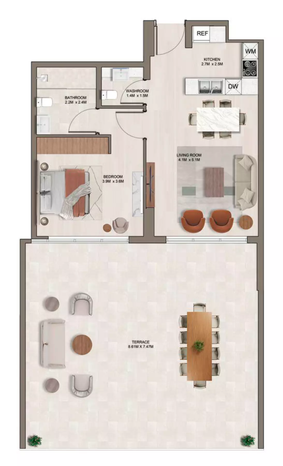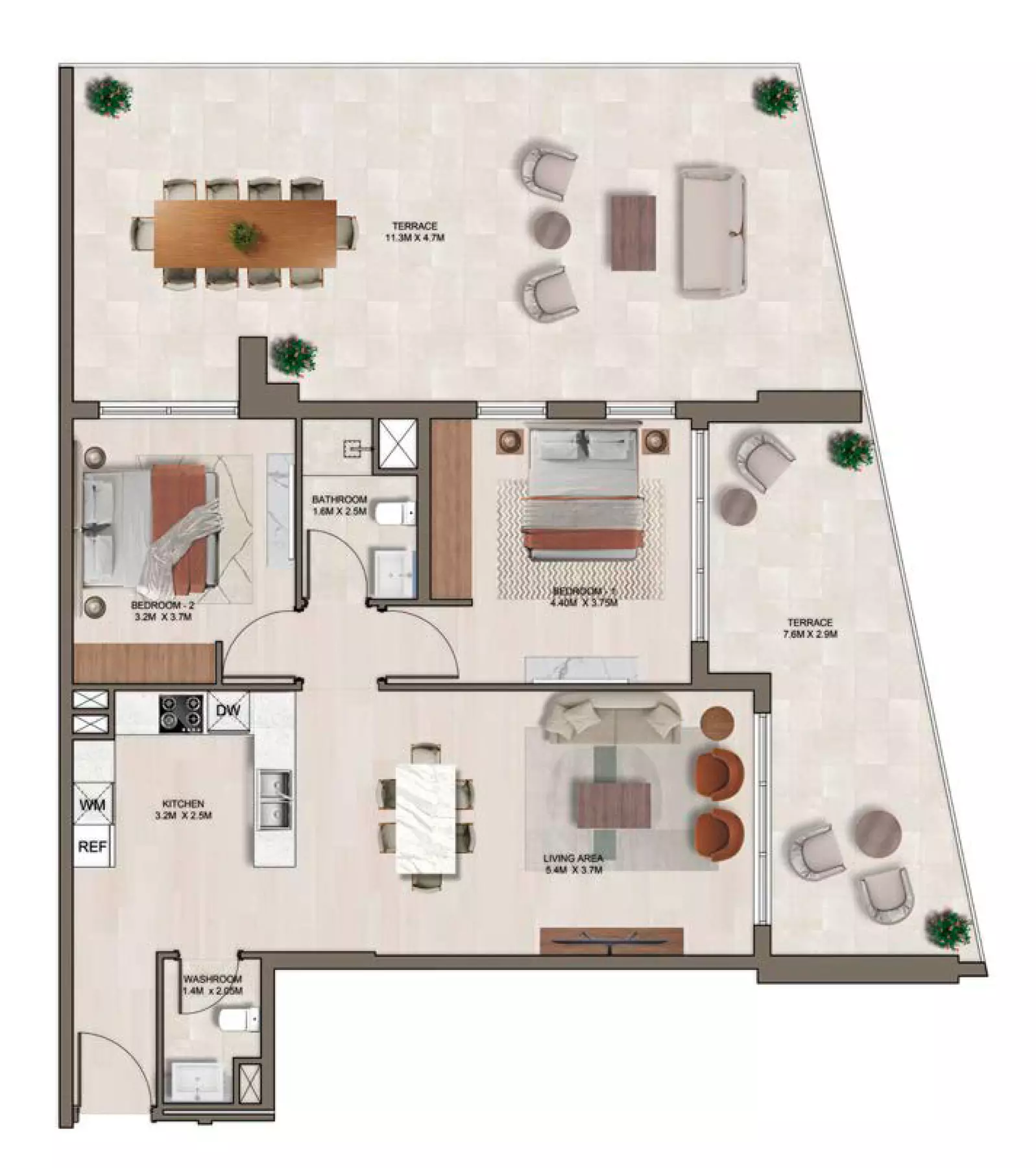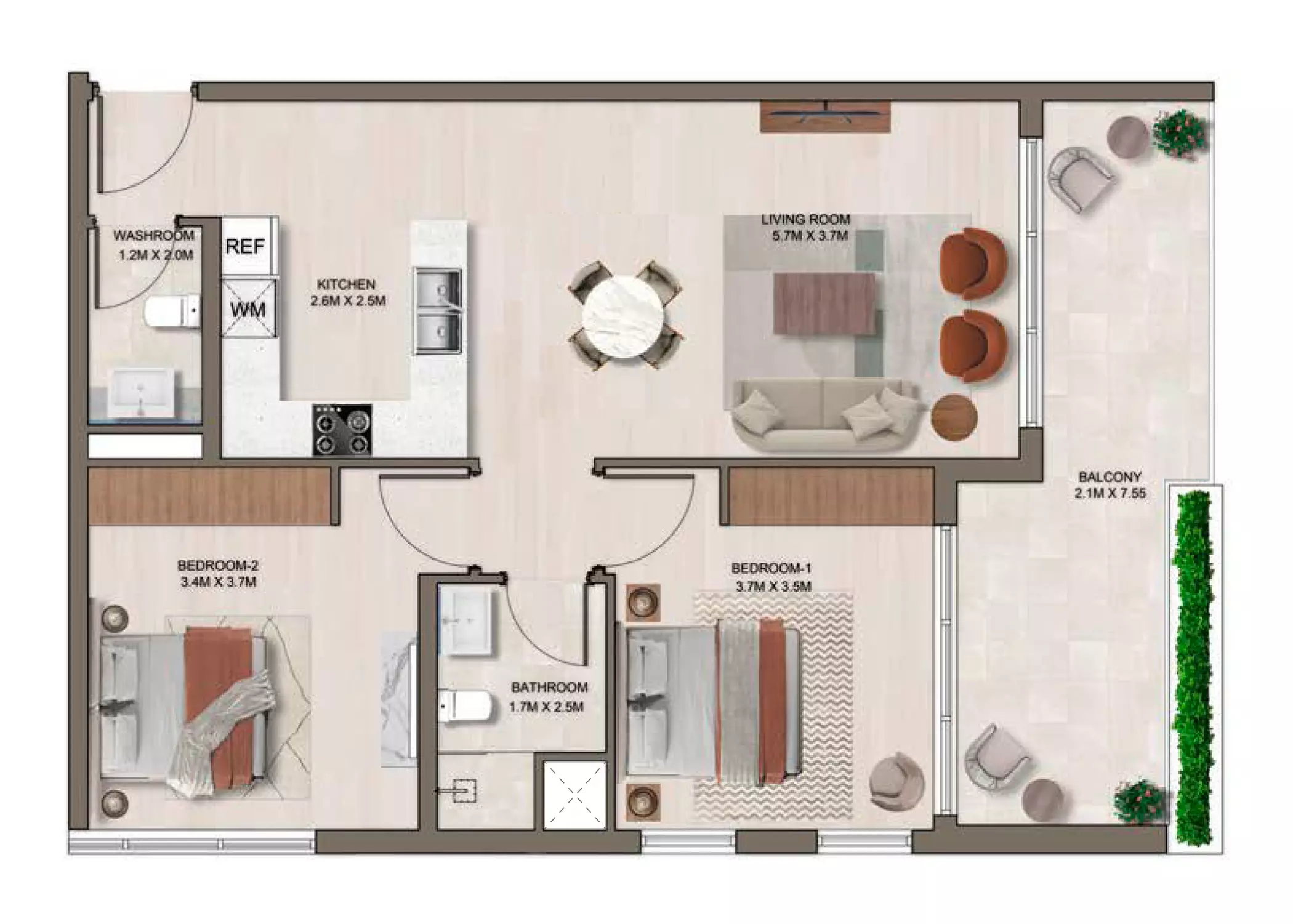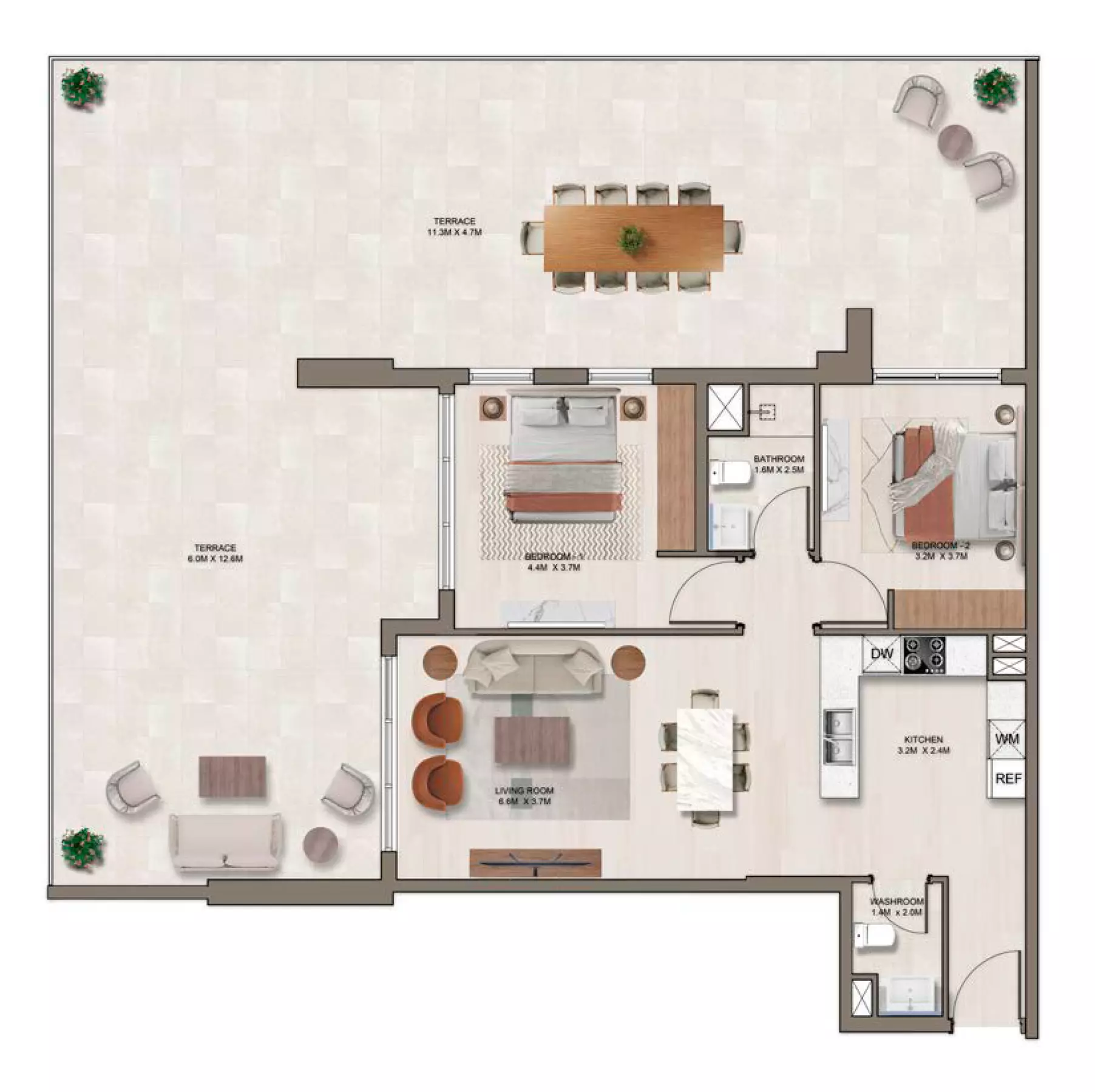 Ghaff Land Residence offers a range of housing options, primarily apartments and duplex units: Studio apartments starting from 590K AED, with sizes ranging from 604 sqft. 1 Bedroom apartments from 890K AED, with sizes between 1114 - 1361 sqft. 2 Bedroom apartments starting from 1.1M AED, with sizes ranging from 1677 - 2264 sqft. 2 Bedroom duplexes from 2.1M AED, with a size of 2012 sqft. These options cater to different needs, whether you're looking for a compact living space or a more spacious duplex home.