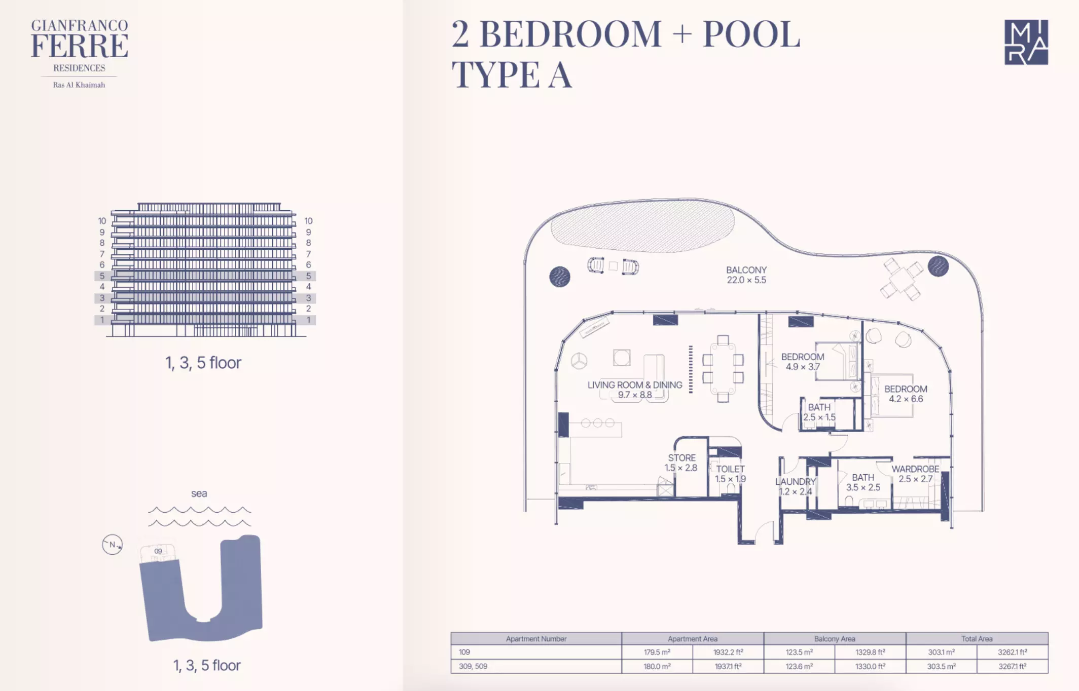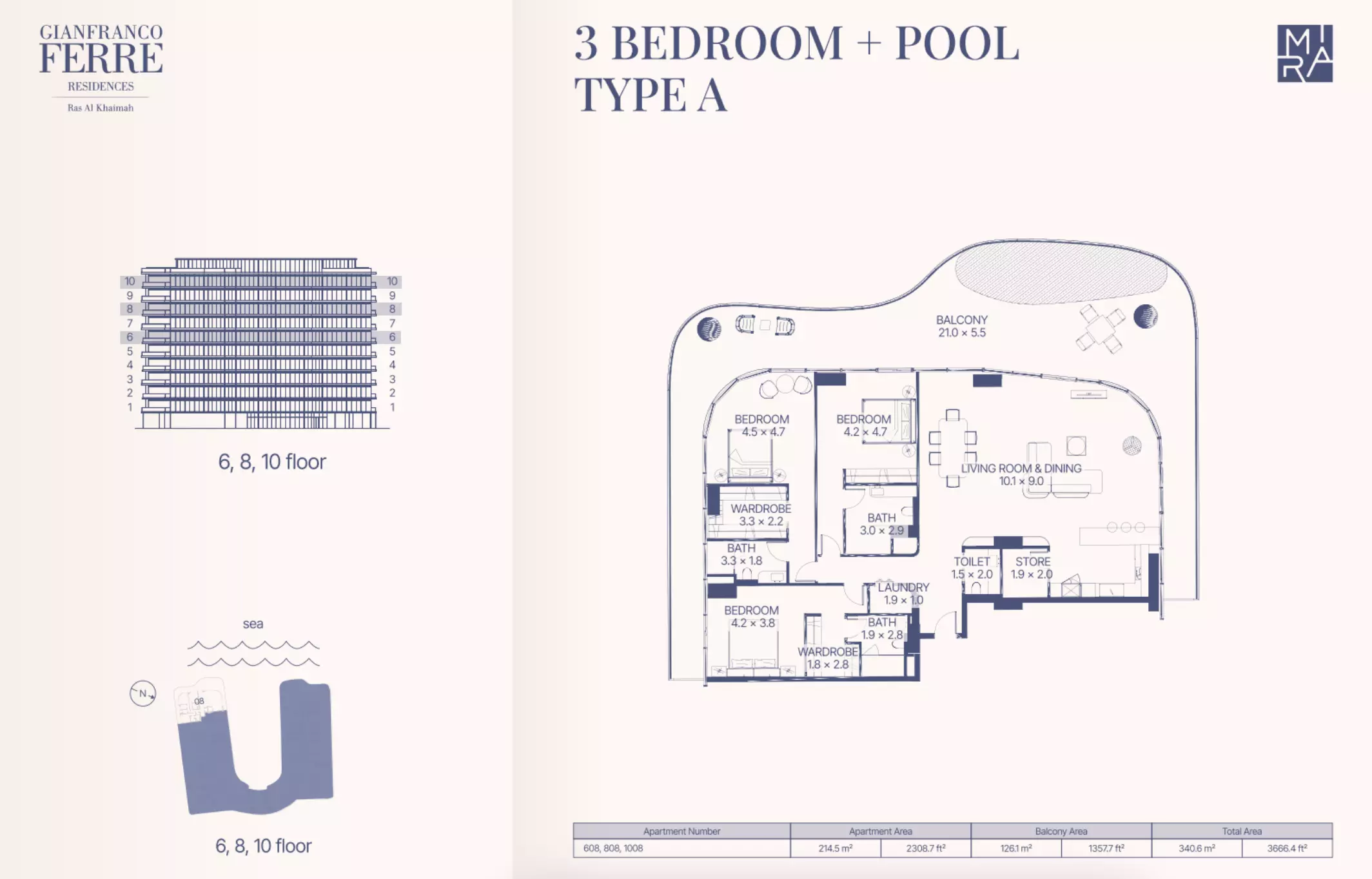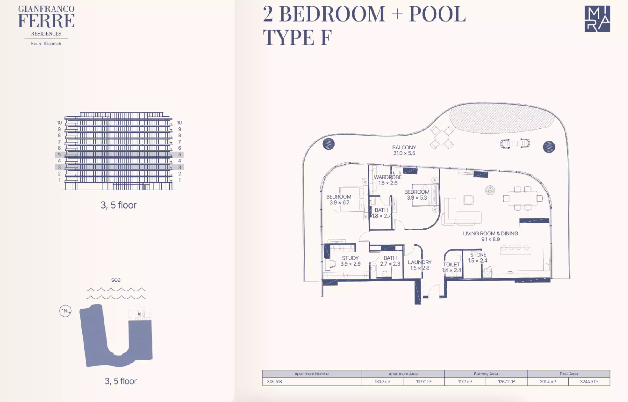 Gianfranco Ferré Residences is located on Al Marjan Island, Ras Al Khaimah, offering direct beach access and proximity to top resorts and entertainment spots.