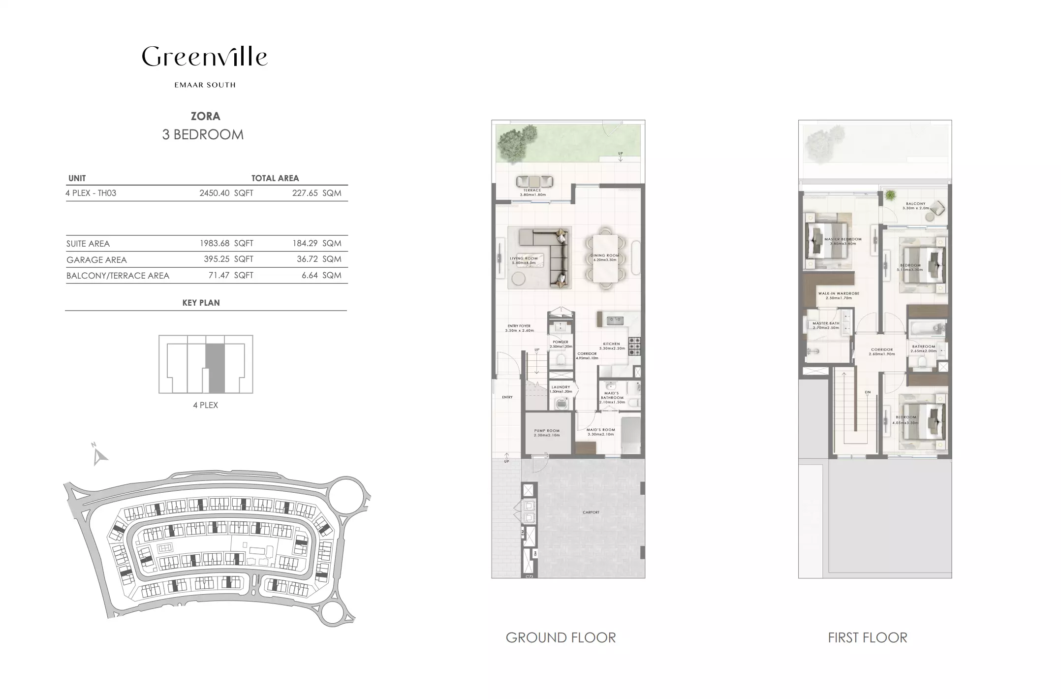 Greenville is located in Dubai, Dubai South (Dubai World Central), within the EMAAR South development, offering modern residential living.
