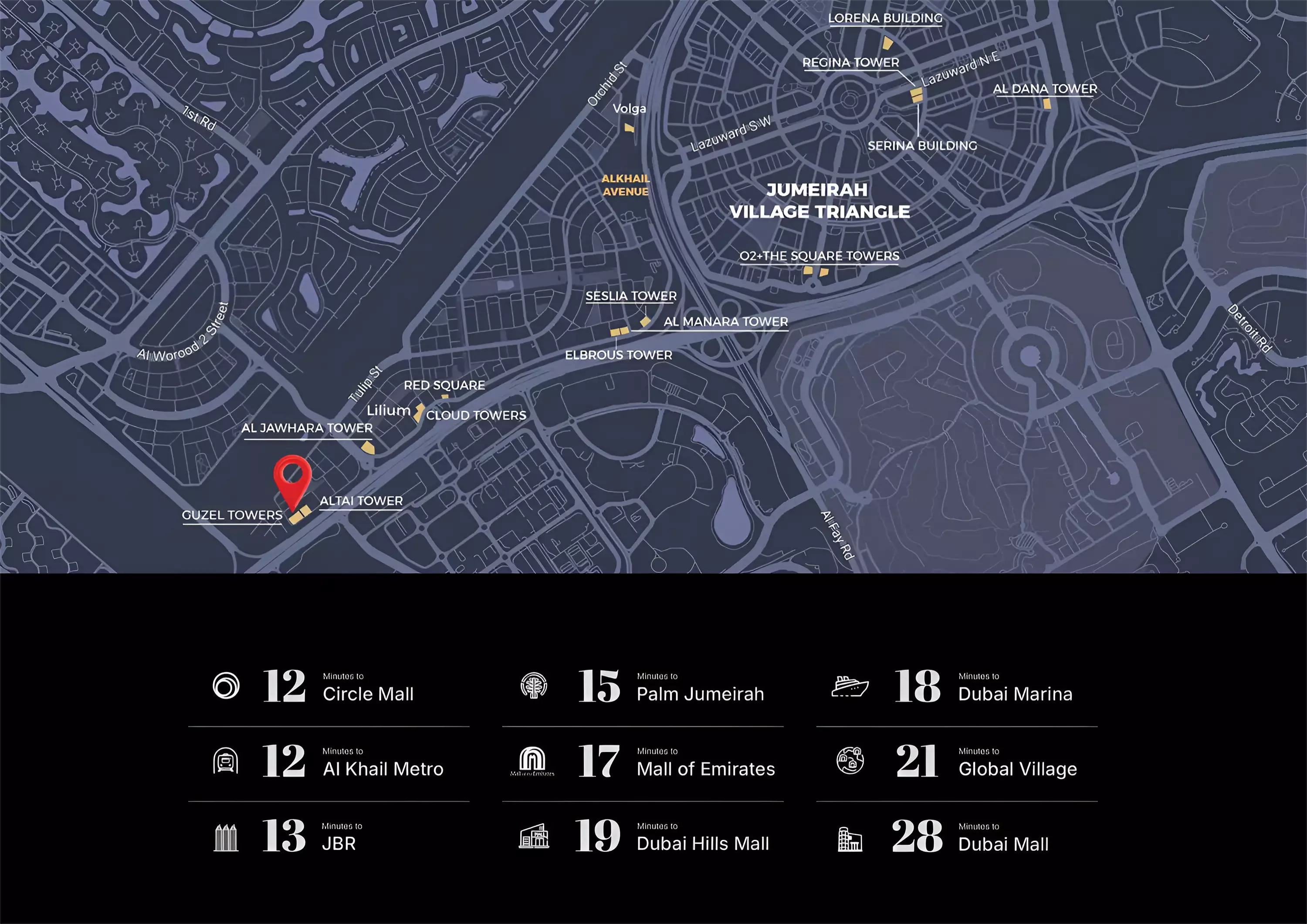 Guzel Tower Phase 4 by Tiger is located in Dubai, Jumeirah Village Triangle, a strategic area with excellent city connectivity.