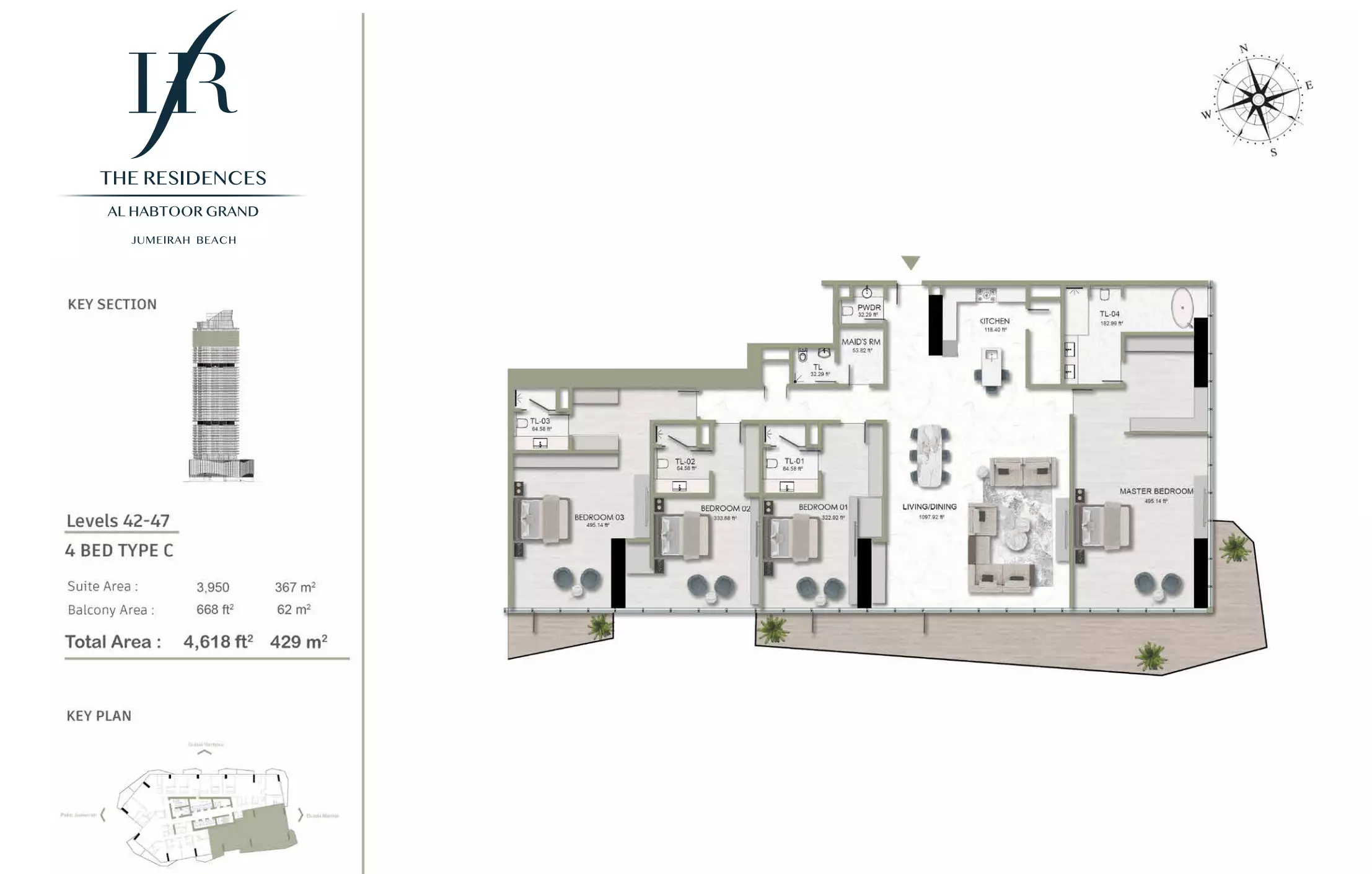 Habtoor Grand Residences offers strong investment potential, with a prime location in Dubai Marina, direct beach access, and luxury amenities. The high demand for properties in this area combined with top-tier features ensures excellent long-term value growth.