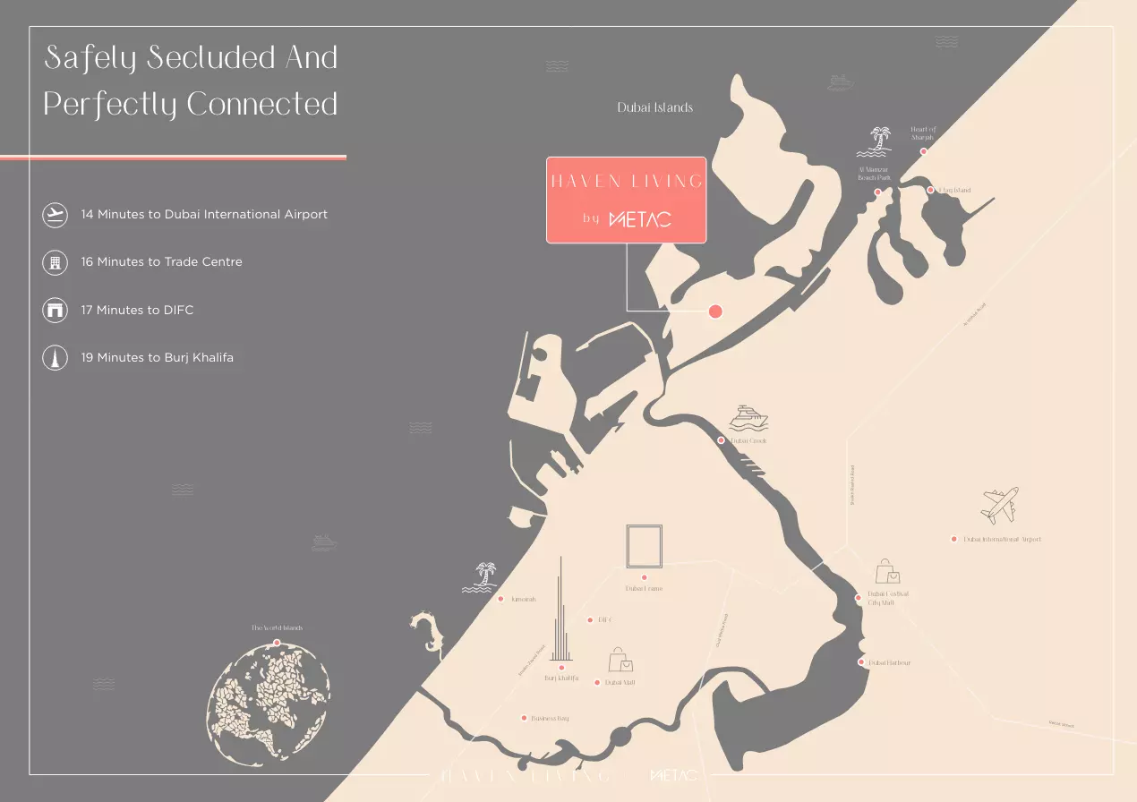 Haven Living is a promising investment due to its prime location in Dubai Islands, a prestigious waterfront development. With easy access to sandy beaches, parks, and Deira Mall, it provides a balanced lifestyle with both serenity and convenience. The development’s strategic position within the Dubai Islands, known for its expansive beaches, parks, and planned amenities, offers long-term value. Moreover, Metac Properties’ reputation for high-end developments like Arabian Ranches 2 and Nad Al Sheba Villas ensures strong investor confidence. The combination of affordable pricing, flexible payment plans, and proximity to key attractions makes Haven Living a strong investment opportunity.