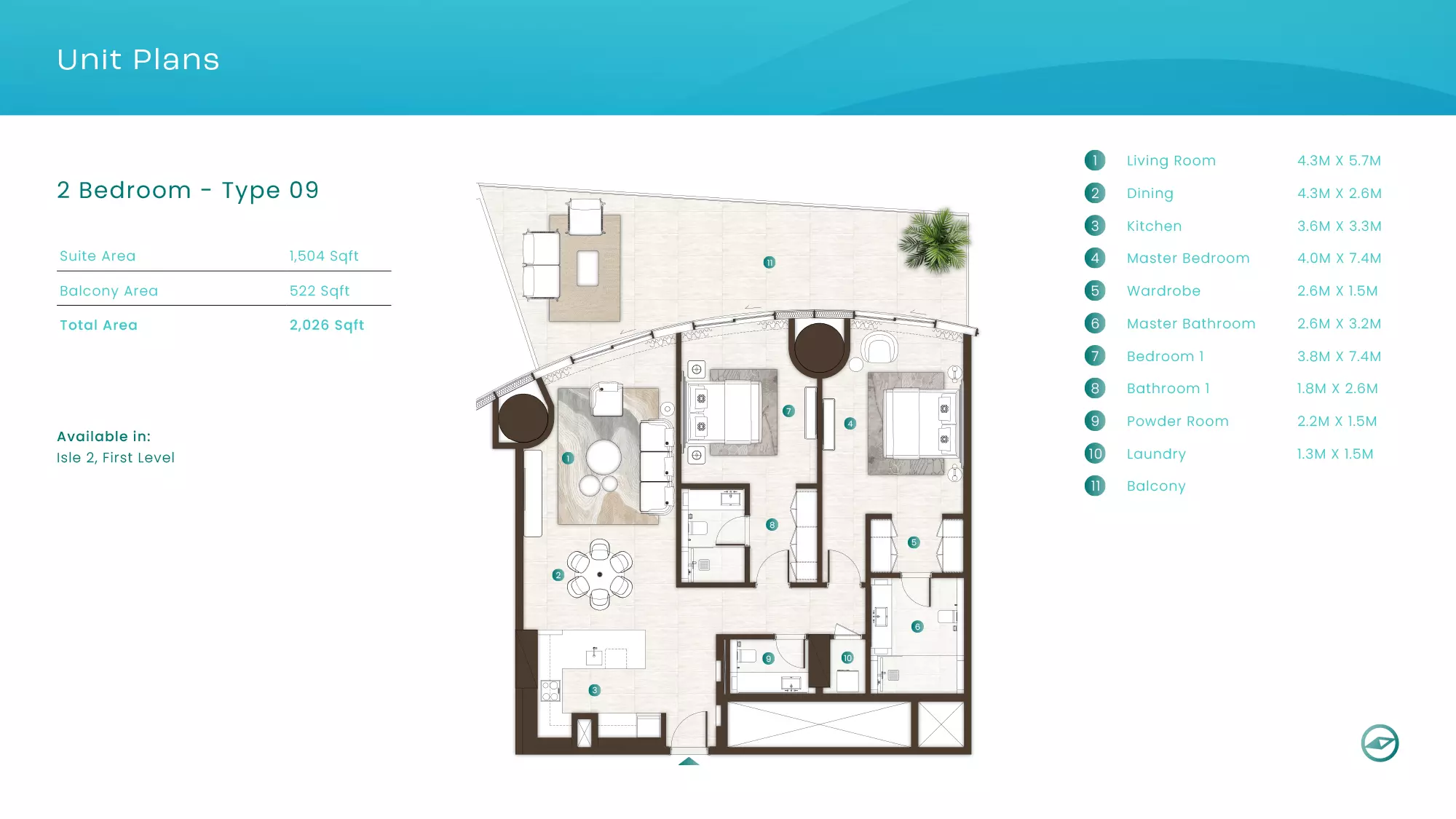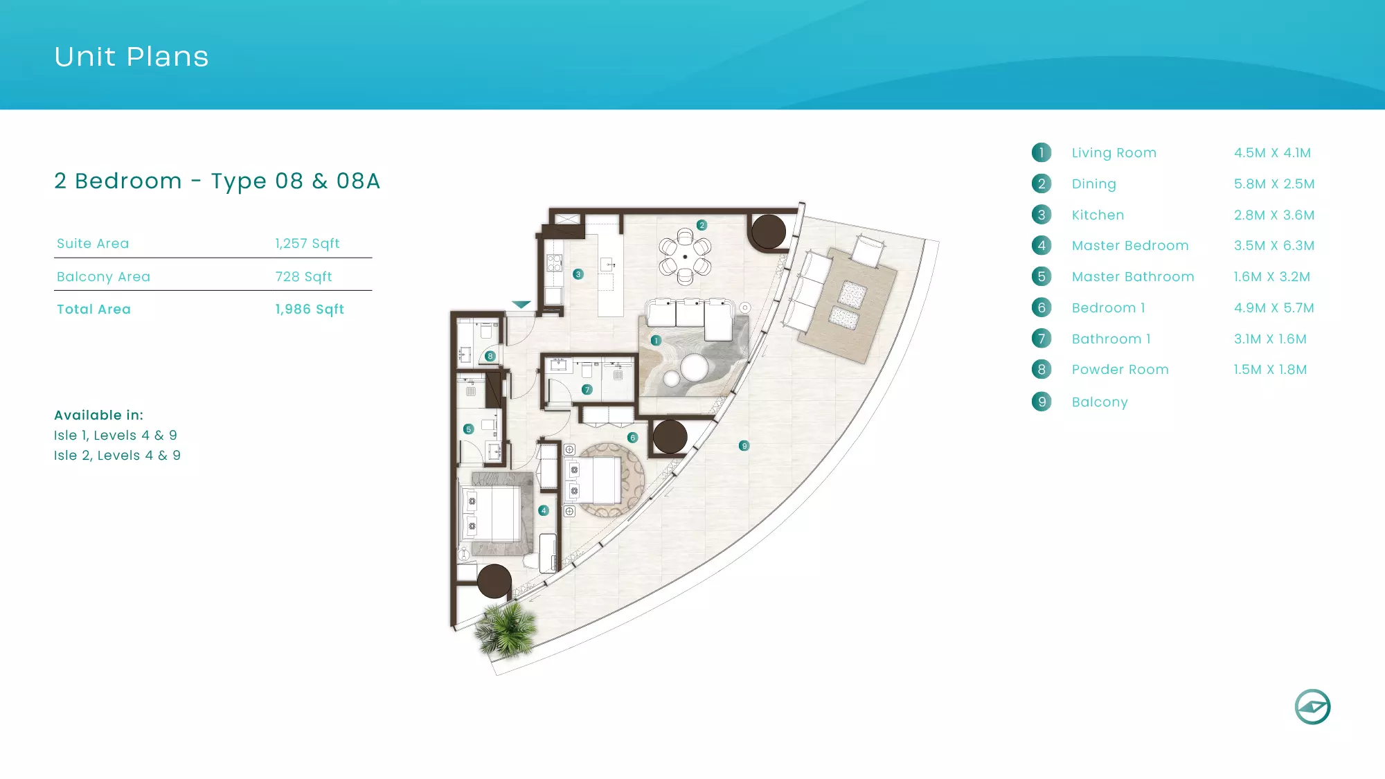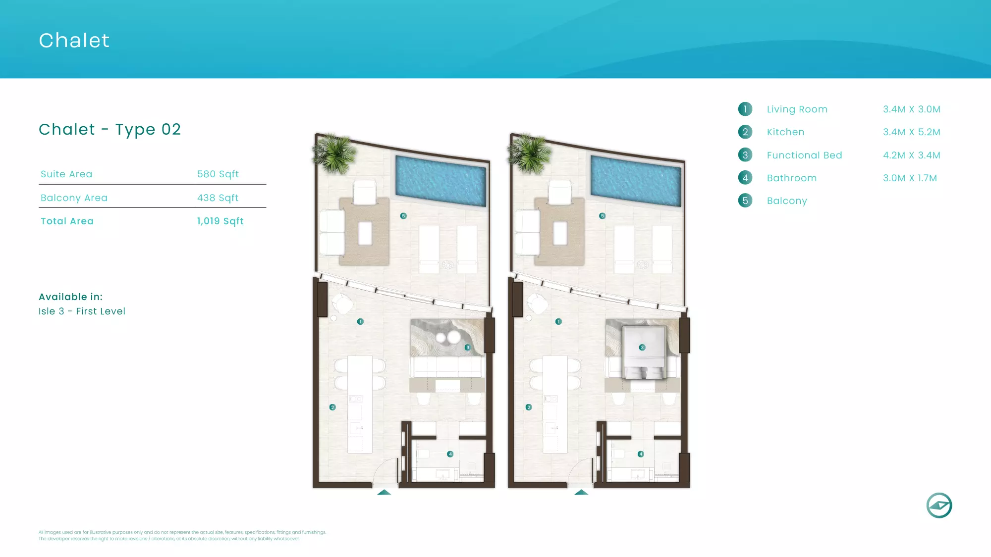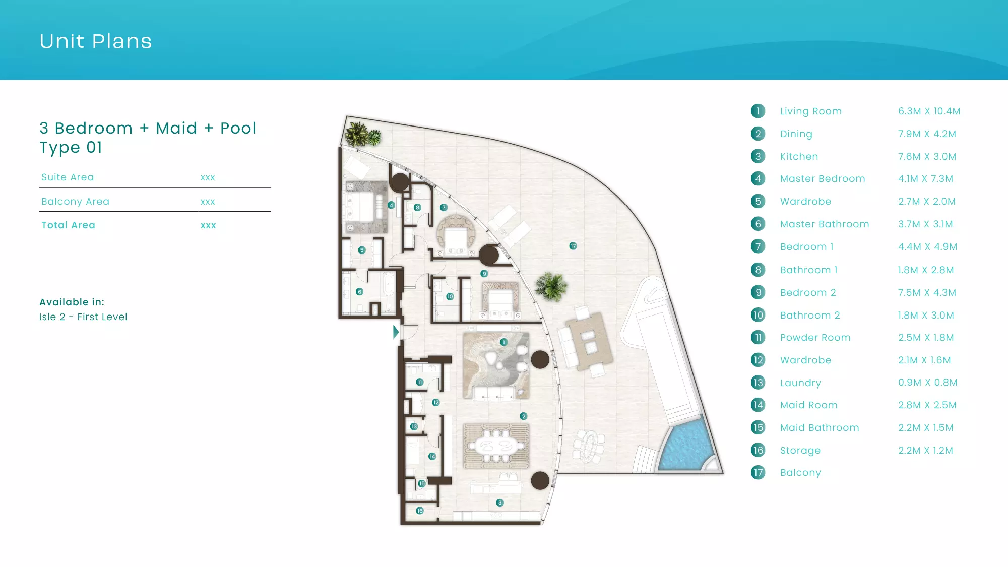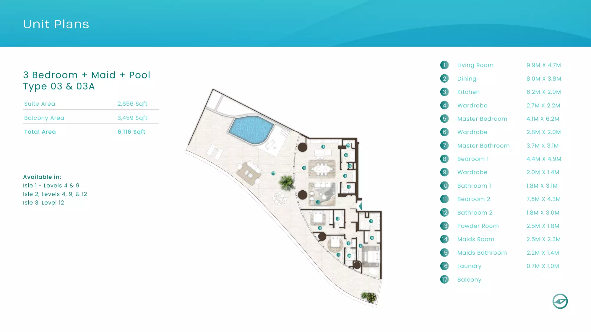 La Mer by Elie Saab offers luxurious apartments in various configurations: 1 Bed apartments, with sizes ranging from 1,019 to 2,026 sqft, starting from 1.9M AED. 2 Bed apartments, with sizes between 1,108 to 2,638 sqft, starting from 3.1M AED. 3 Bed apartments starting from 5.2M AED (specific sizes not mentioned). 4 Bed apartments with a size of 3,337 sqft. These properties are designed with high-end finishes and offer a premium lifestyle in the sought-after location of Al Marjan Island, Ras Al Khaimah.