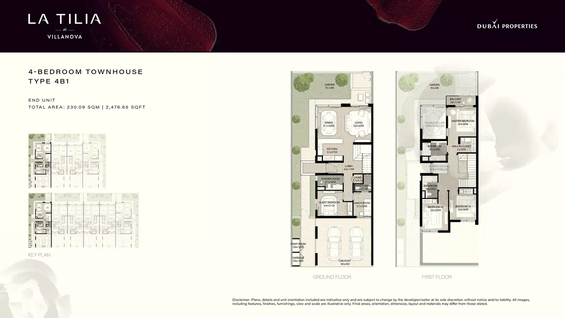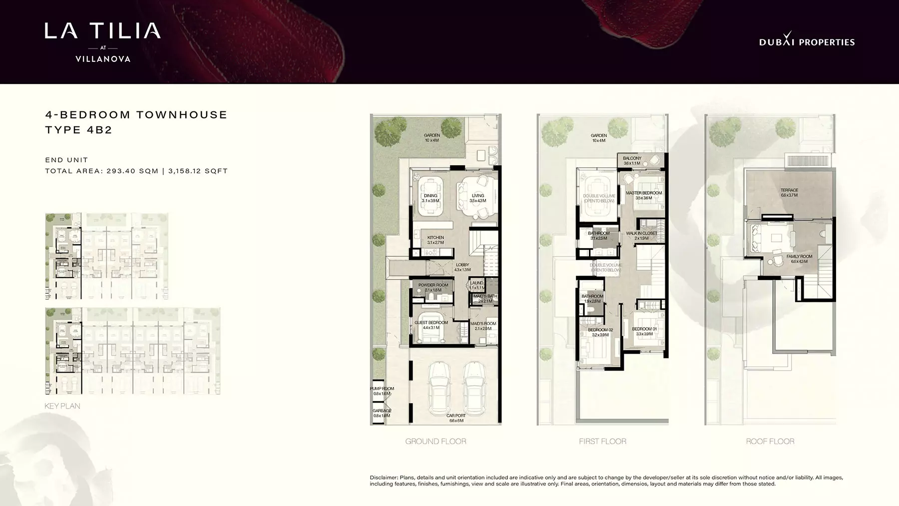 La Tilia, the latest phase of Villanova at Dubailand by Dubai Properties, presents an exceptional investment opportunity with its modern 3- and 4-bedroom townhouses. Designed to complement its natural surroundings, these homes feature sleek architecture, large floor-to-ceiling windows, and spacious balconies that enhance the seamless flow between indoor and outdoor living areas. The 3-bedroom units offer open, airy layouts ideal for family living, while the 4-bedroom townhouses provide expansive living spaces with double-height ceilings and spa-like master bedrooms. With its prime location and luxurious design, La Tilia is an attractive choice for those seeking a high-quality home or a profitable investment in Dubai's growing real estate market.