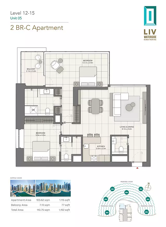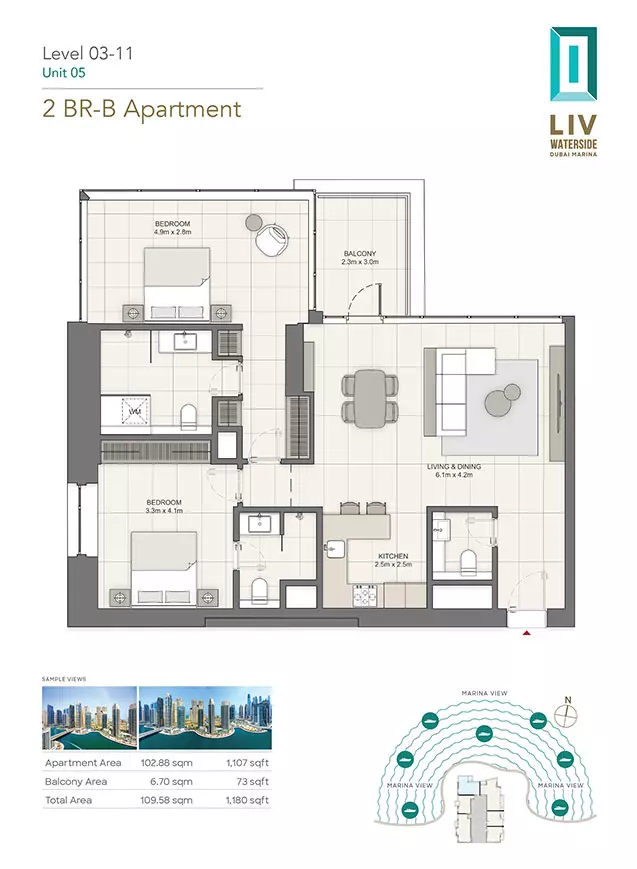 LIV Waterside in Dubai Marina is an exceptional investment opportunity, offering a blend of luxury living and strategic location. The project features a wide range of properties, including 1, 2, and 3-bedroom apartments, duplex penthouses, signature waterfront villas, townhouses, and a Mansion, each with breathtaking views of the marina and Dubai’s skyline. Its prime location in Dubai Marina ensures easy access to the city’s vibrant social scene, shopping destinations, and world-class dining. The development stands out with its unparalleled views, contemporary design, and expansive living spaces. The Mansion is a unique offering, providing private gardens, a pool, and a show garage, which further elevates the project’s appeal. Additionally, the waterfront villas, duplex penthouses, and townhouses are designed for those seeking the pinnacle of luxury living.