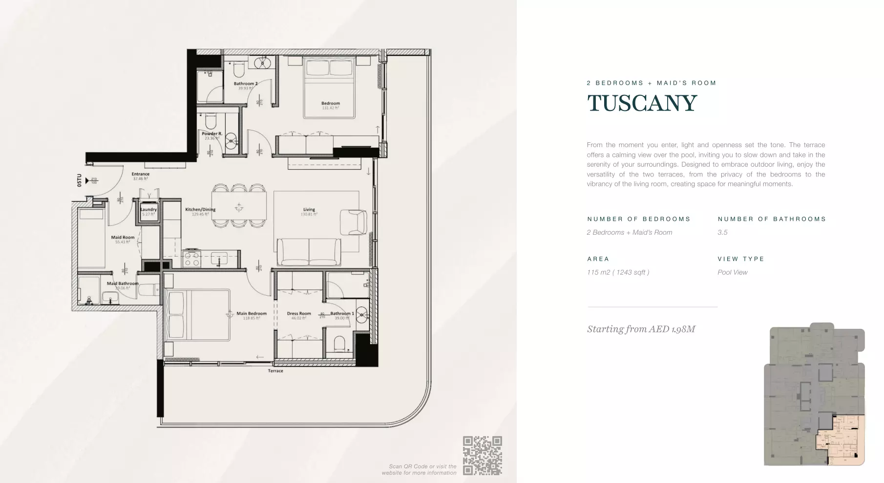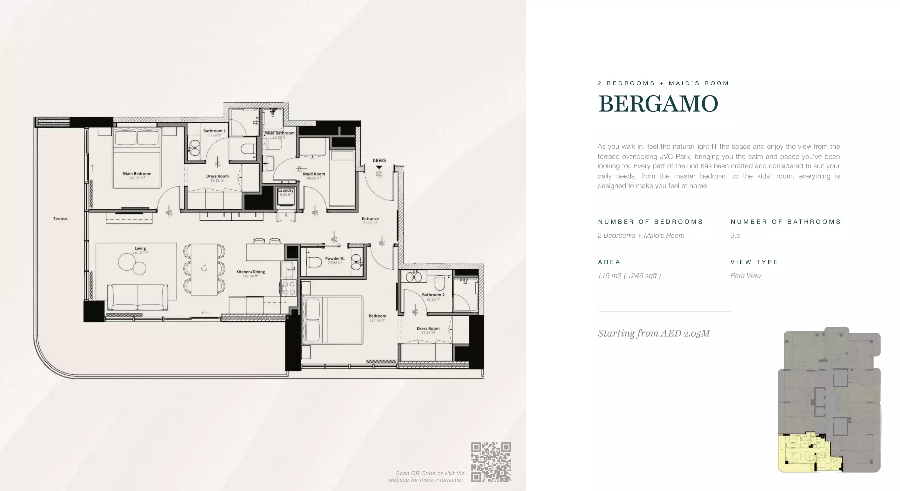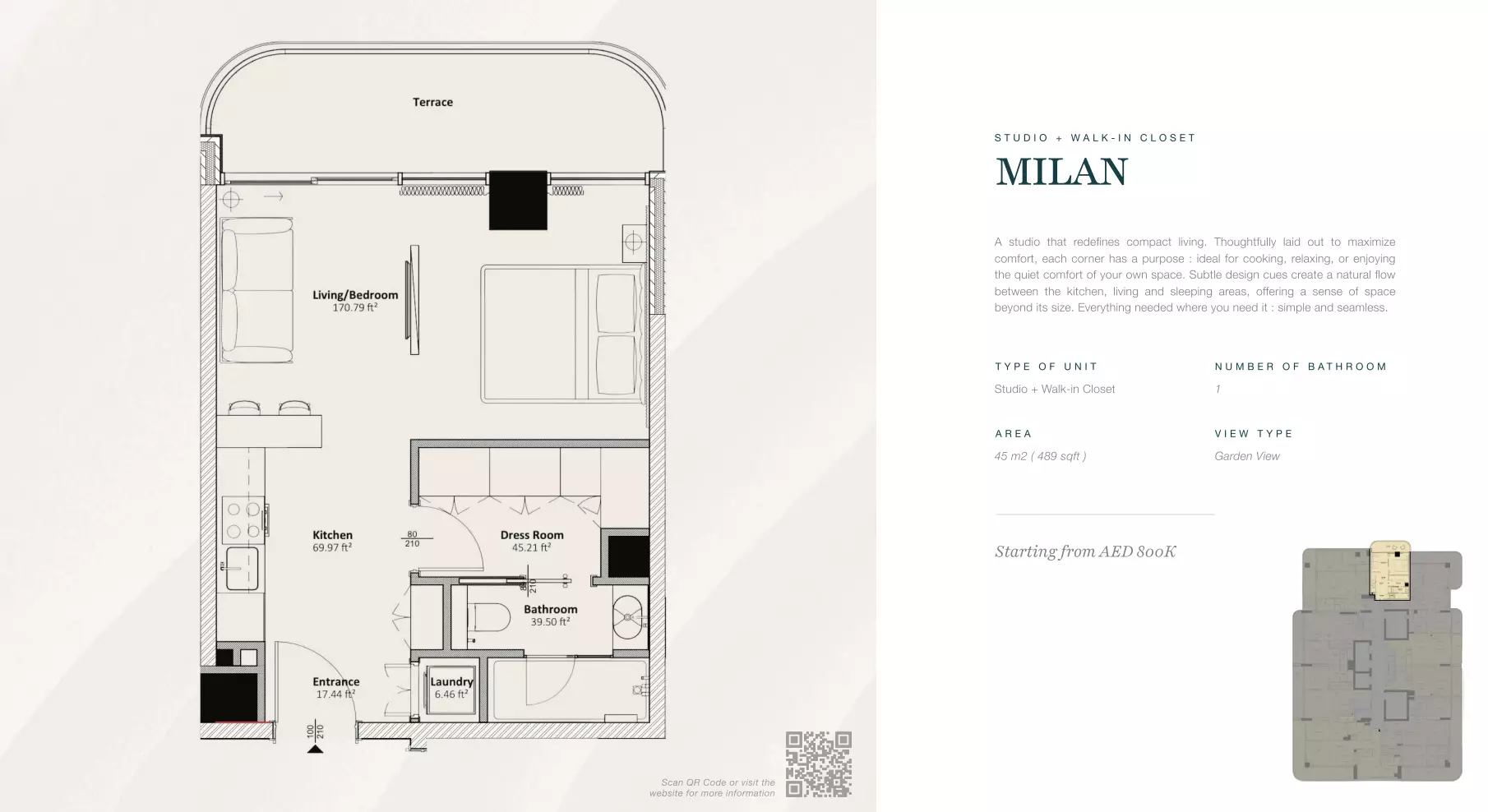 Livel Residenza offers a range of well-designed apartments tailored to various living needs and preferences. The available unit types include studio, one-bedroom, and two-bedroom apartments, each offering practical layouts and quality finishes. • Studios start at AED 756,000 with sizes ranging from 452 to 489 square feet. These units are ideal for singles or investors seeking efficient, modern spaces. • 1-bedroom apartments begin at AED 1.2 million, offering between 757 and 926 square feet. These are suited for individuals or couples looking for more room and comfort. • 2-bedroom apartments are priced from AED 2 million, with sizes between 1,243 and 1,299 square feet. They include spacious layouts ideal for families or those needing extra space. Each unit combines smart design with access to premium amenities, making Livel Residenza a practical and appealing residential choice in Dubai’s Jumeirah Village Circle.