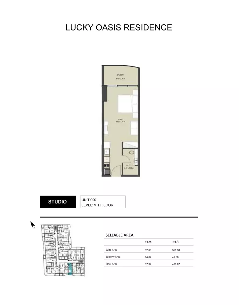Lucky Oasis Residence's starting price is 633,000 AED.