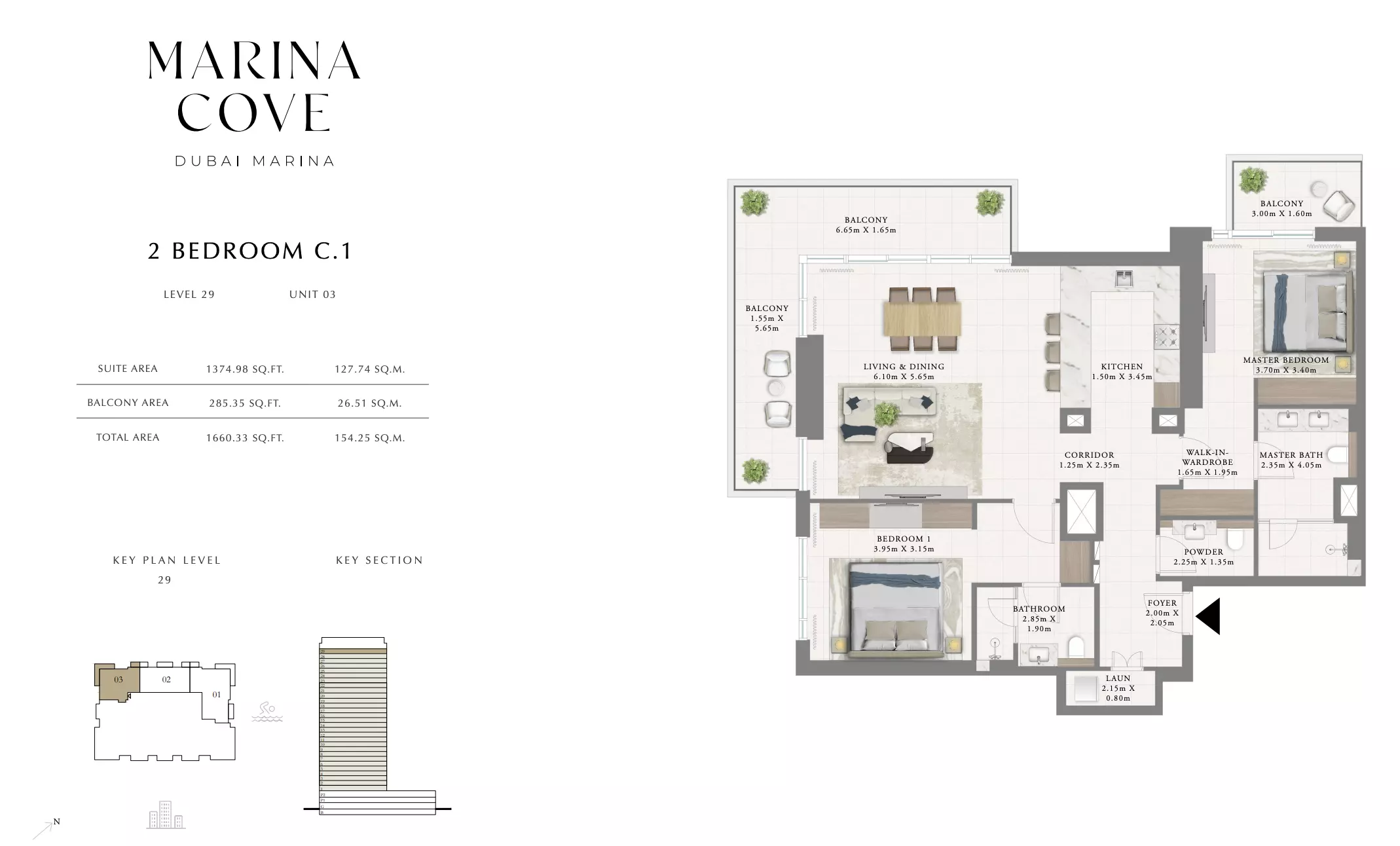 The payment plan for Marina Cove offers flexibility with a 10% down payment, followed by 70% during construction, and the remaining 20% upon handover. This structured payment approach allows buyers to manage their investment conveniently while ensuring a seamless transition to ownership at handover.