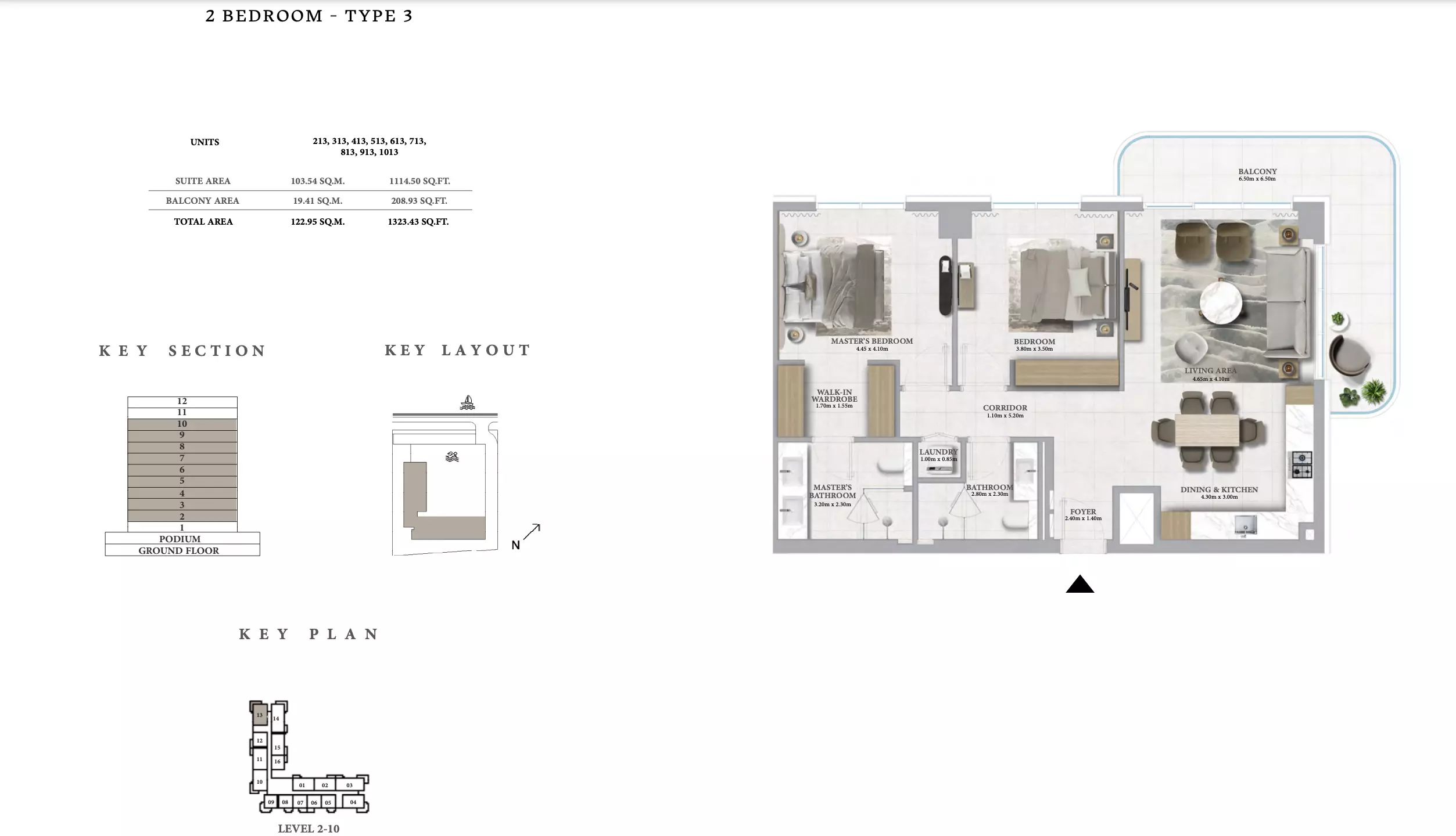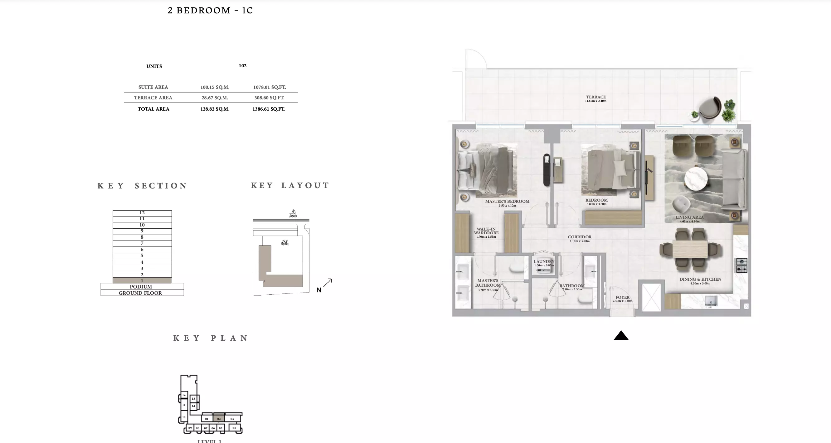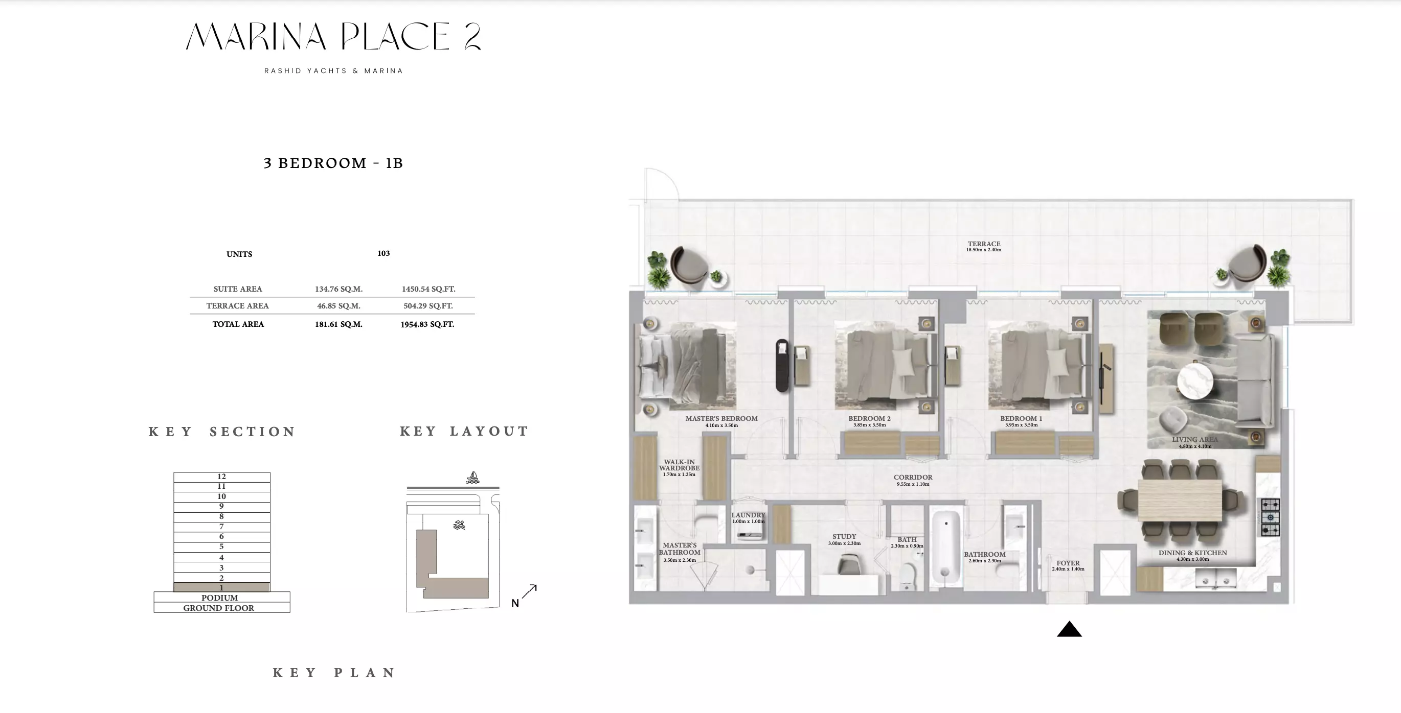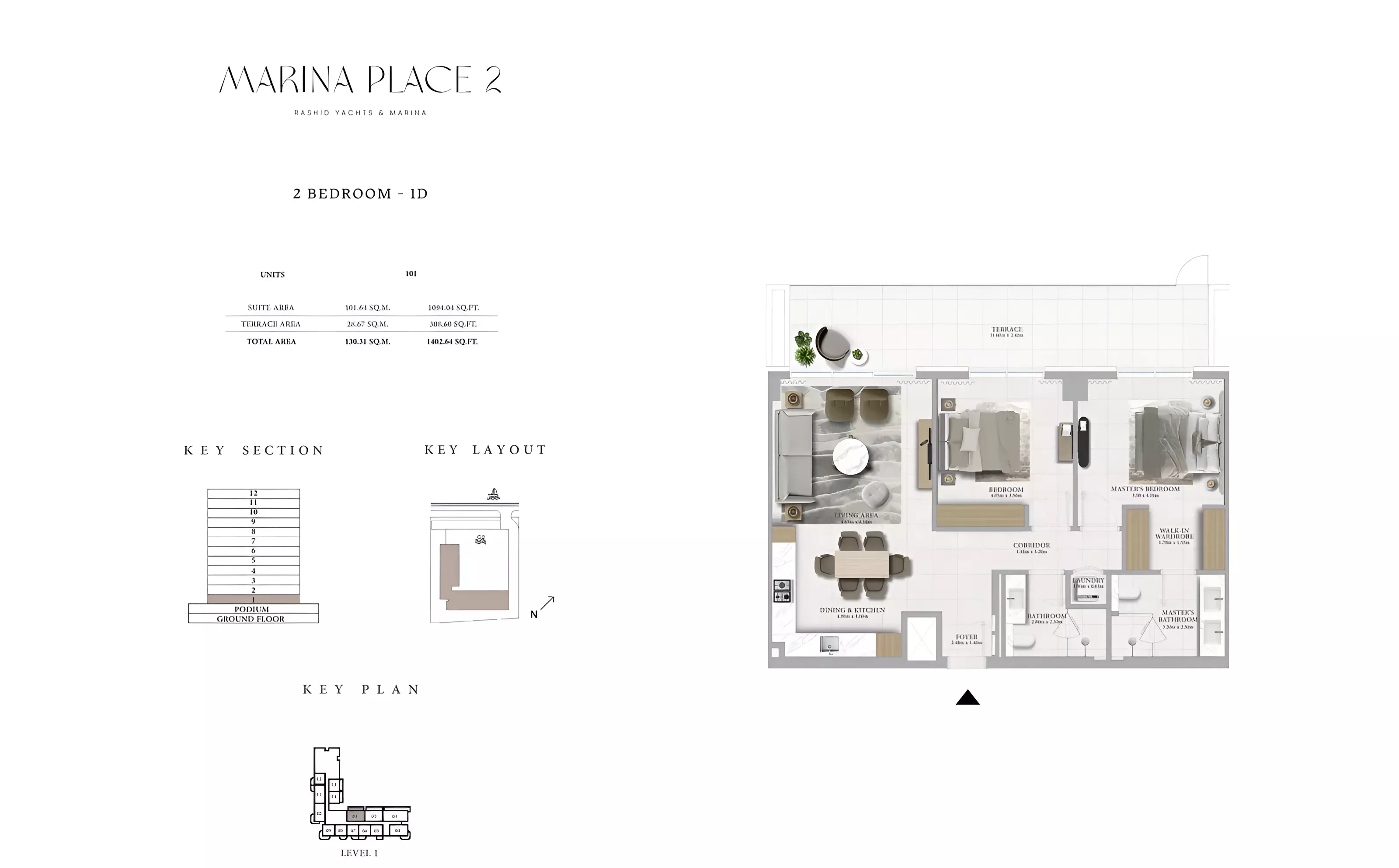 Marina Place Phase 2 offers a variety of modern apartments and townhouses: • 1 Bedroom Apartments: Sizes ranging from 801 to 910 sqft. • 2 Bedroom Apartments: Sizes ranging from 1,163 to 1,402 sqft. • 3 Bedroom Apartments: Sizes ranging from 1,718 to 1,954 sqft. • 3 Bedroom Townhouses: Sizes ranging from 2,543 to 2,557 sqft.