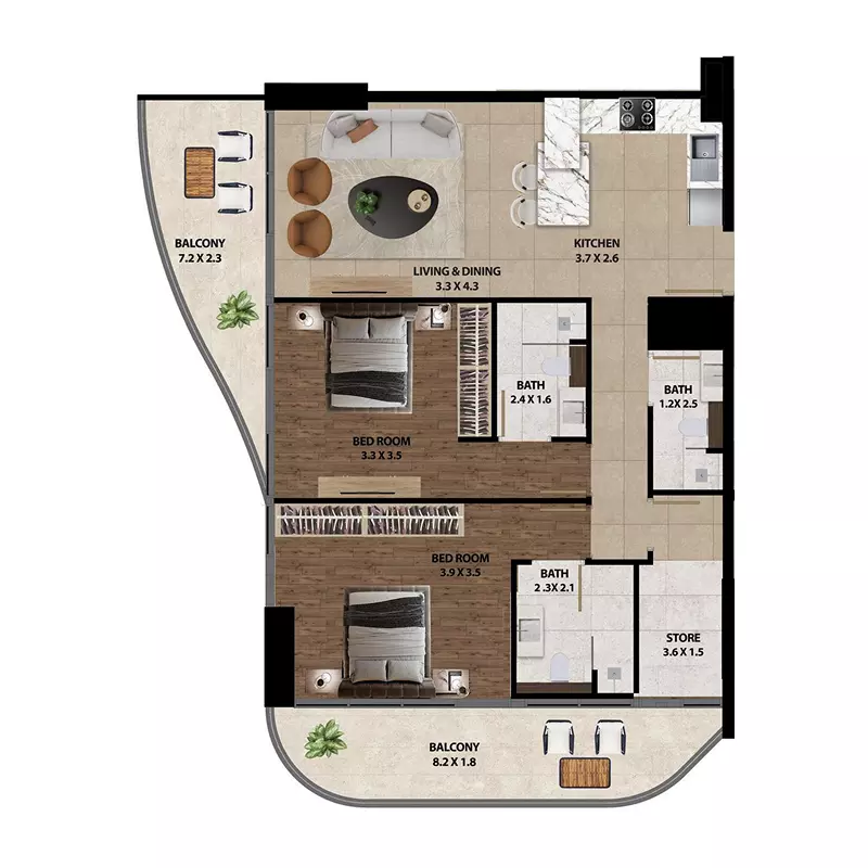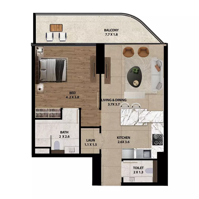 Marquis One offers a selection of modern apartments designed to suit various lifestyles, from compact studios to spacious two-bedroom units. Studio apartments are available, with details provided upon inquiry, making them ideal for individuals or investors seeking flexibility. One-bedroom apartments start from 1.4 million AED and feature 881 square feet of well-planned living space, providing comfort and efficient layouts for singles or couples. Two-bedroom units begin at 1.9 million AED and cover 1,360 square feet, offering ample space for families or residents who prefer larger homes. Each apartment combines contemporary design with functional interiors, delivering a balanced mix of style, convenience, and comfort.