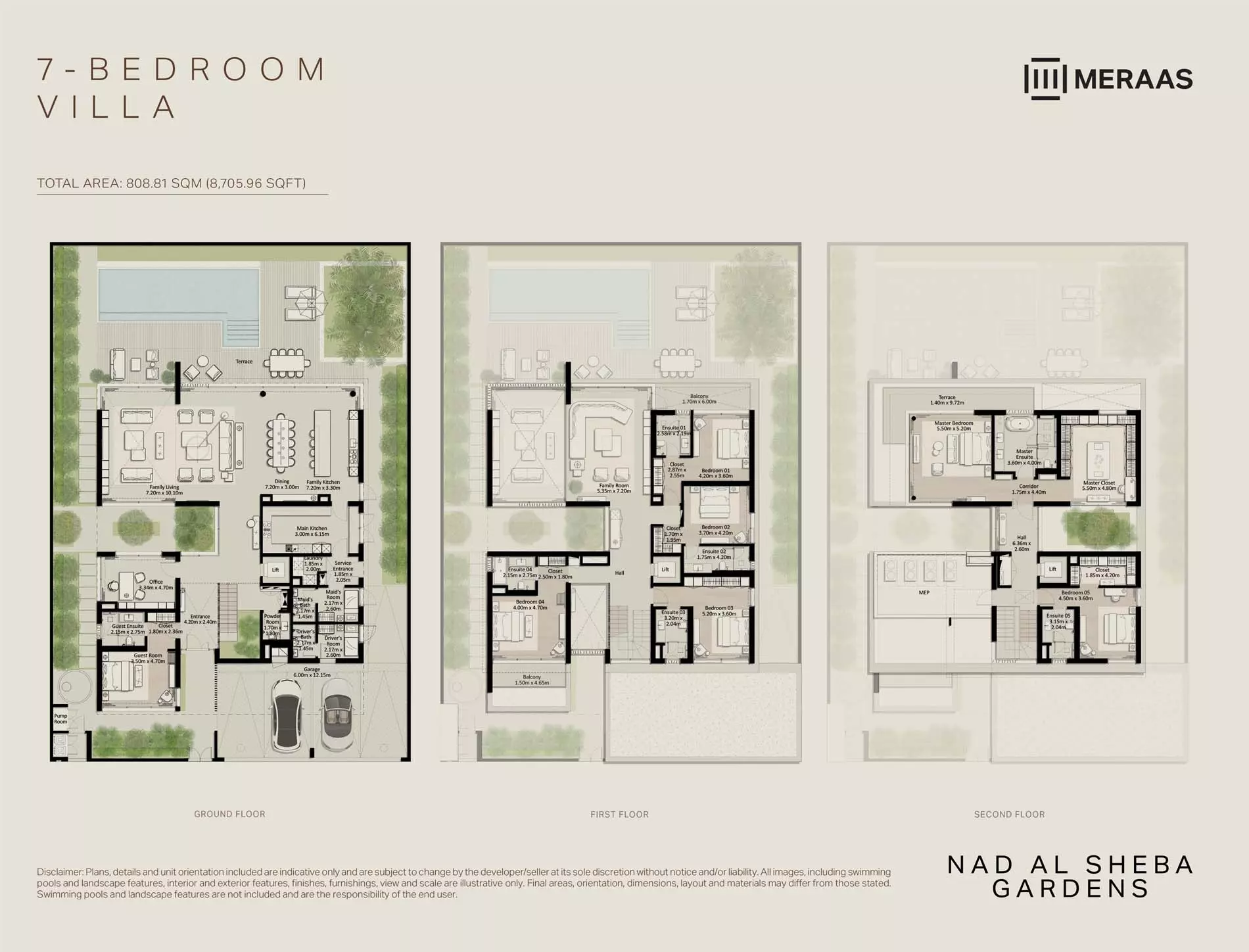 Nad Al Sheba Gardens 10 offers a diverse selection of spacious freehold homes, including townhouses and villas designed to meet the needs of families seeking quality living in a well-connected Dubai location. Townhouses start from AED 5.1 million for 3-bedroom units, with sizes ranging from 2,705 to 3,705 sqft. Villas are available in several configurations: – 4-bedroom villas start at AED 11 million with a built-up area of 4,795 sqft. – 5-bedroom villas are priced from AED 14 million and offer 5,651 sqft of space. – 6-bedroom villas begin at AED 18 million, measuring 6,872 sqft. – 7-bedroom villas start at AED 25 million, with a total area of 8,705 sqft. These homes feature contemporary architecture, private gardens, and premium finishes, providing a refined and comfortable residential environment.