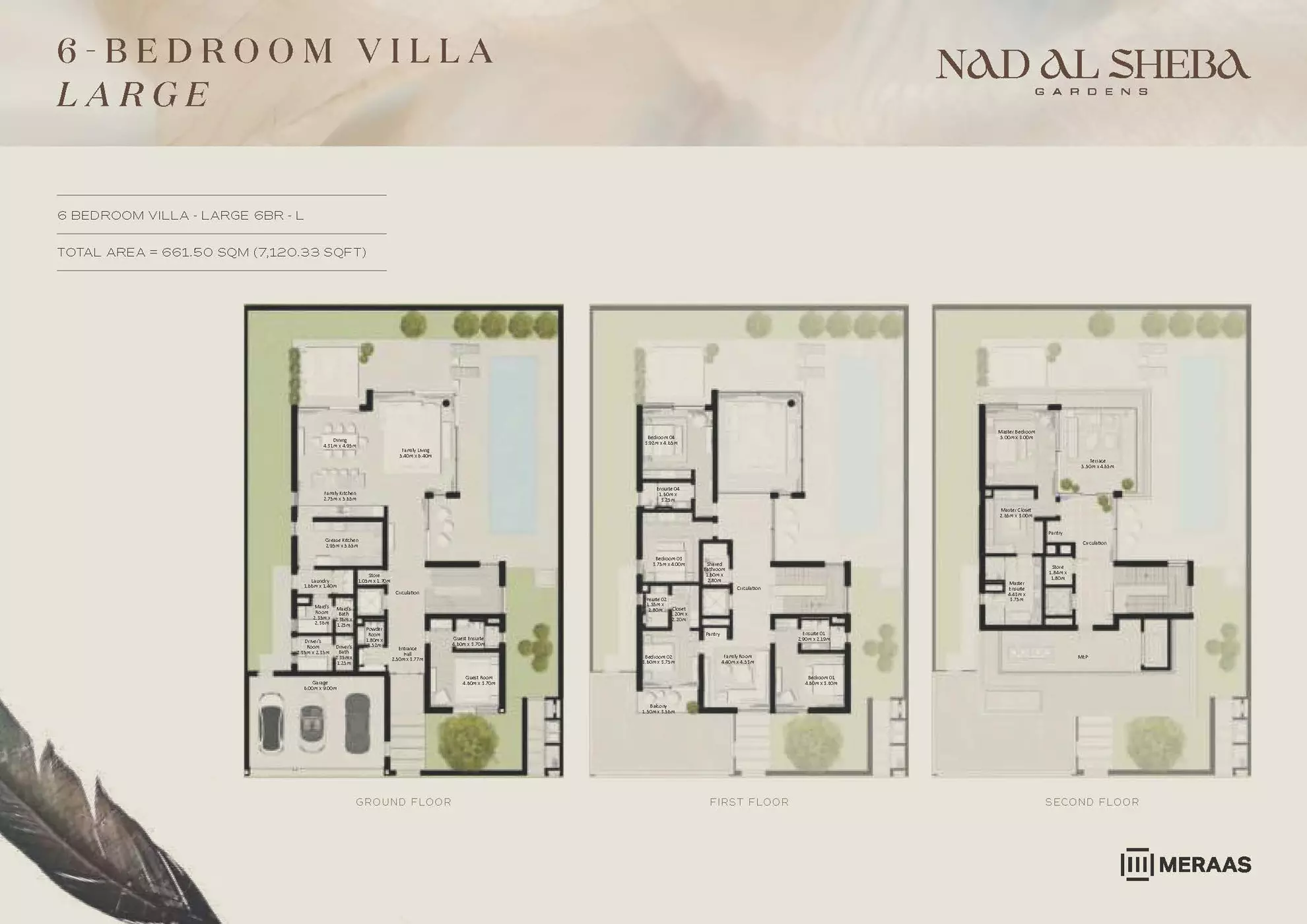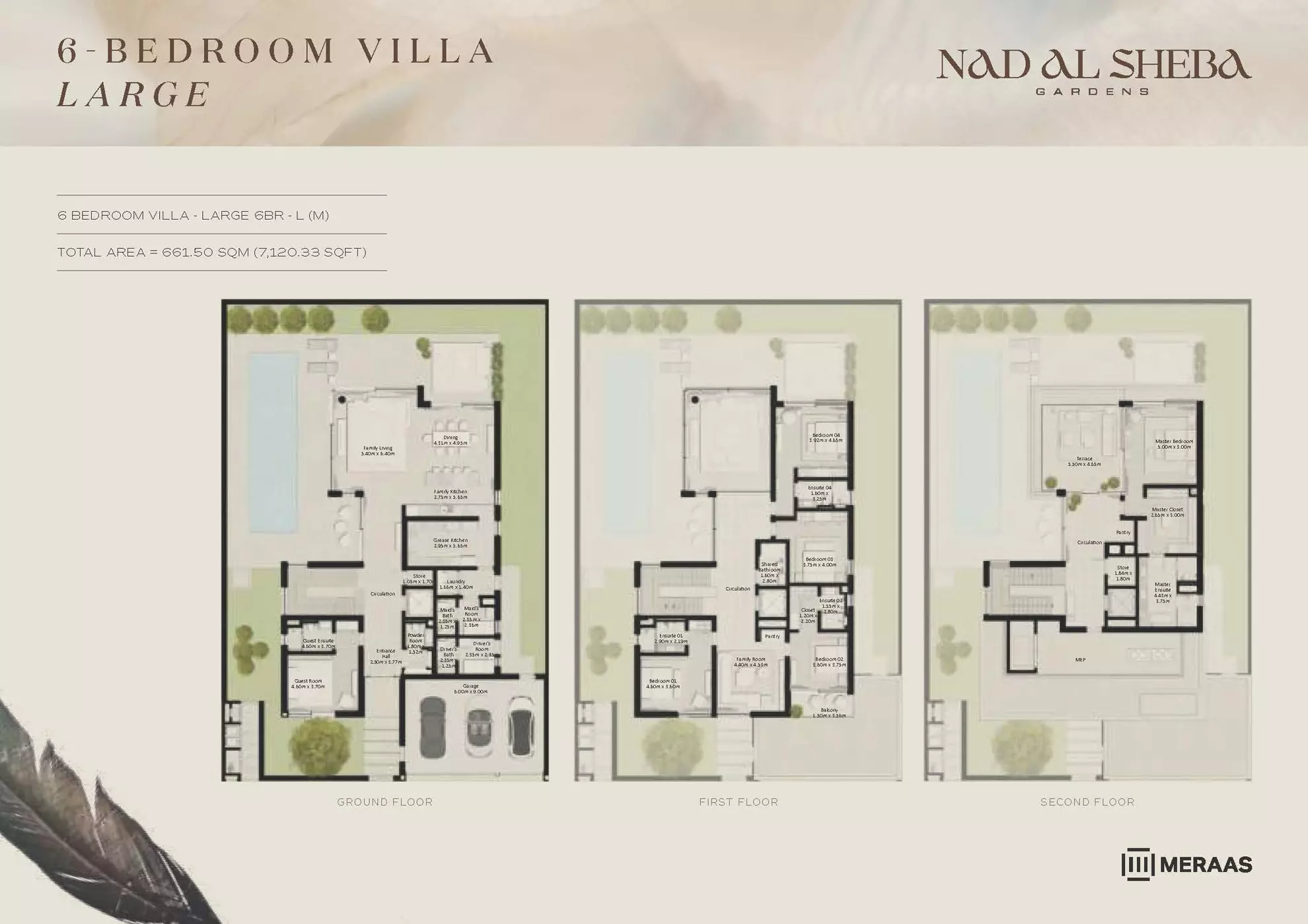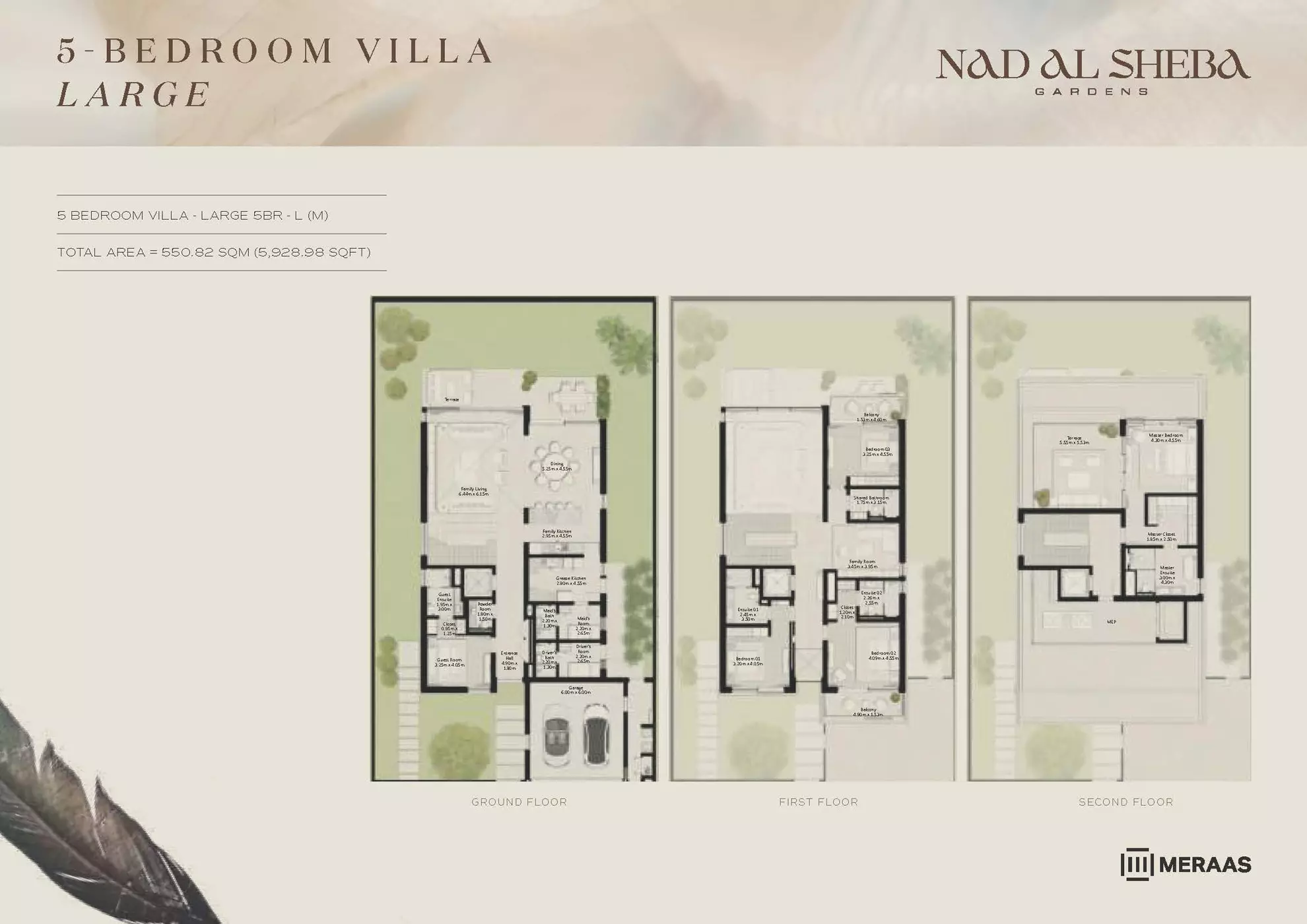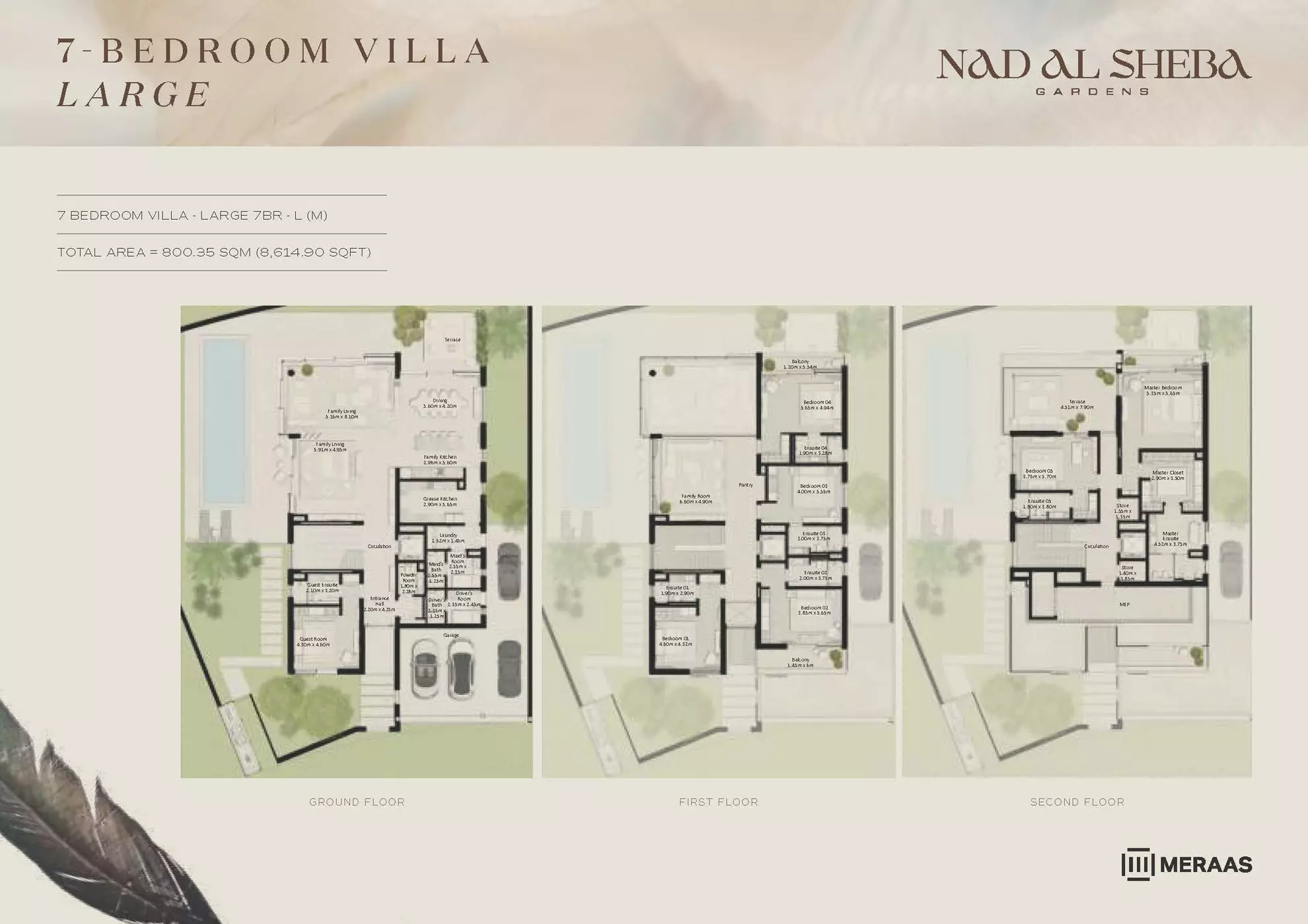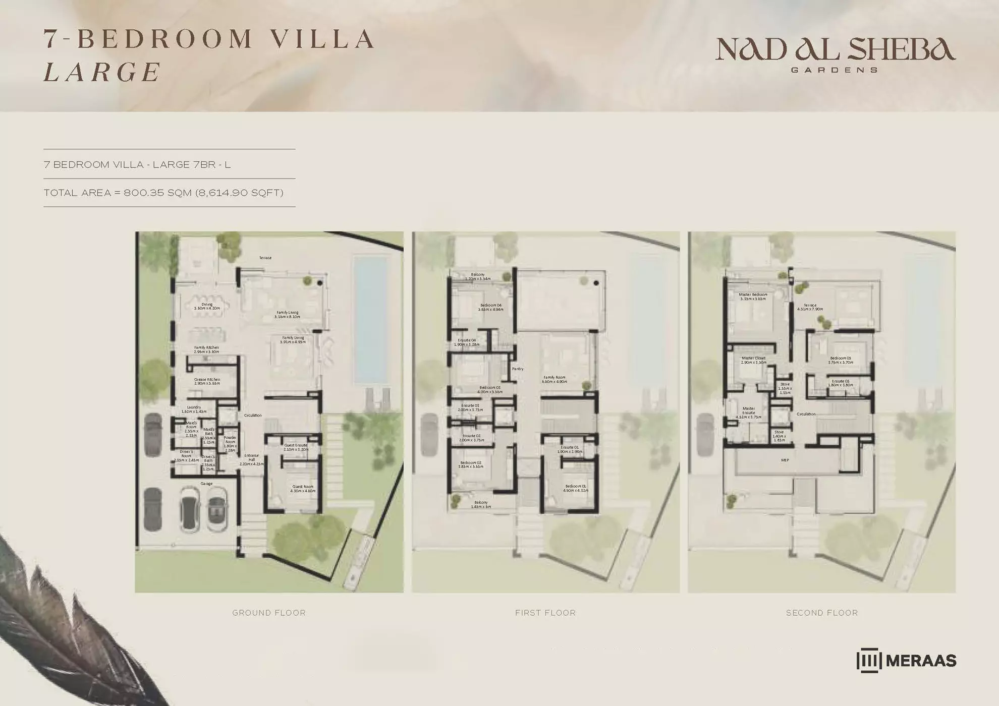 Nad Al Sheba Gardens Phase 5 by Meraas offers a range of luxurious housing options, including both townhouses and villas. The available units are: Townhouses: 3-bedroom units, ranging from 2,780 to 3,337 sqft, with prices starting from 4.2M AED. Villas: 4-bedroom villas, each 4,935 sqft, priced from 8.1M AED. 5-bedroom villas, ranging from 5,492 to 5,928 sqft, starting at 10M AED. 6-bedroom villas, ranging from 6,597 to 7,120 sqft, with prices starting from 13M AED. 7-bedroom villas, each 8,614 sqft, priced from 15M AED. These upscale properties provide spacious living with varying sizes and prices to suit different preferences.