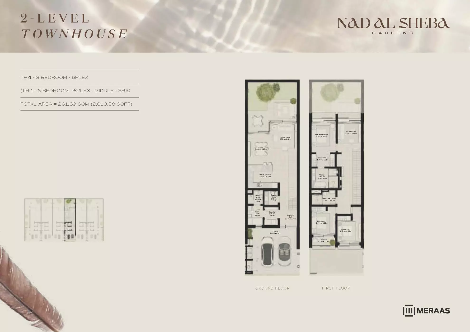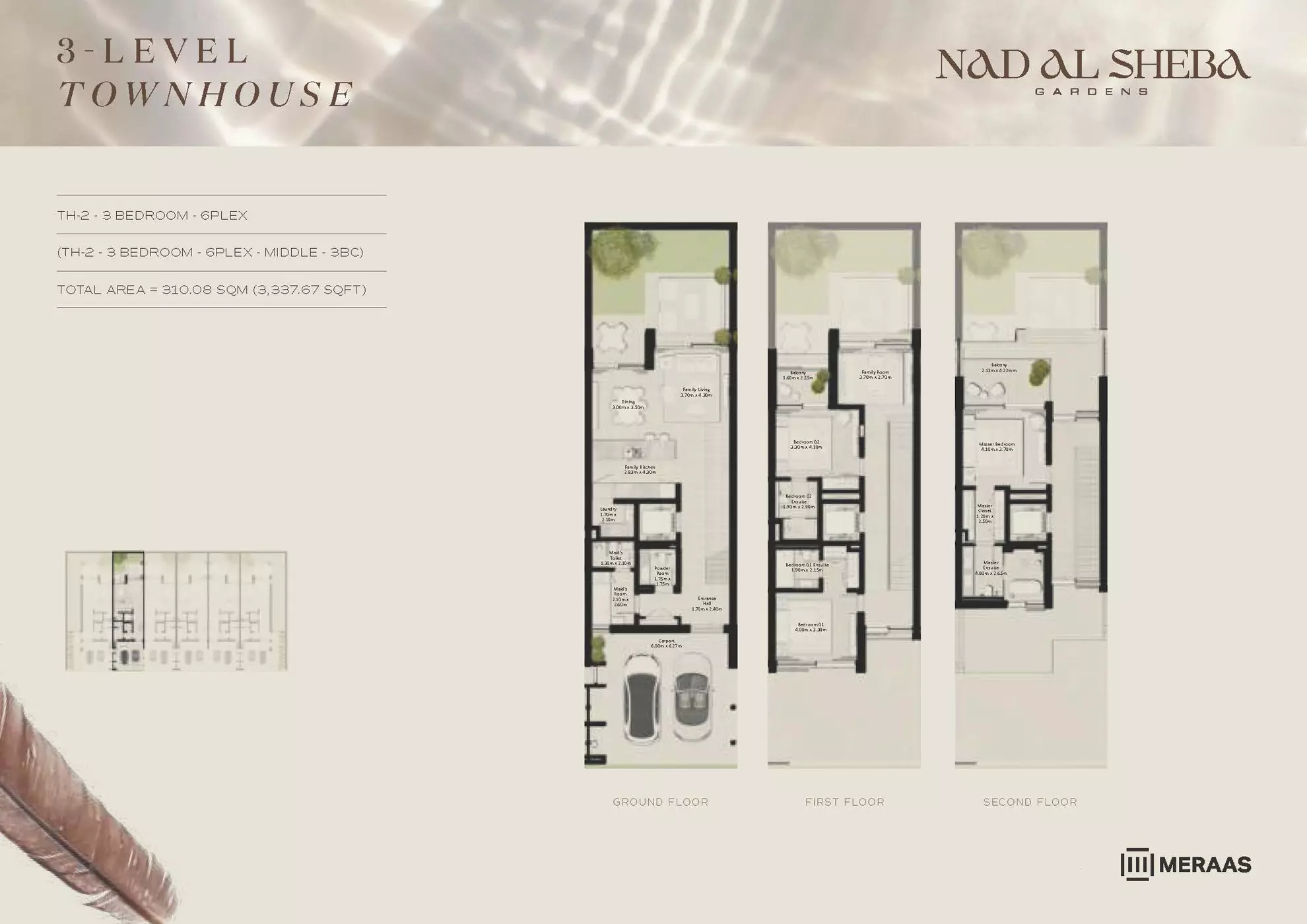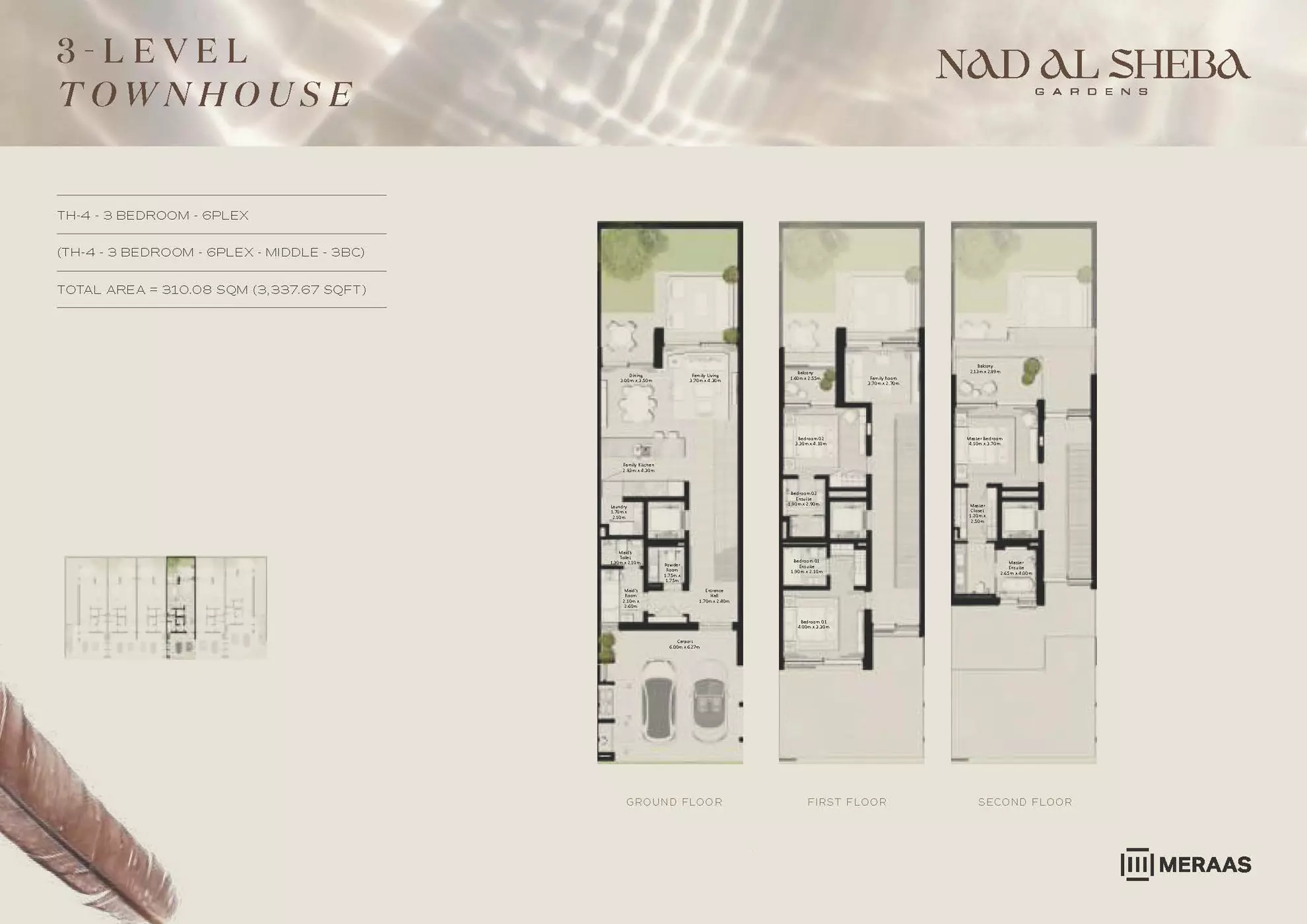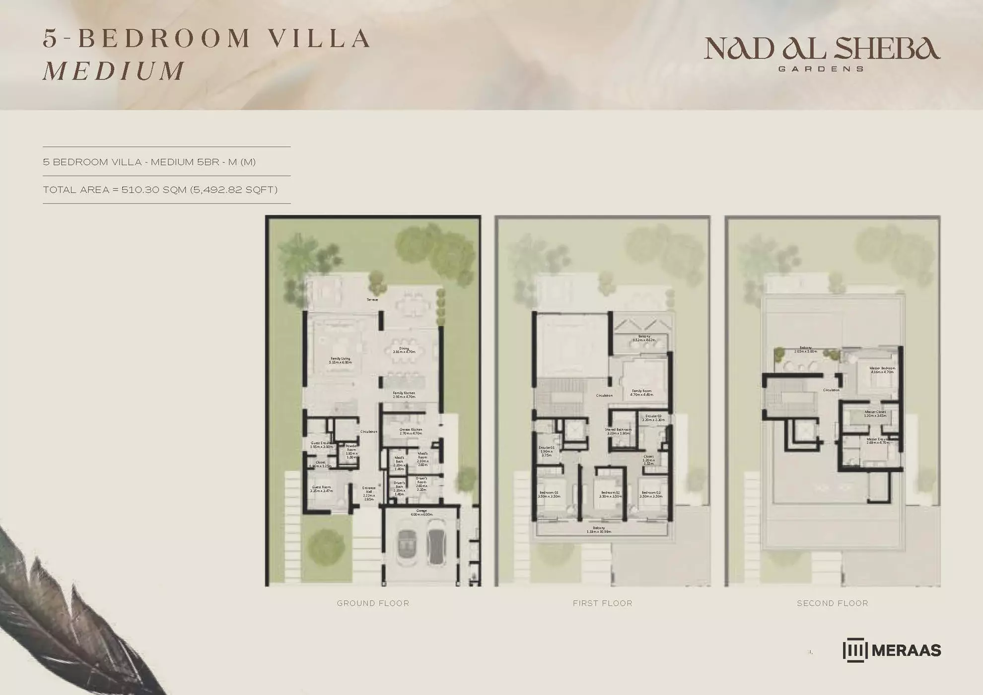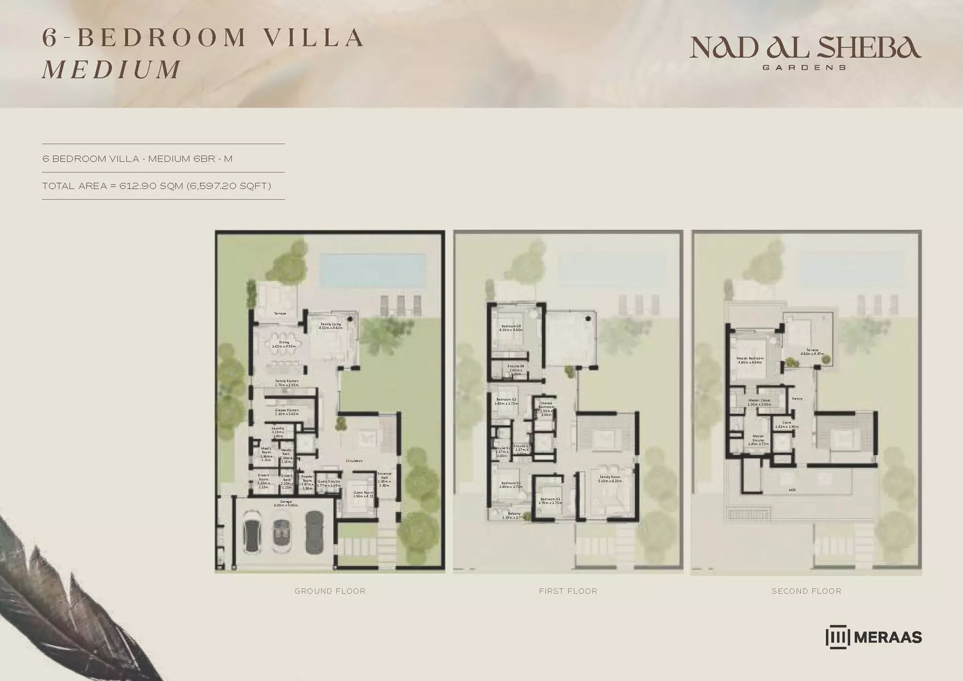 Nad Al Sheba Gardens Phase 5 by Meraas offers a range of luxurious housing options, including both townhouses and villas. The available units are: Townhouses: 3-bedroom units, ranging from 2,780 to 3,337 sqft, with prices starting from 4.2M AED. Villas: 4-bedroom villas, each 4,935 sqft, priced from 8.1M AED. 5-bedroom villas, ranging from 5,492 to 5,928 sqft, starting at 10M AED. 6-bedroom villas, ranging from 6,597 to 7,120 sqft, with prices starting from 13M AED. 7-bedroom villas, each 8,614 sqft, priced from 15M AED. These upscale properties provide spacious living with varying sizes and prices to suit different preferences.