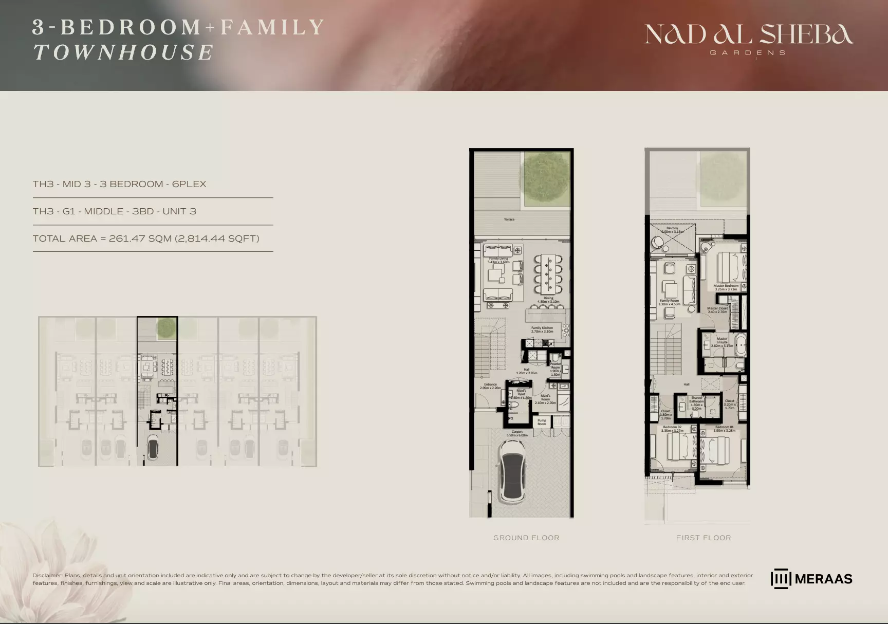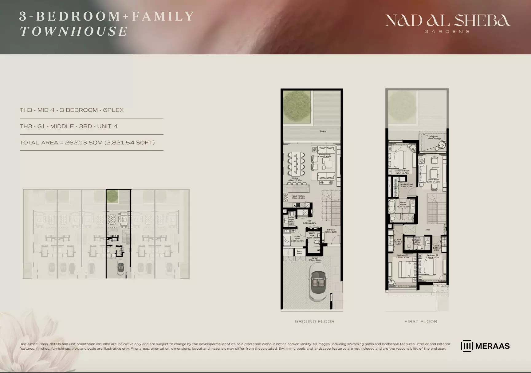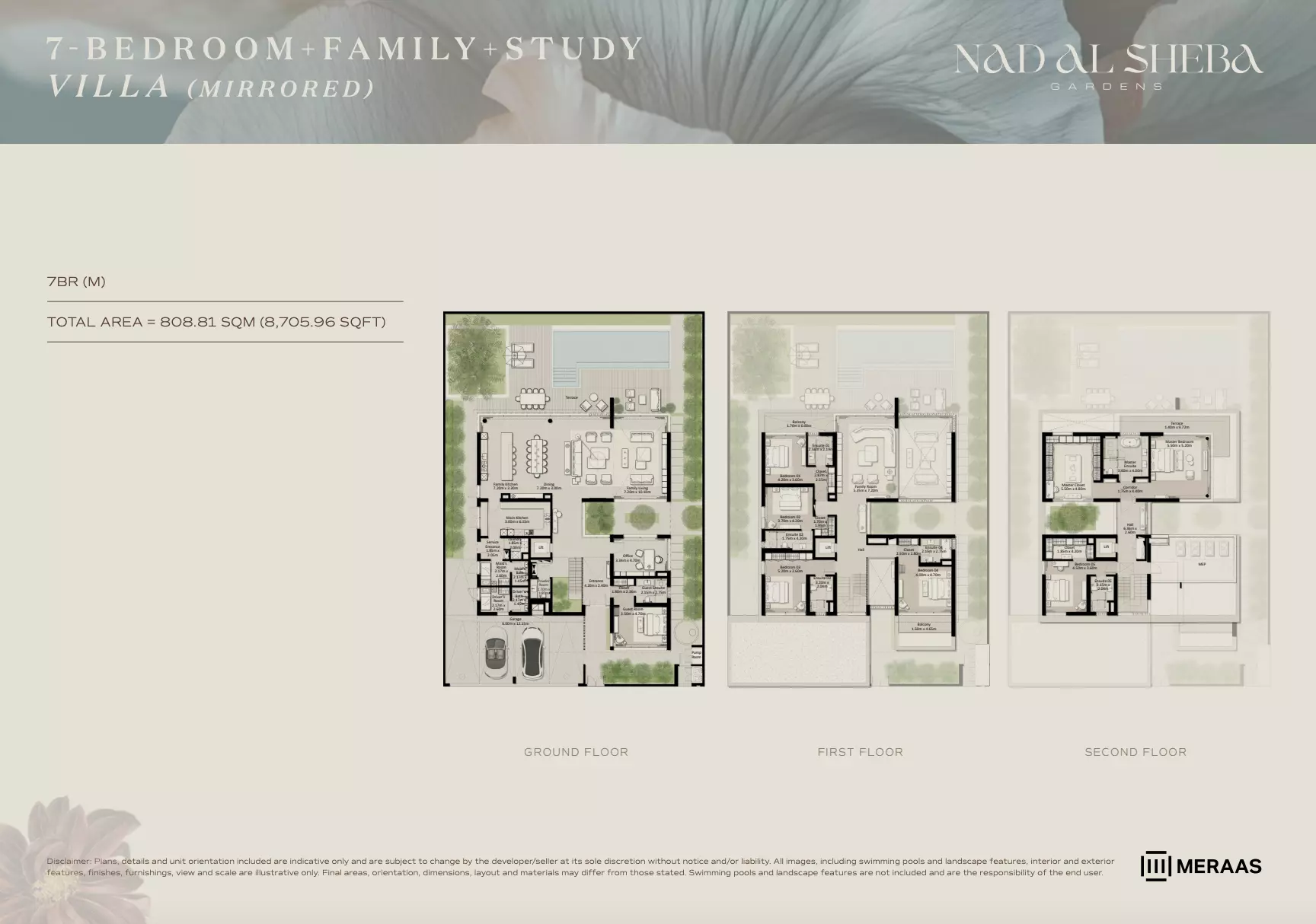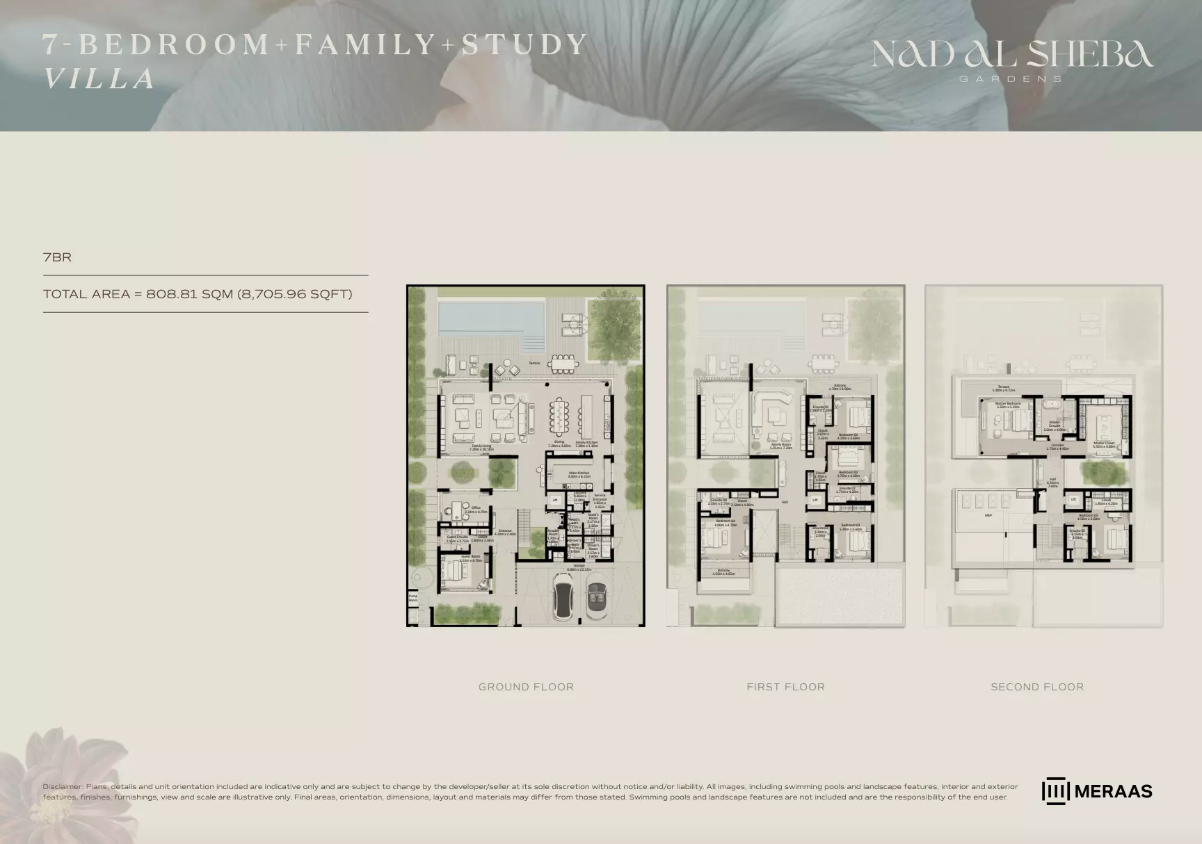Nad Al Sheba Gardens Phase 7 by Meraas offers a variety of housing options, including apartments, townhouses, and villas. Apartments: 3-bedroom units, ranging from 2,705 to 2,705 sqft, with prices starting from 4.4M AED. Townhouses: 3-bedroom units, ranging from 2,705 to 3,291 sqft, priced from 4.4M AED. Villas: 4-bedroom units, sized at 4,795 sqft, starting from 11M AED. 5-bedroom units, sized at 5,650 sqft, starting from 13M AED. 6-bedroom units, sized at 6,872 sqft, starting from 16M AED. 7-bedroom units, sized at 8,705 sqft, starting from 21M AED. For further details or inquiries, please contact the relevant sales team.