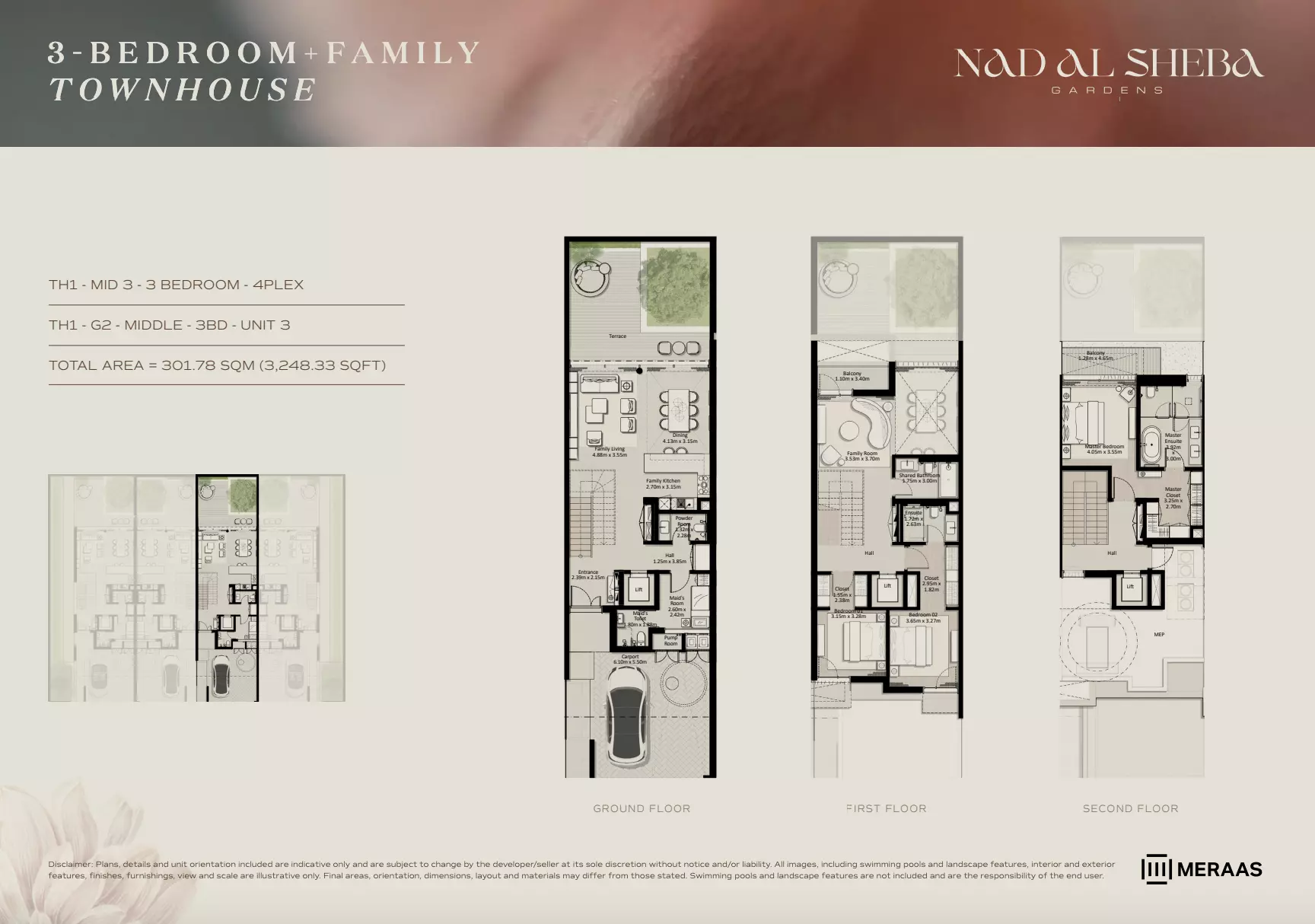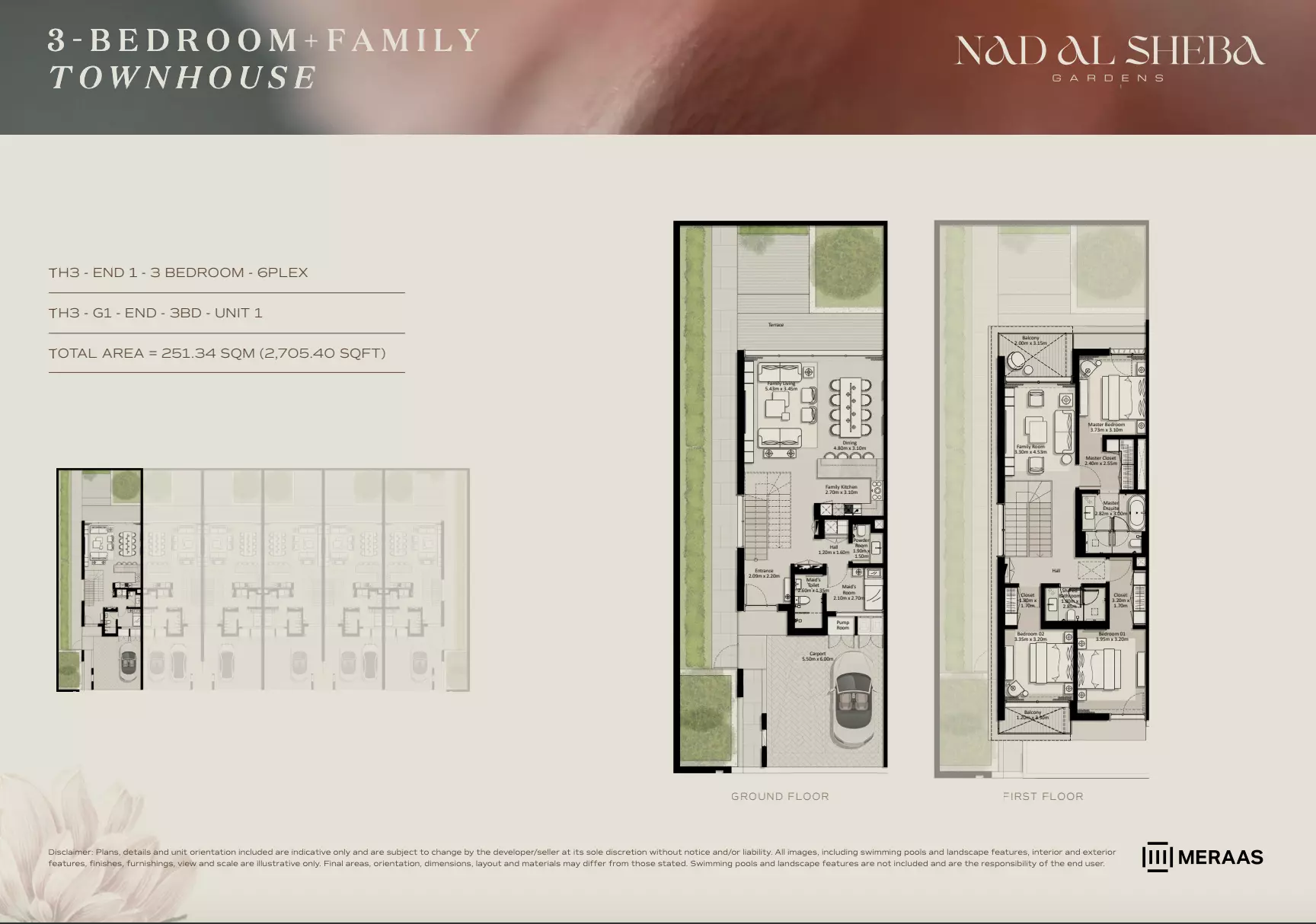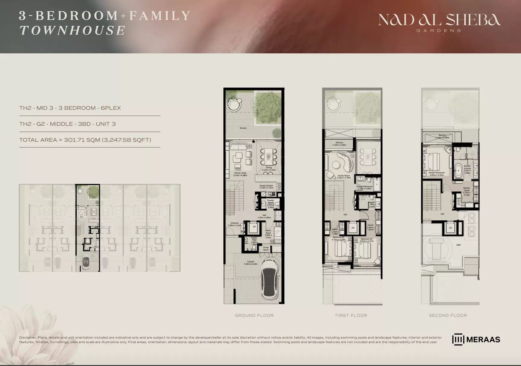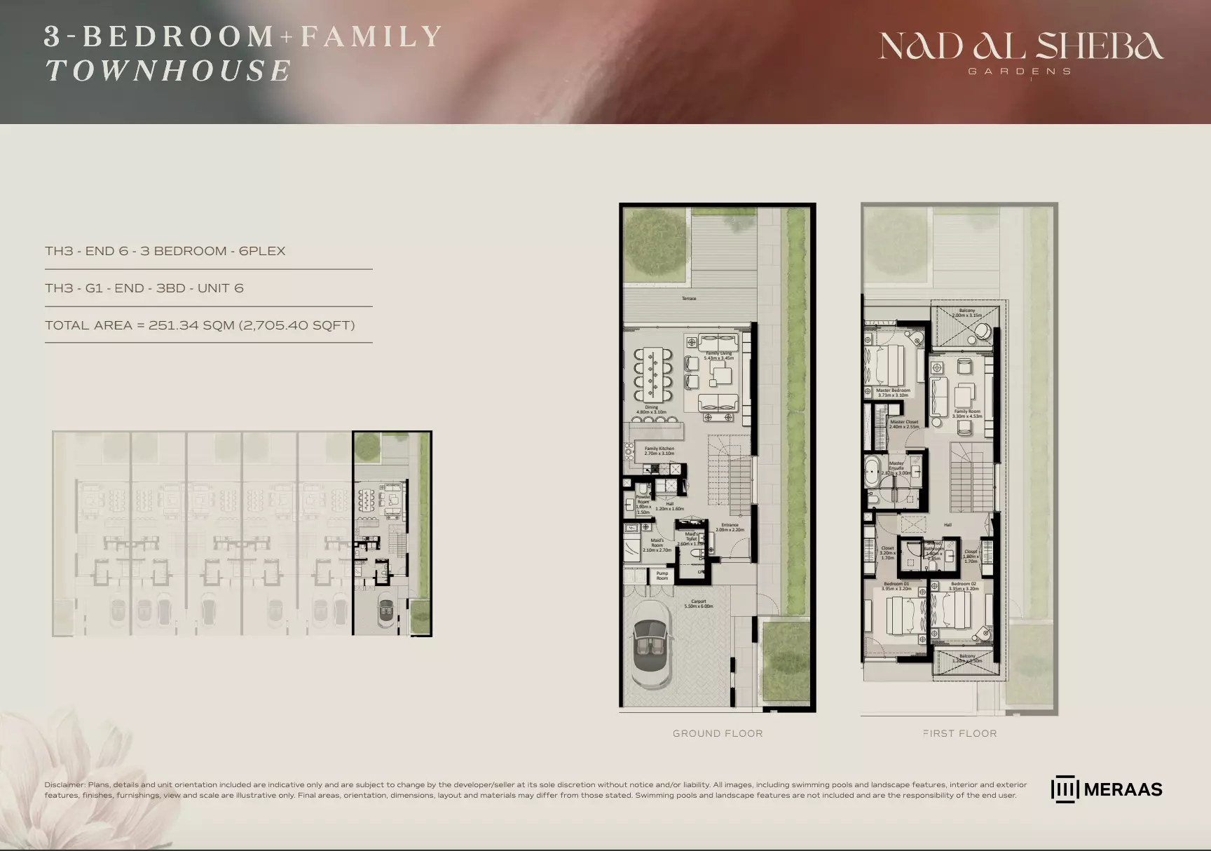Nad Al Sheba Gardens Phase 7 by Meraas offers a variety of housing options, including apartments, townhouses, and villas. Apartments: 3-bedroom units, ranging from 2,705 to 2,705 sqft, with prices starting from 4.4M AED. Townhouses: 3-bedroom units, ranging from 2,705 to 3,291 sqft, priced from 4.4M AED. Villas: 4-bedroom units, sized at 4,795 sqft, starting from 11M AED. 5-bedroom units, sized at 5,650 sqft, starting from 13M AED. 6-bedroom units, sized at 6,872 sqft, starting from 16M AED. 7-bedroom units, sized at 8,705 sqft, starting from 21M AED. For further details or inquiries, please contact the relevant sales team.