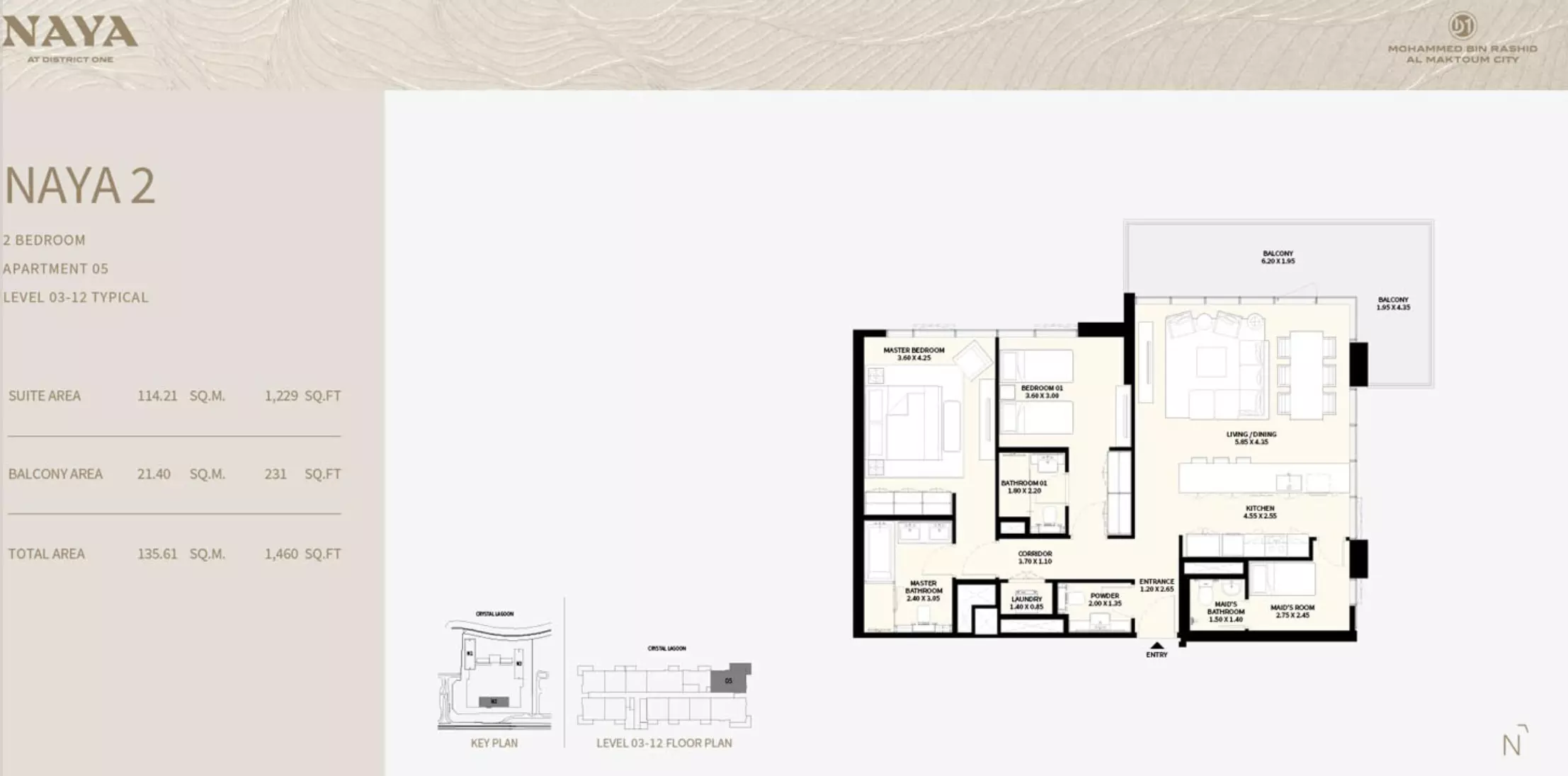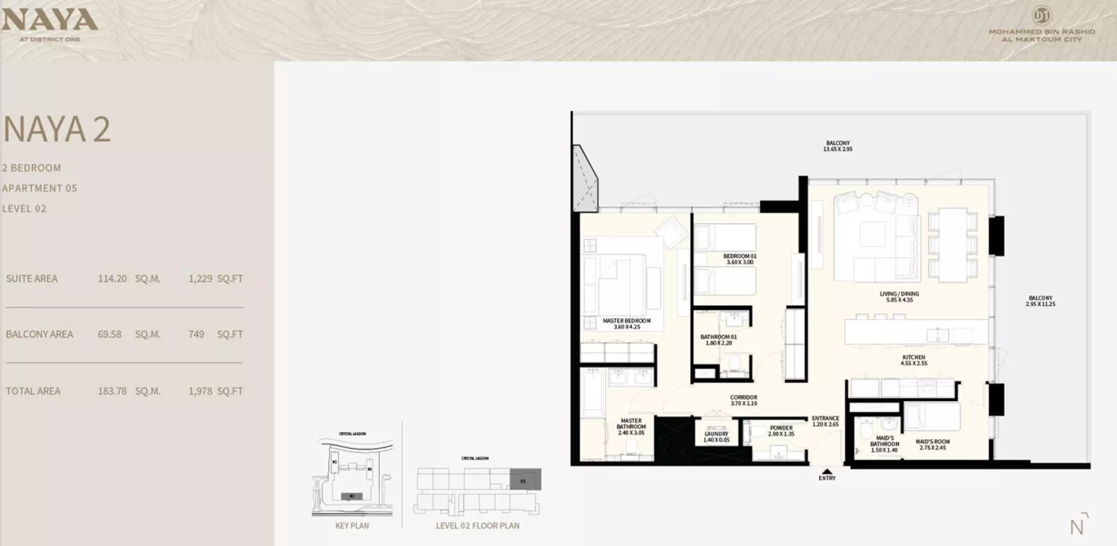 Naya Phase 2 by Nakheel is a strong investment due to its prime location in Mohammed Bin Rashid City (MBR City), offering easy access to Dubai's top landmarks, creating a serene living environment. With amenities like swimming pools, a state-of-the-art gym, wellness-focused spaces, and beachfront living, Naya Phase 2 caters to a modern, active lifestyle. The project’s strategic location, quality design, and strong potential for property value appreciation make it an attractive option for investors seeking both luxury and long-term returns.