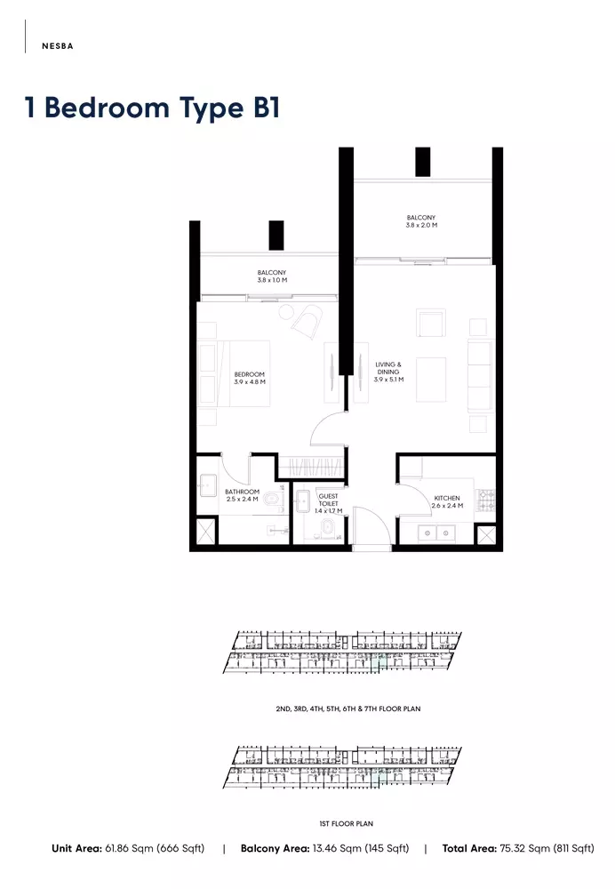 The Nesba 3 project offers a clear and structured payment plan designed for potential buyers. Here’s how it works: 5% Down Payment: This initial payment is required at the sales launch to secure your unit in the Nesba 3 project. 40% During Construction: This payment is due while the construction of the project is ongoing. Specific timelines for this payment will be provided to keep you informed. 55% On Handover: The final payment is made upon the completion and handover of your unit, when you officially take possession.