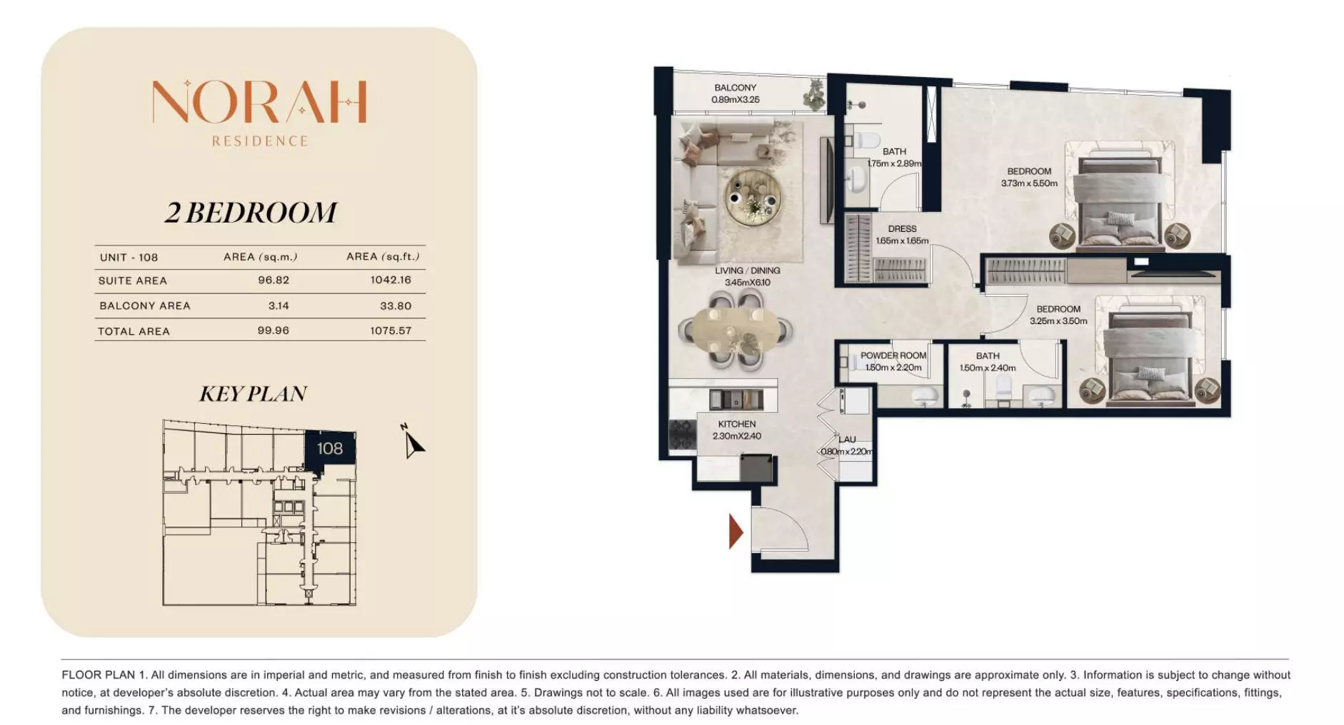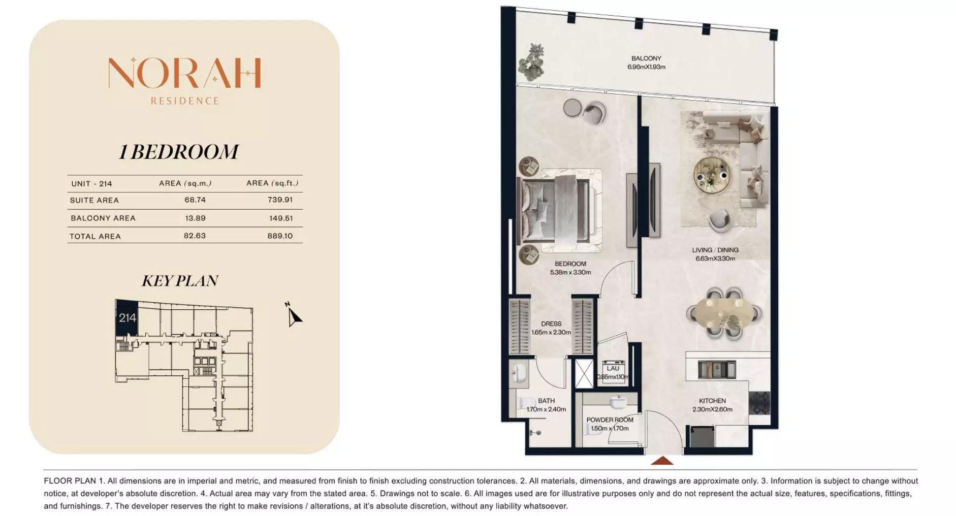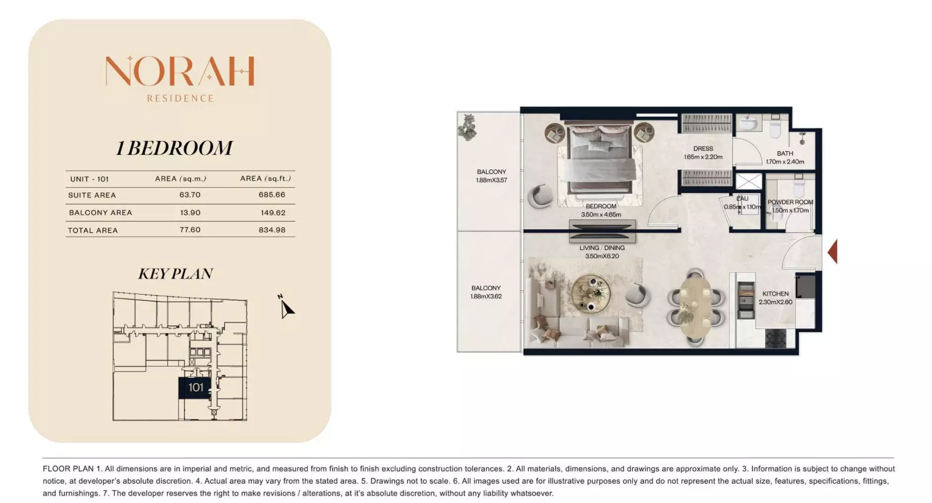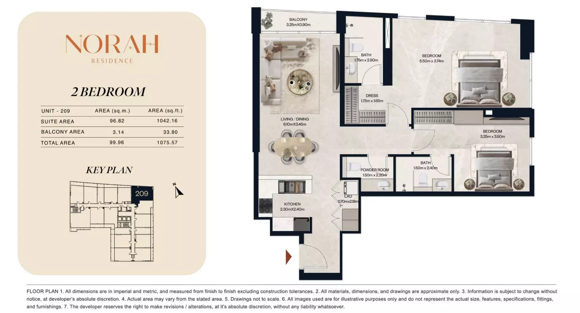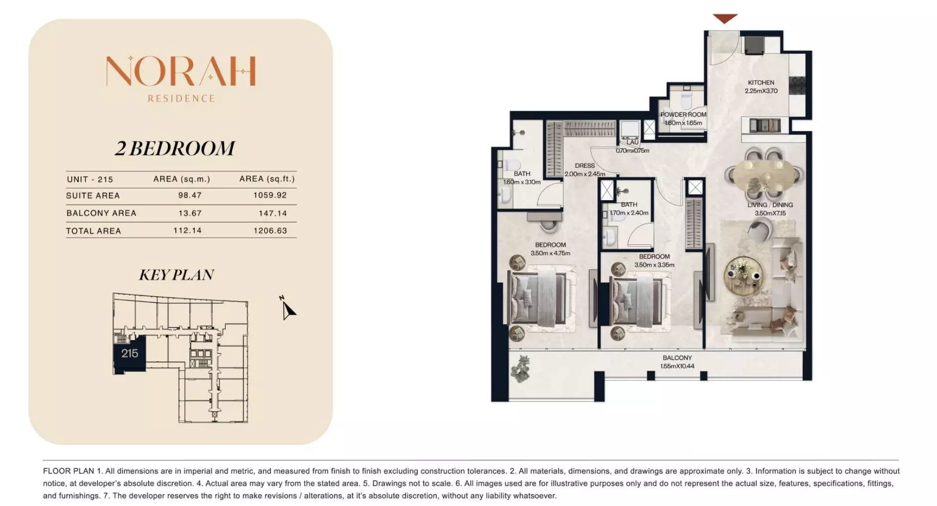 Norah Residence provides a wide range of apartments and duplexes with layouts designed to accommodate different household requirements. The project includes studios starting from AED 650,000, with sizes between 382 and 411 sq. ft., suitable for compact living. One-bedroom apartments are available from AED 1.1 million, offering spaces from 718 to 889 sq. ft. For larger options, two-bedroom apartments are priced from AED 1.8 million, with unit sizes ranging from 1,075 to 1,251 sq. ft. The development also offers two-bedroom duplex units starting at AED 2.2 million, with areas from 1,436 to 1,674 sq. ft. For families seeking even more space, three-bedroom apartments are available from AED 3 million, with expansive layouts ranging from 2,032 to 2,731 sq. ft. This selection ensures flexibility for buyers across various budget and space preferences.