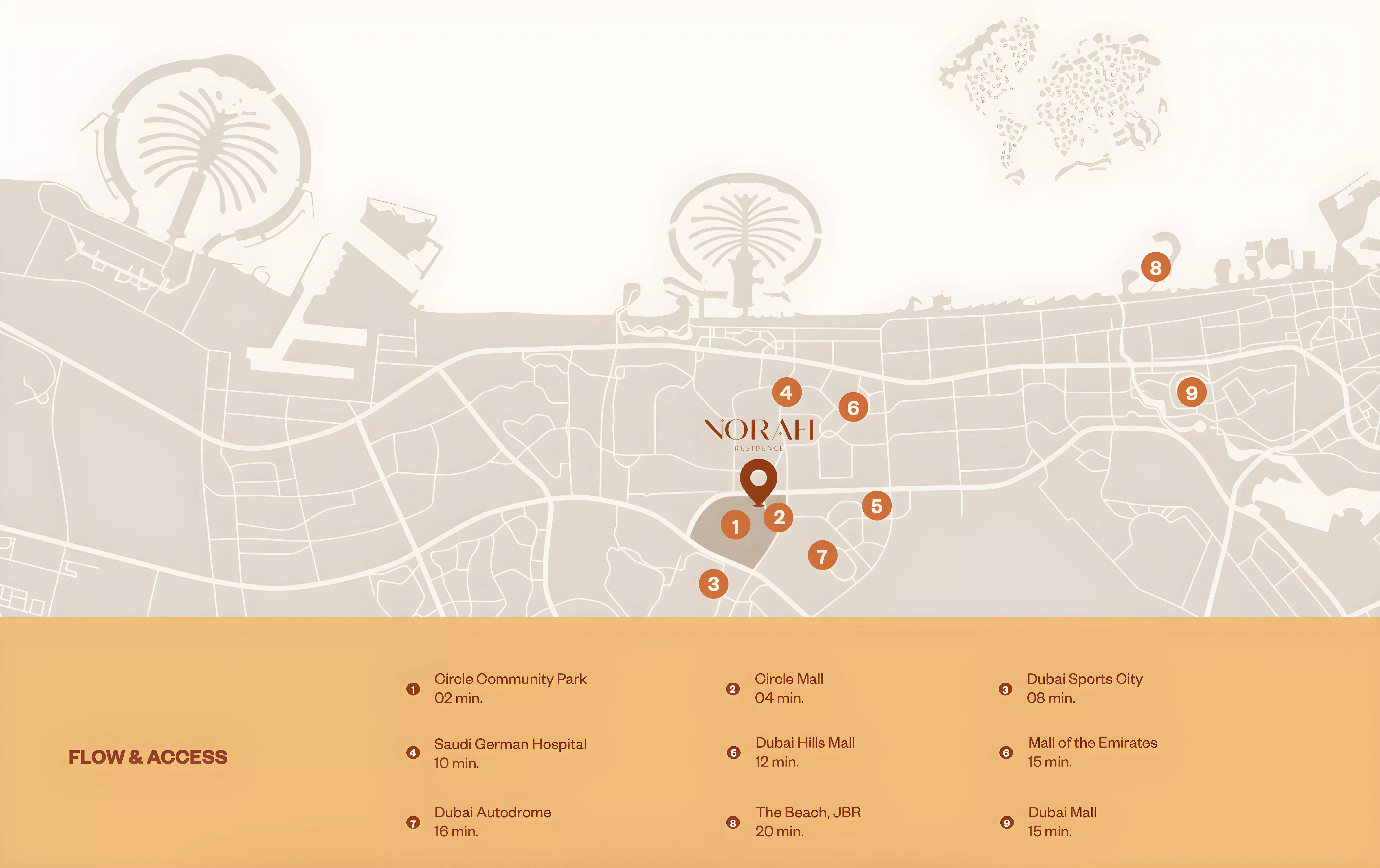 Norah Residence is located in Dubai, within the Jumeirah Village Circle community, offering residents convenient access to key city destinations.