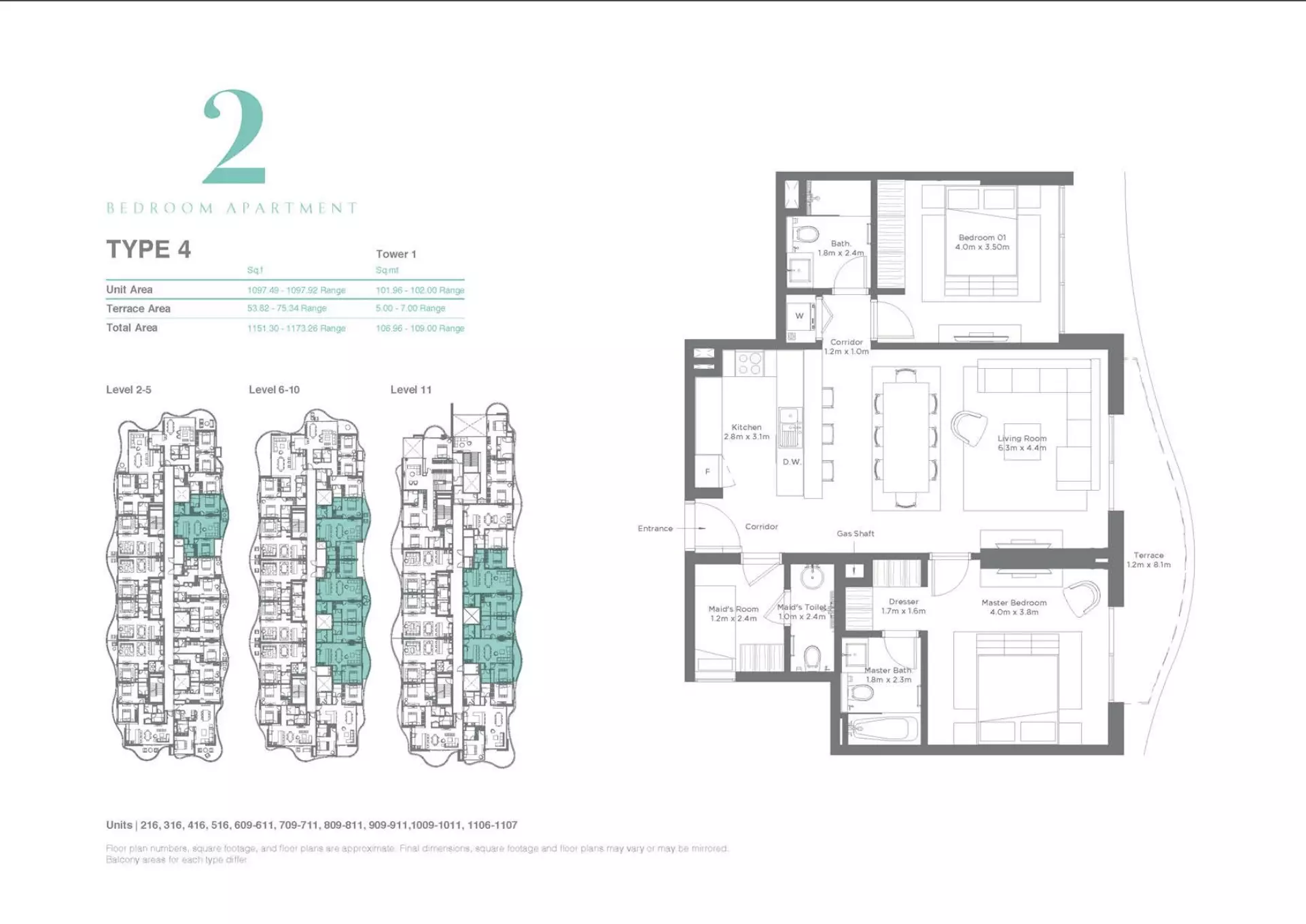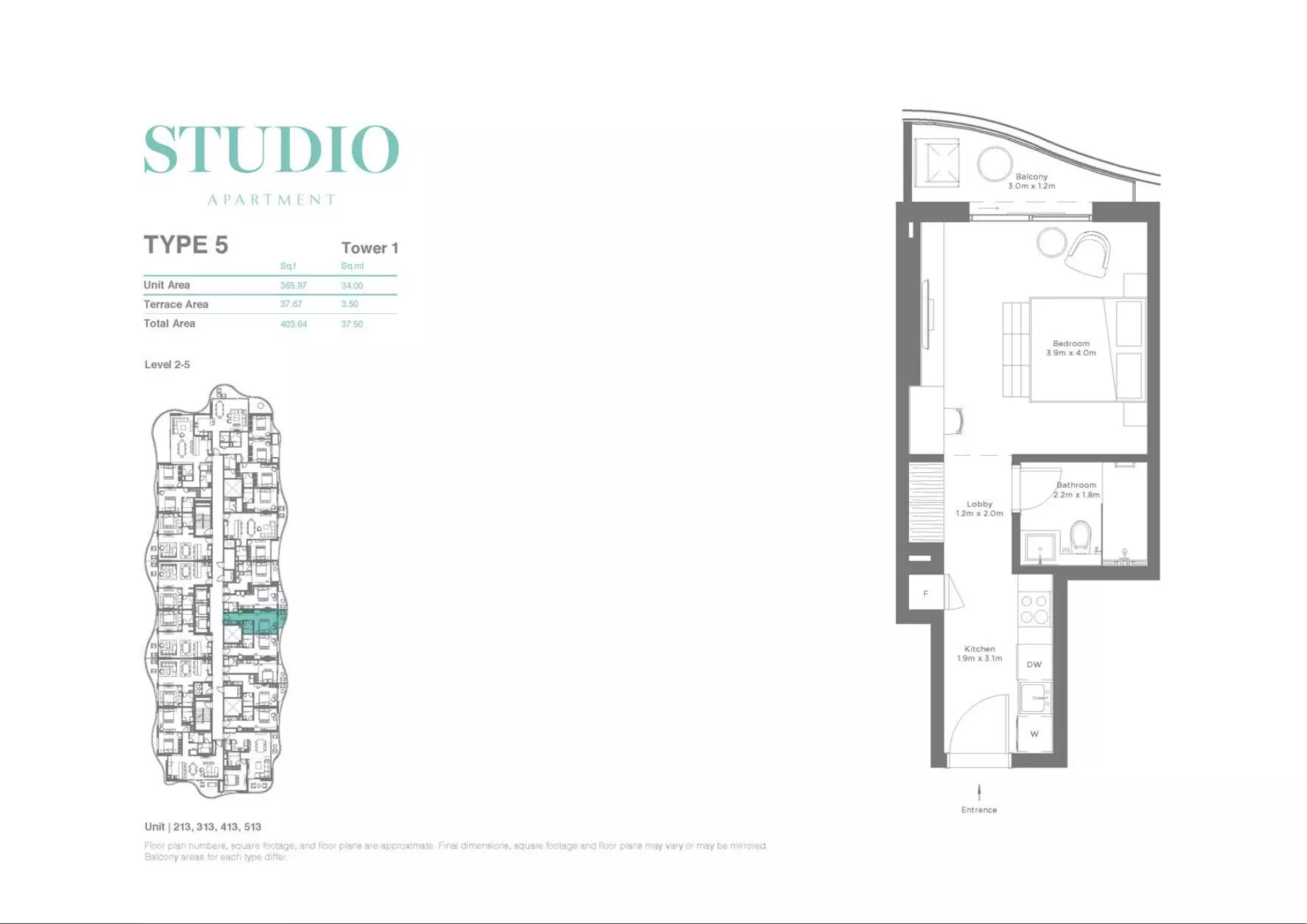| Type 6 Tower 1 Level 2-5 | 414.00 | View |