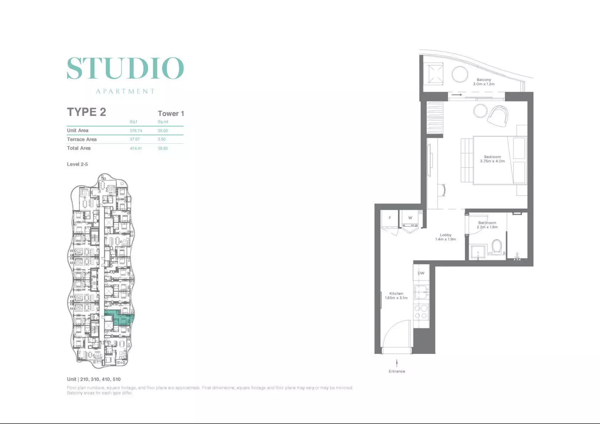 | Type 2 Tower 1 Level 2-5 | 414.00 | View |