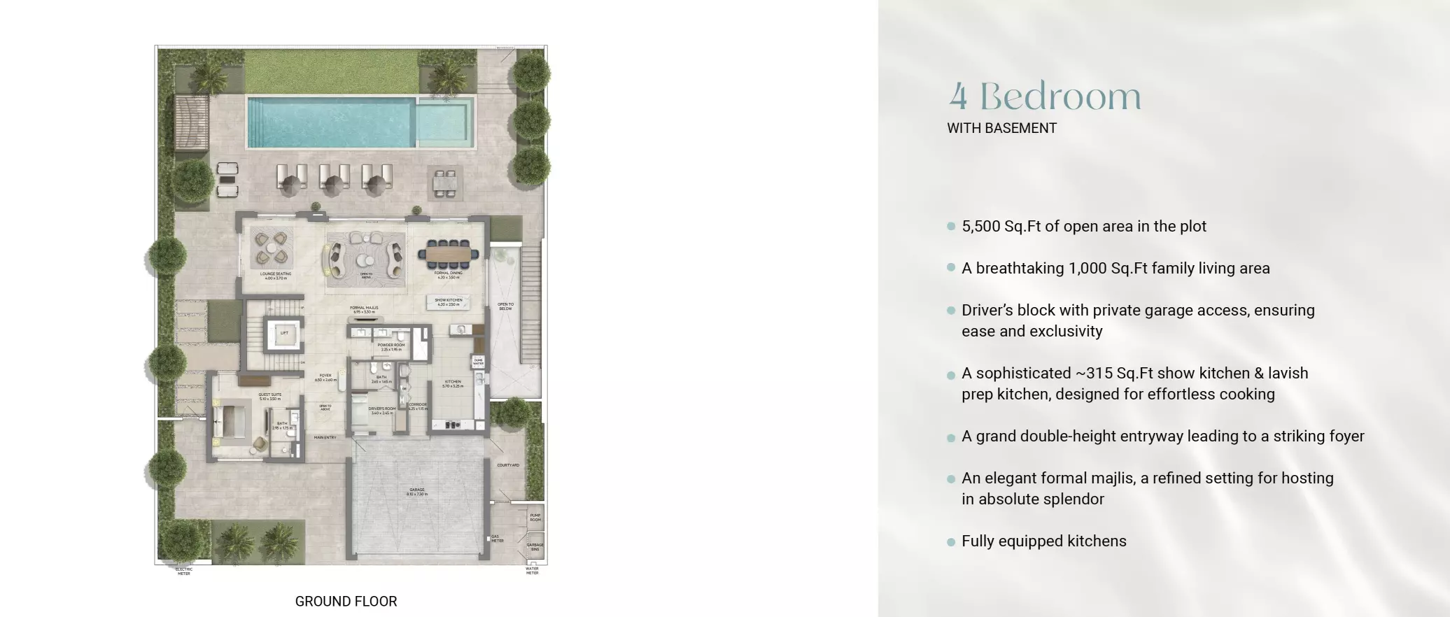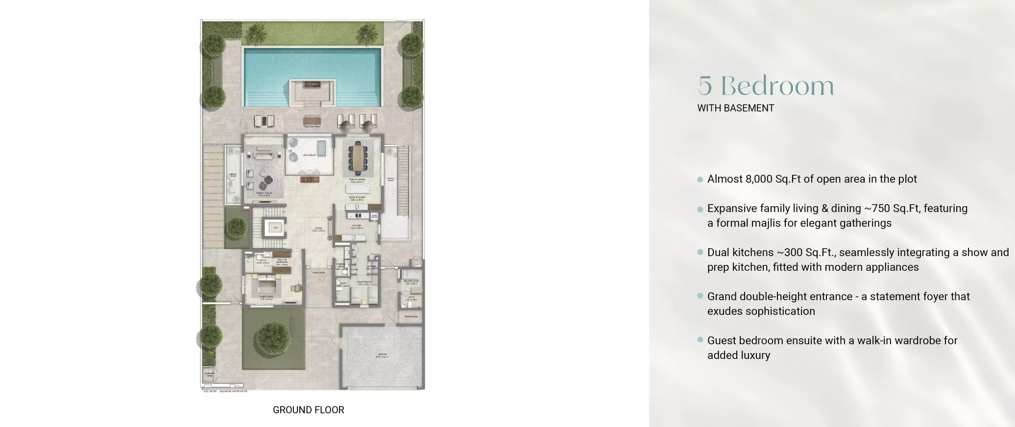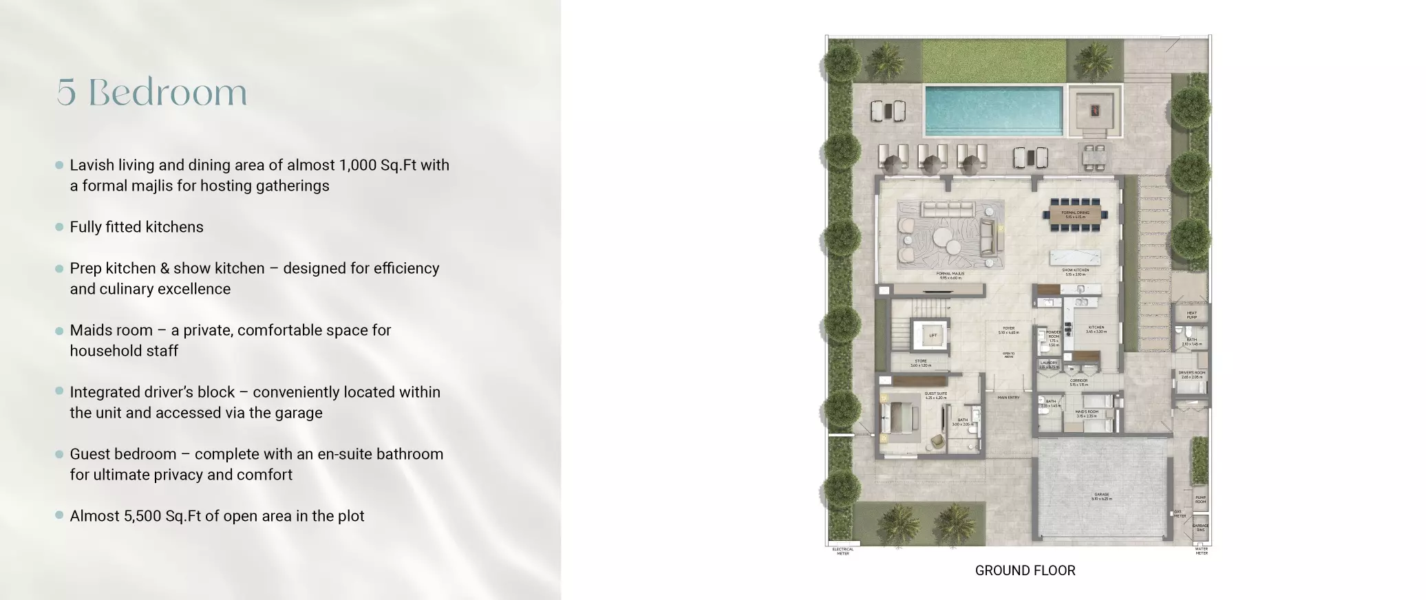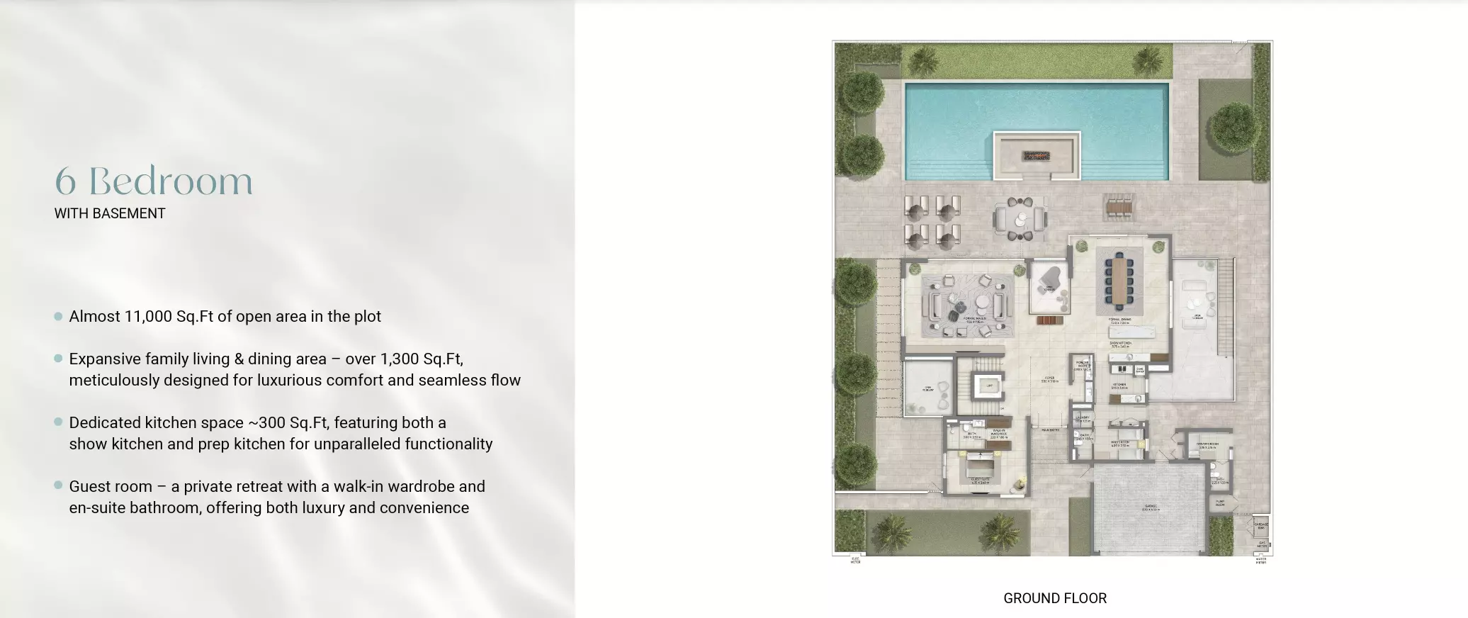The development offers a variety of unit types to cater to diverse lifestyle preferences, including: 4-Bedroom Villas: Sizes starting from 9,170 sqft. 5-Bedroom Villas: Sizes ranging from 9,700 to 12,000 sqft. 6-Bedroom Villas: Sizes starting from 16,000 sqft.