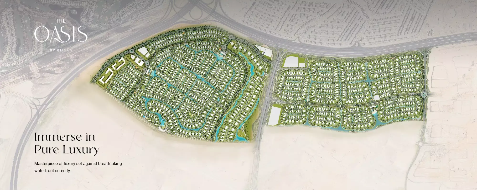 Oasis Address Branded Villas is situated within The Oasis by Emaar in Dubai, offering residents a tranquil environment with direct access to swimmable lagoons and white sand beaches. The development ensures a serene yet well-connected lifestyle, with proximity to major landmarks and urban centers.