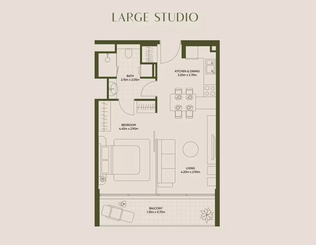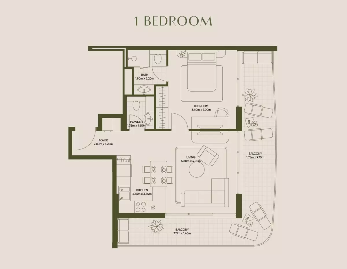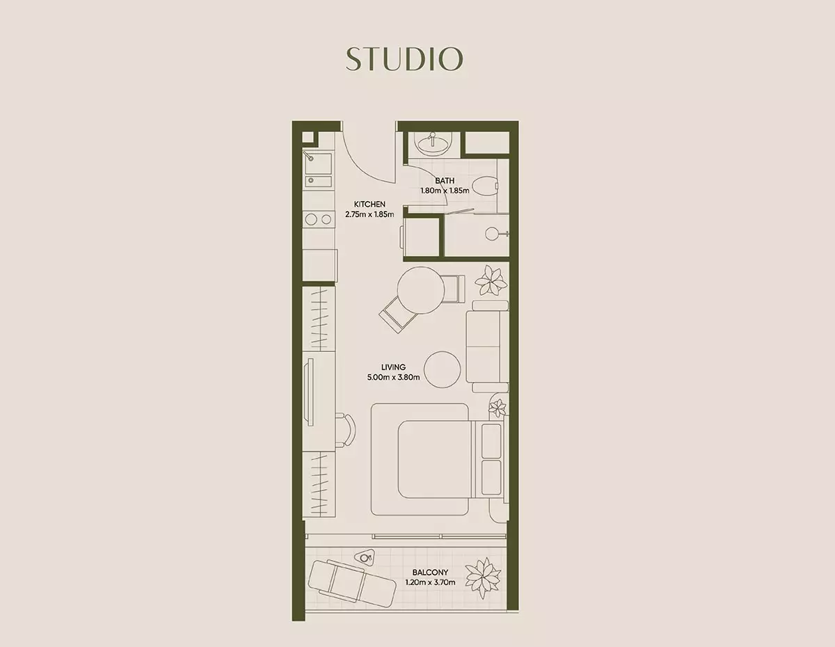 Olivia Gardens Residence offers a range of apartment options with varying sizes and prices: • Studio apartments start at 824,000 AED, with a size of 377 sqft. • Studio large apartment start at 1.2 million AED, with size 568 aqft. • 1-bedroom apartments start at 1.6 million AED, with a size of 726 sqft. • 2-bedroom apartments start at 2.4 million AED, with a size of 1,036 sqft. These units provide modern living spaces with contemporary designs, catering to different preferences and budgets, making them ideal for a wide range of buyers and investors.