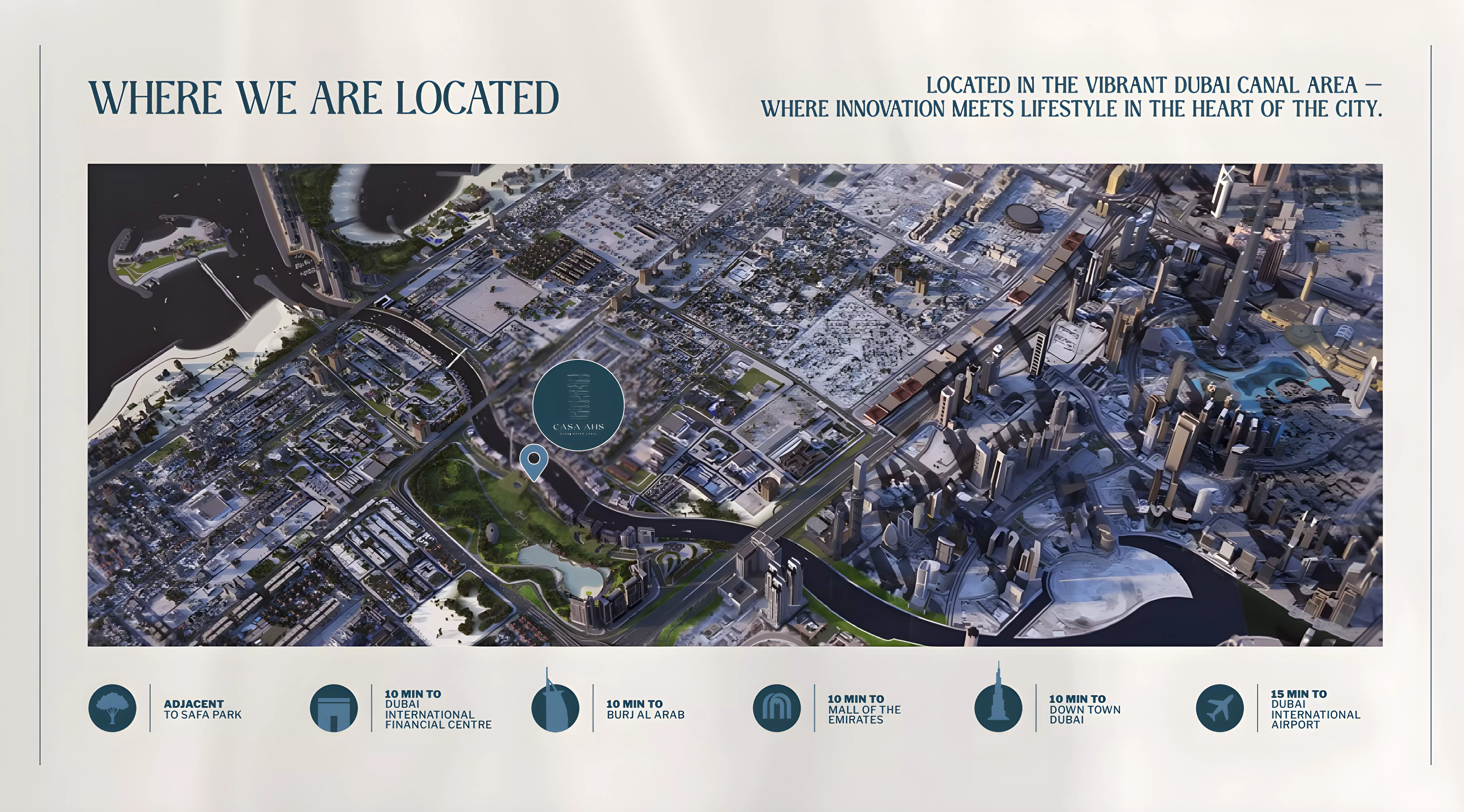 Casa Ahs is located in Dubai, Jumeirah, One Casa, offering direct access to prime destinations and luxury lifestyle conveniences.