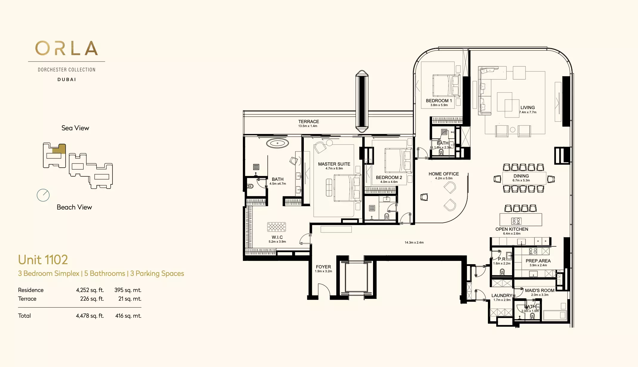 Orla by Omniyat is developed by Omniyat Group, a leading luxury real estate developer known for creating high-end residences with exceptional design and craftsmanship.