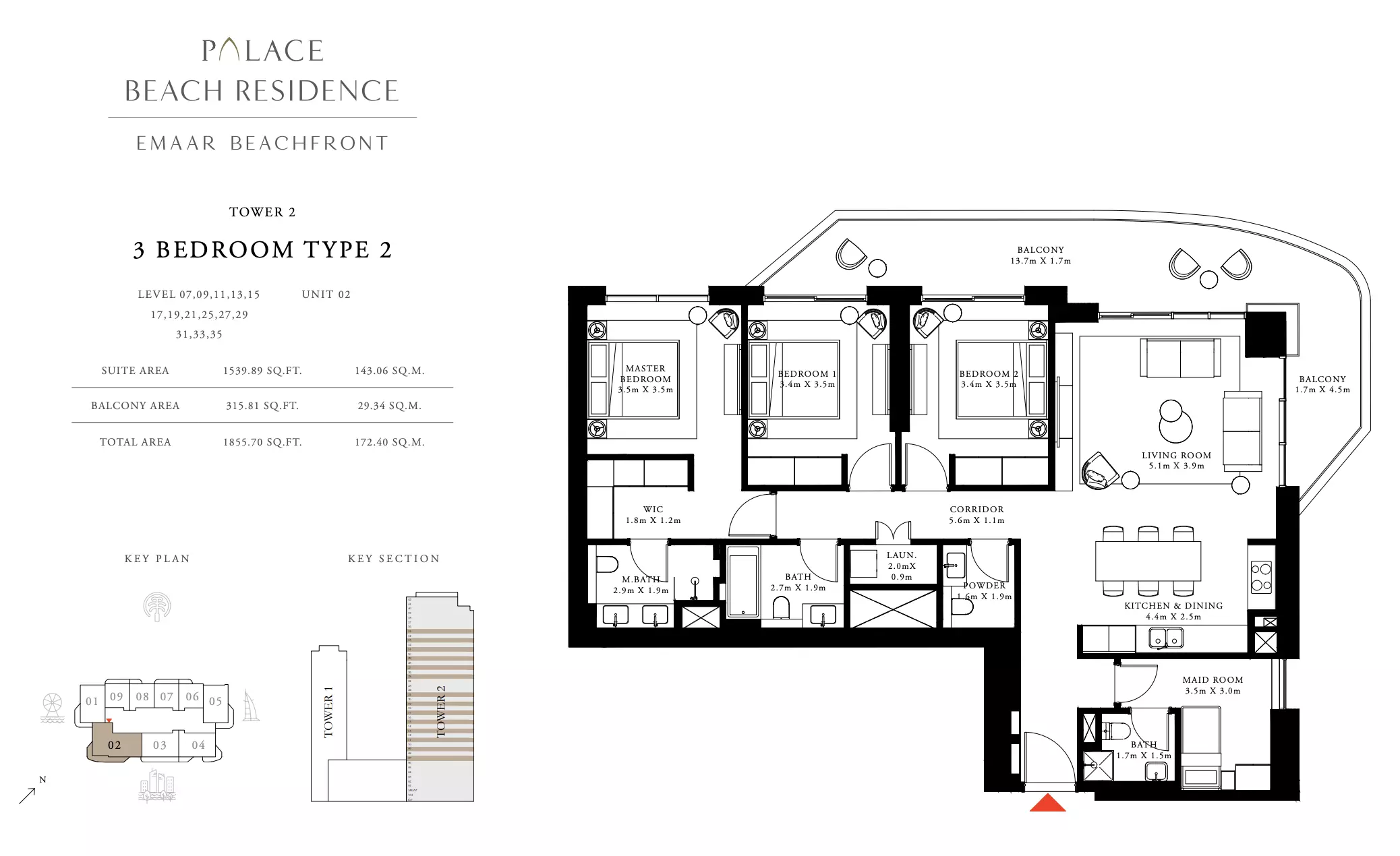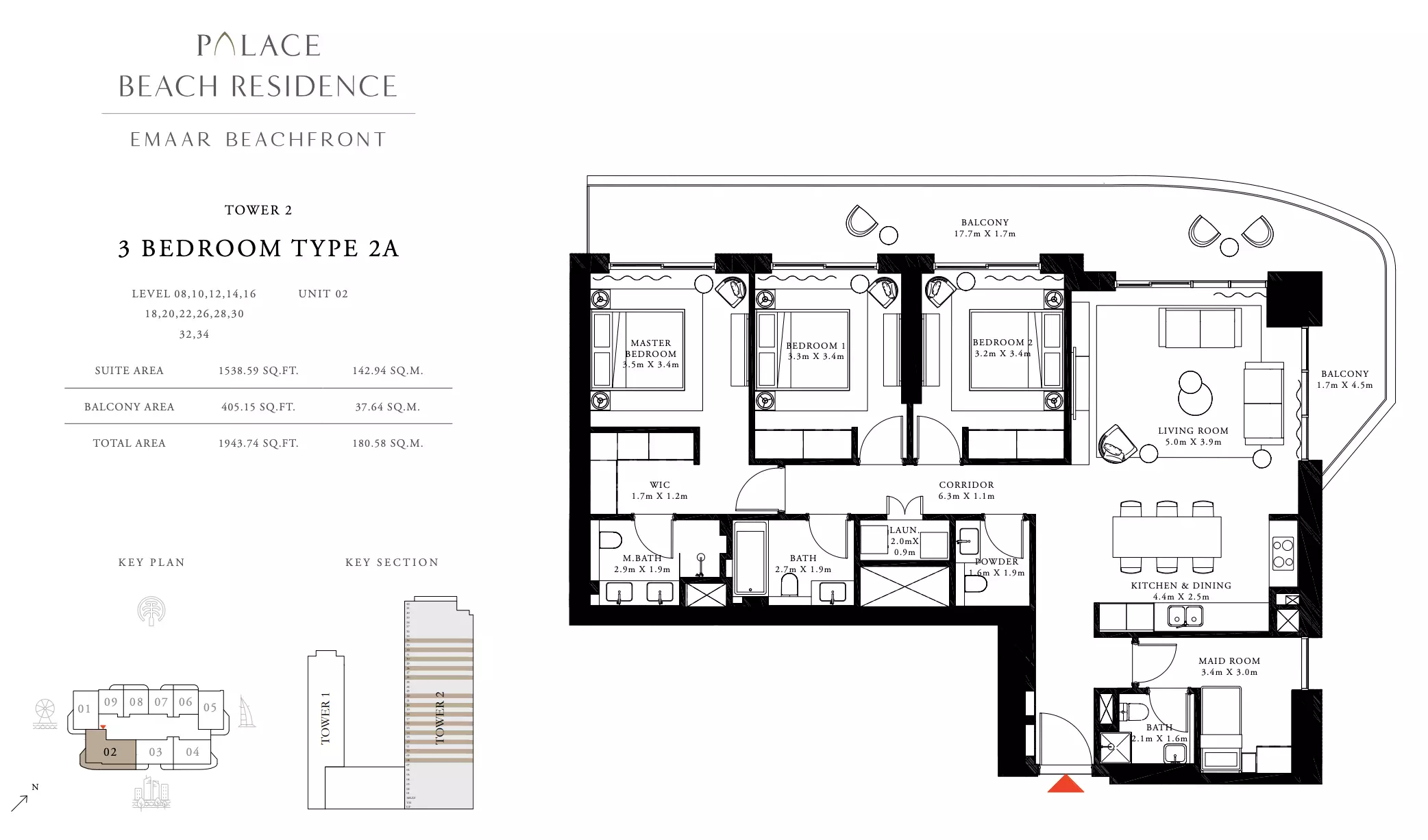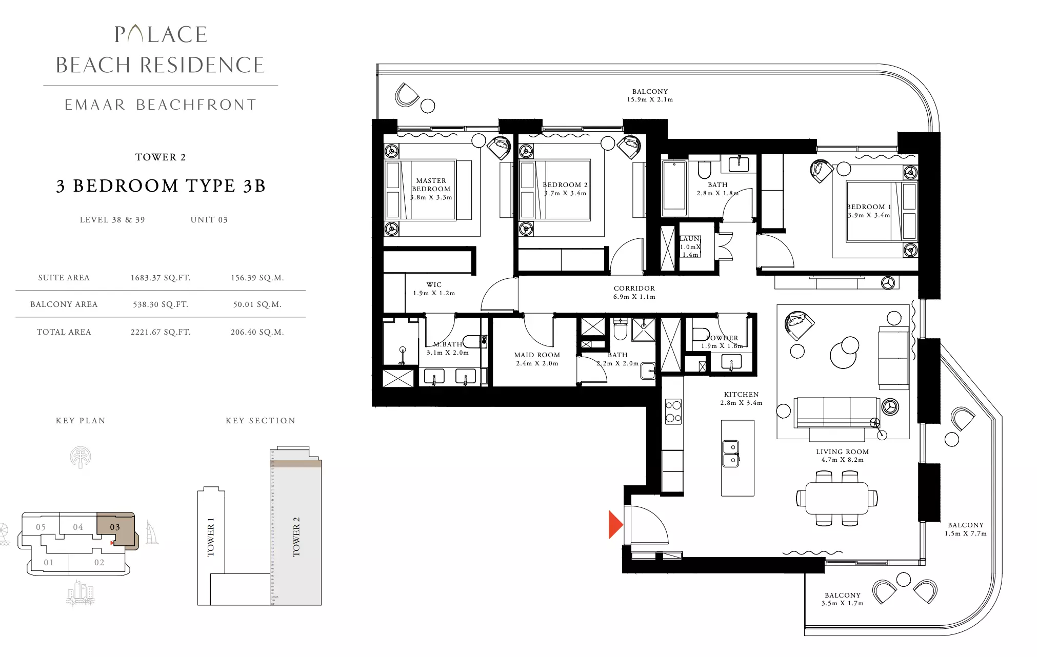 Palace Beach Residence is developed by Emaar Properties, a globally renowned developer known for delivering high-quality residential and commercial projects in Dubai.