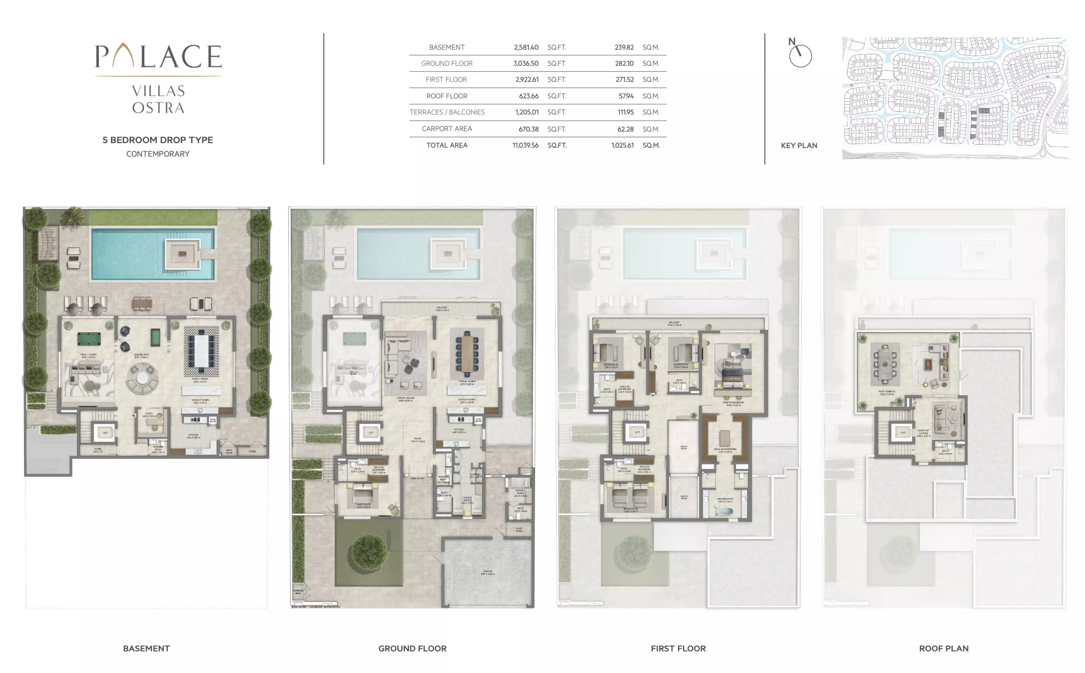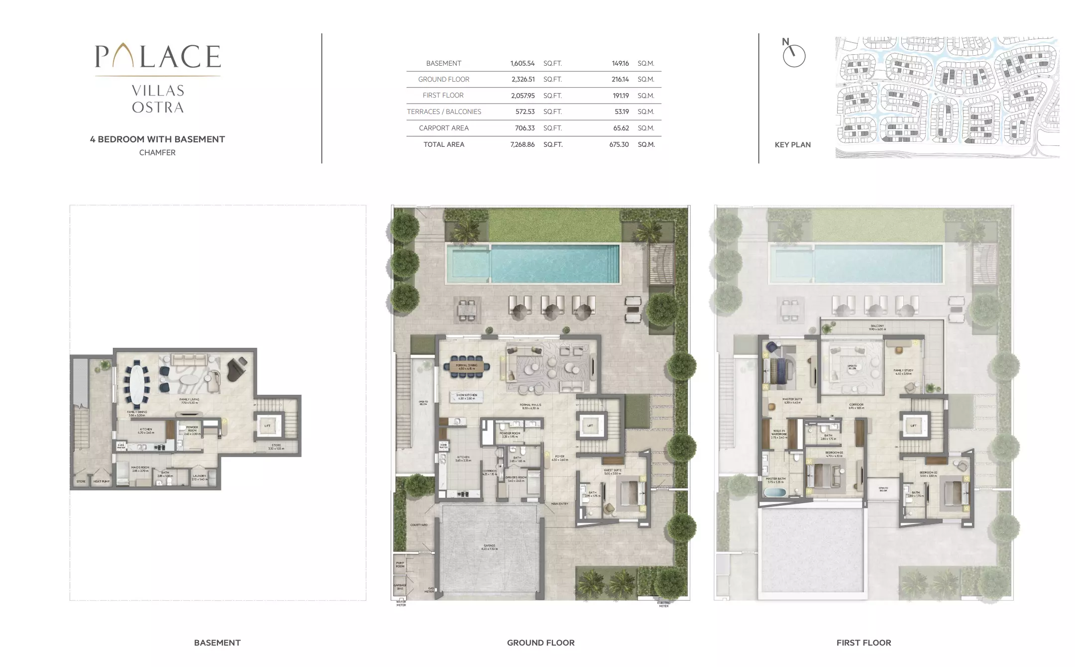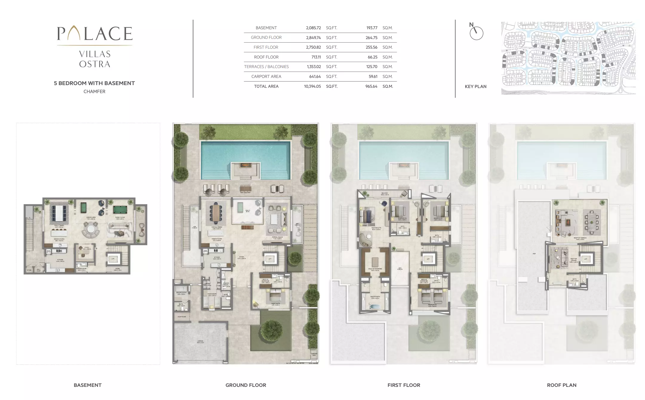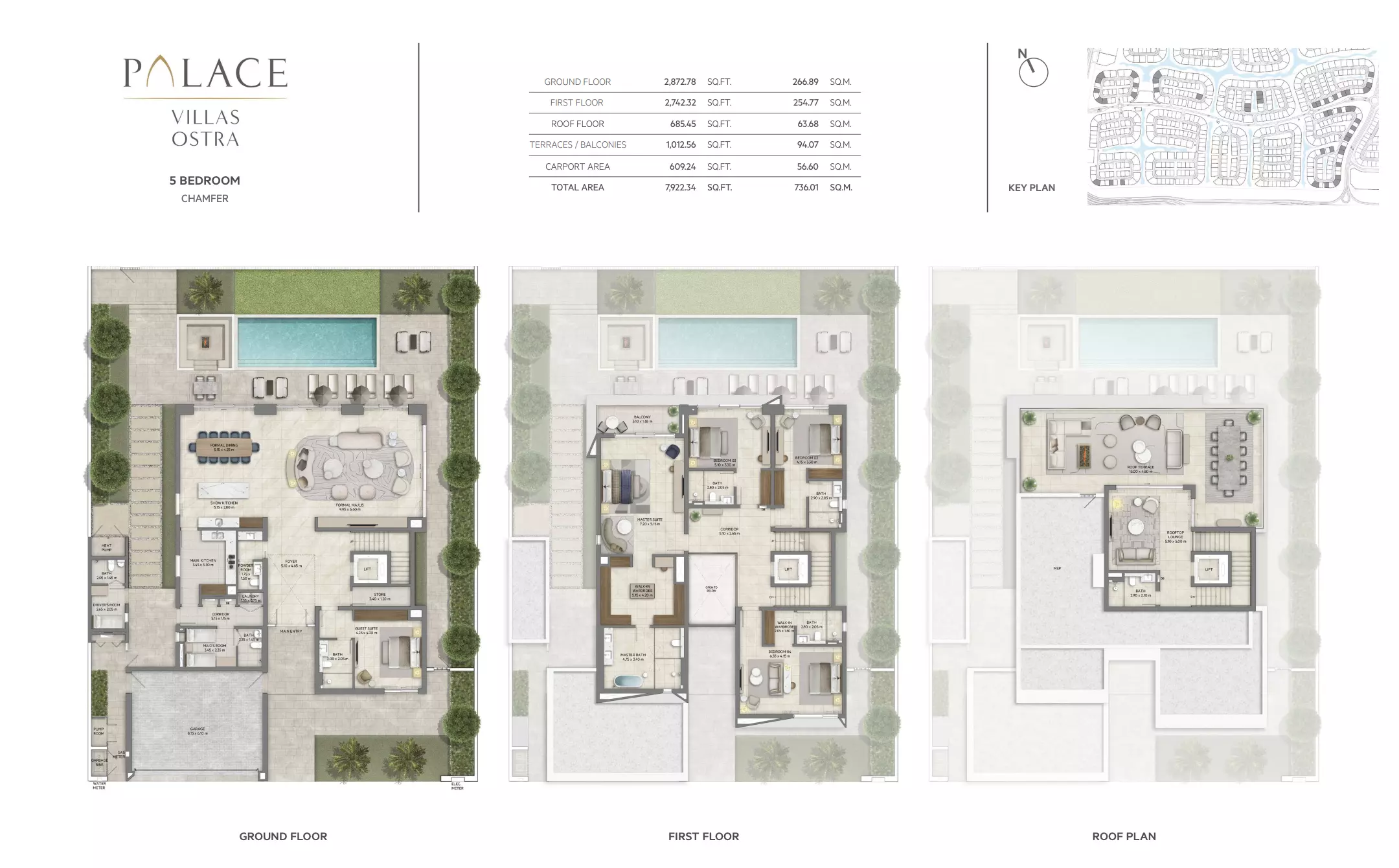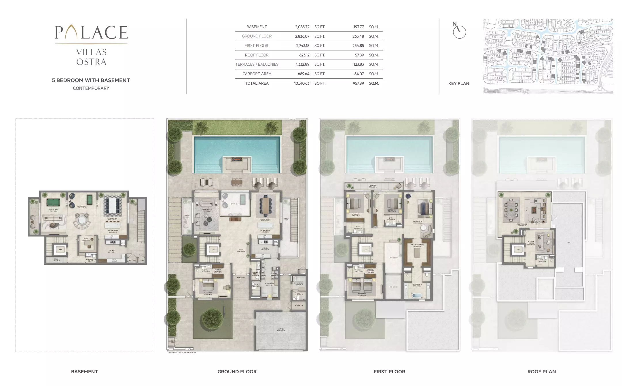 Palace Villas Ostra offers a premium selection of luxury villas designed to meet the needs of high-end buyers seeking space, comfort, and exclusivity. The development includes 4, 5, and 6-bedroom villas, each set on expansive plots with refined architectural finishes. • 4-Bedroom Villas start from AED 13,000,000, with sizes ranging between 7,268 to 7,301 sq ft. • 5-Bedroom Villas are priced from AED 15,000,000, offering living spaces between 7,922 to 11,181 sq ft. • 6-Bedroom Villas begin at AED 24,000,000, with unit sizes from 12,777 to 12,958 sq ft. All villas are designed to deliver seamless indoor-outdoor living, featuring private gardens, pools, and high-end interiors that reflect modern luxury.