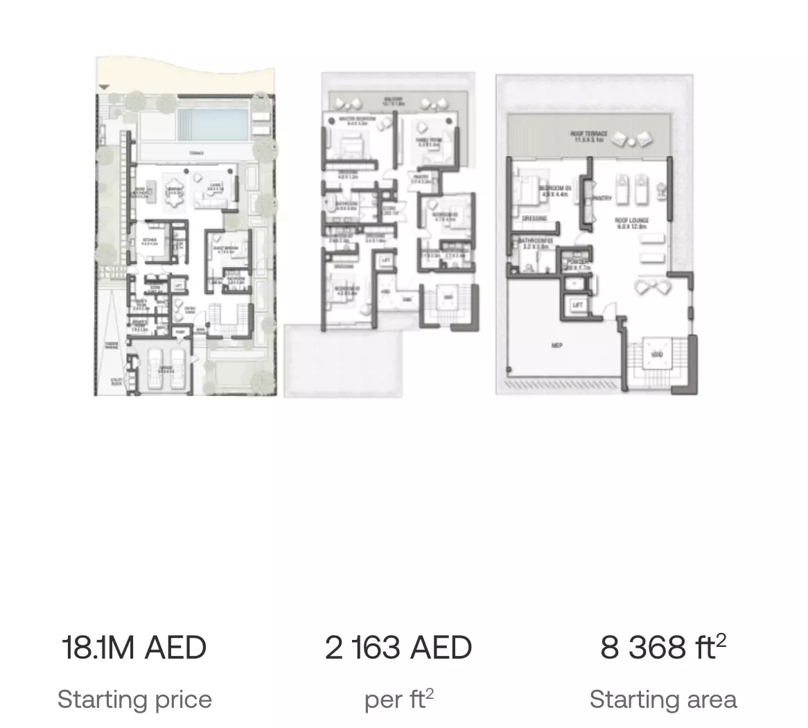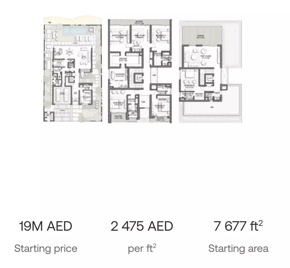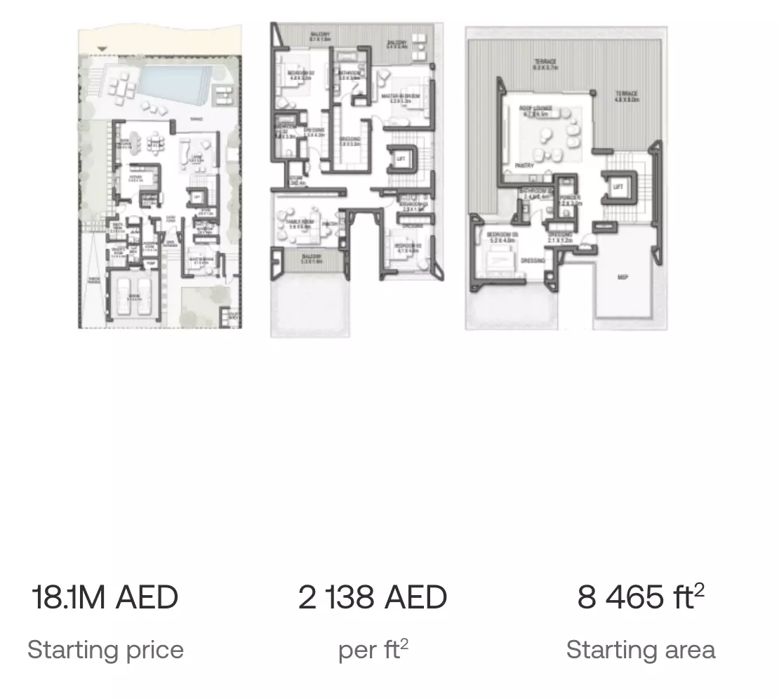 Palm Jebel Ali Frond C offers both apartments and villas in luxurious settings: • 5 Bedroom Apartments: Ranging from 8,205 sqft, with prices starting from 18M AED • 5 Bedroom Villas: Ranging from 7,940 to 8,465 sqft, with prices starting from 18M AED • 6 Bedroom Villas: Ranging from 7,677 to 8,315 sqft, with prices starting from 19M AED These homes are designed for those seeking high-end living with spacious layouts. The apartments and villas are perfect for large families, offering plenty of room for living, entertaining, and relaxation. The prices reflect the premium location and luxurious offerings, making Palm Jebel Ali Frond C an exclusive address.