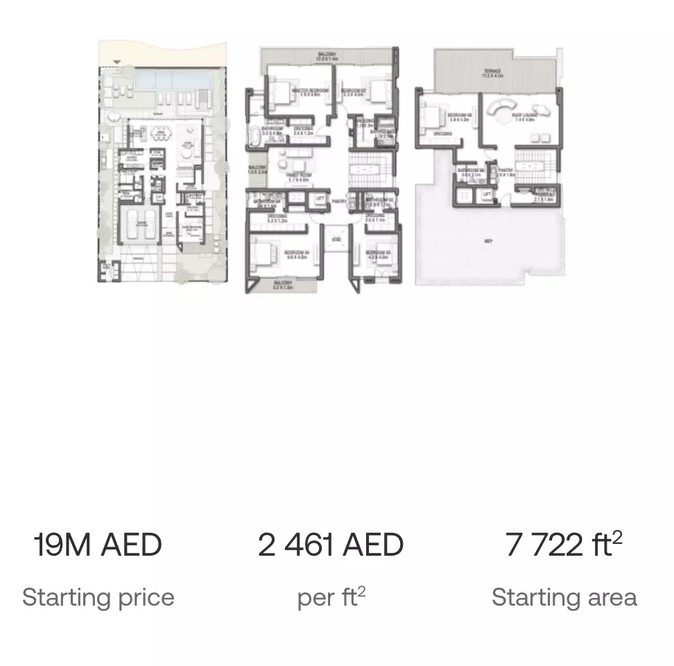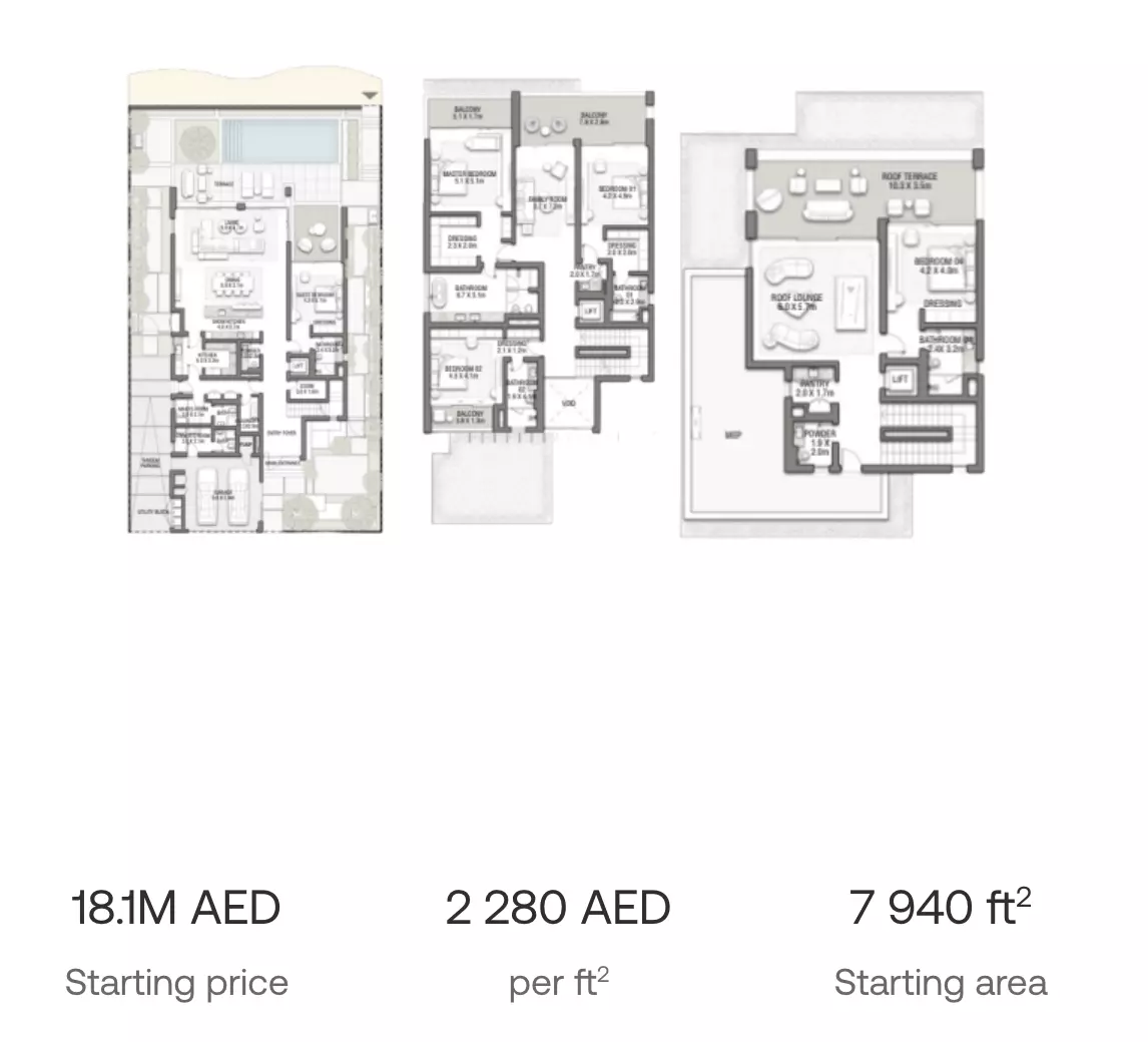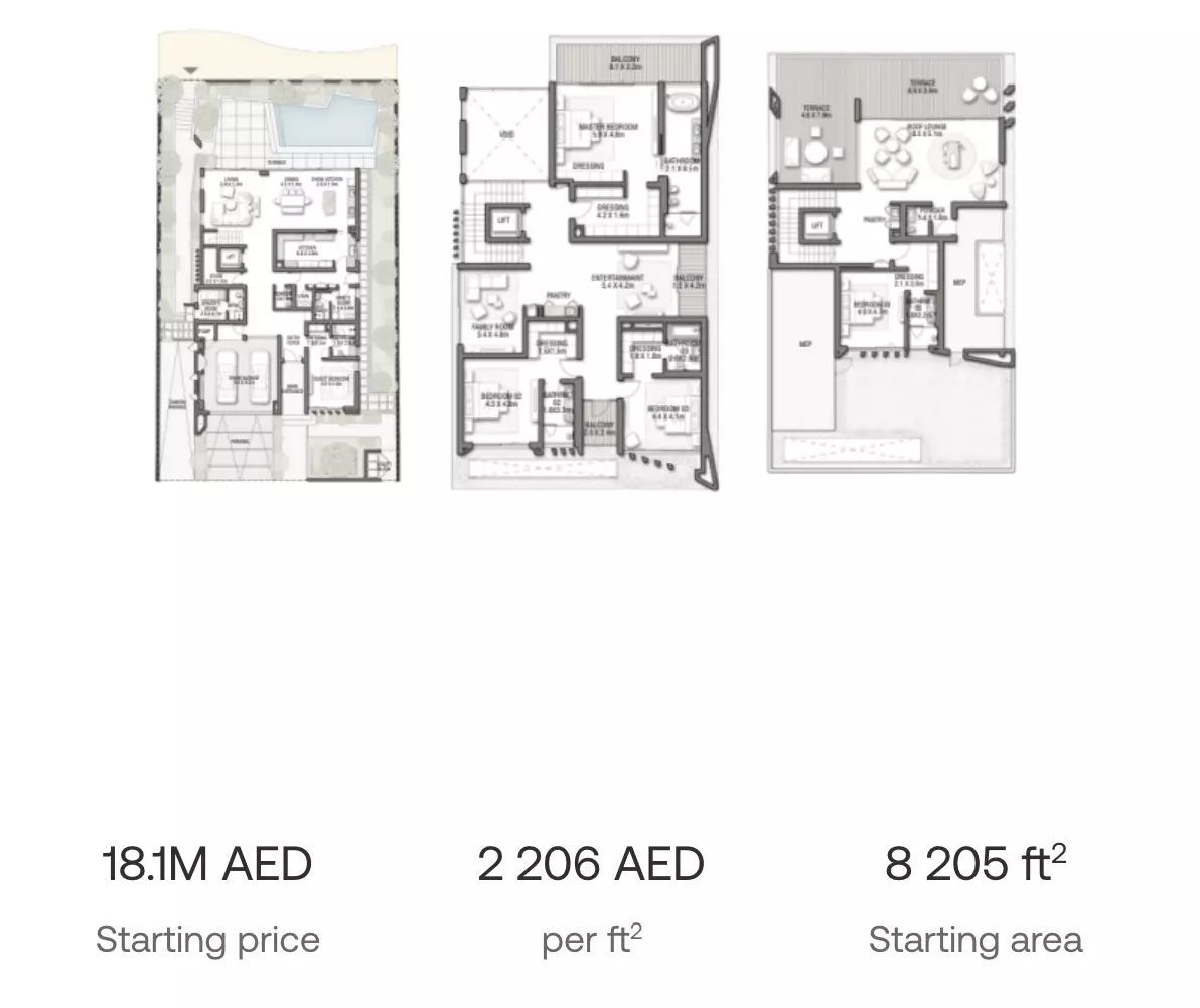 Palm Jebel Ali Frond C offers both apartments and villas in luxurious settings: • 5 Bedroom Apartments: Ranging from 8,205 sqft, with prices starting from 18M AED • 5 Bedroom Villas: Ranging from 7,940 to 8,465 sqft, with prices starting from 18M AED • 6 Bedroom Villas: Ranging from 7,677 to 8,315 sqft, with prices starting from 19M AED These homes are designed for those seeking high-end living with spacious layouts. The apartments and villas are perfect for large families, offering plenty of room for living, entertaining, and relaxation. The prices reflect the premium location and luxurious offerings, making Palm Jebel Ali Frond C an exclusive address.