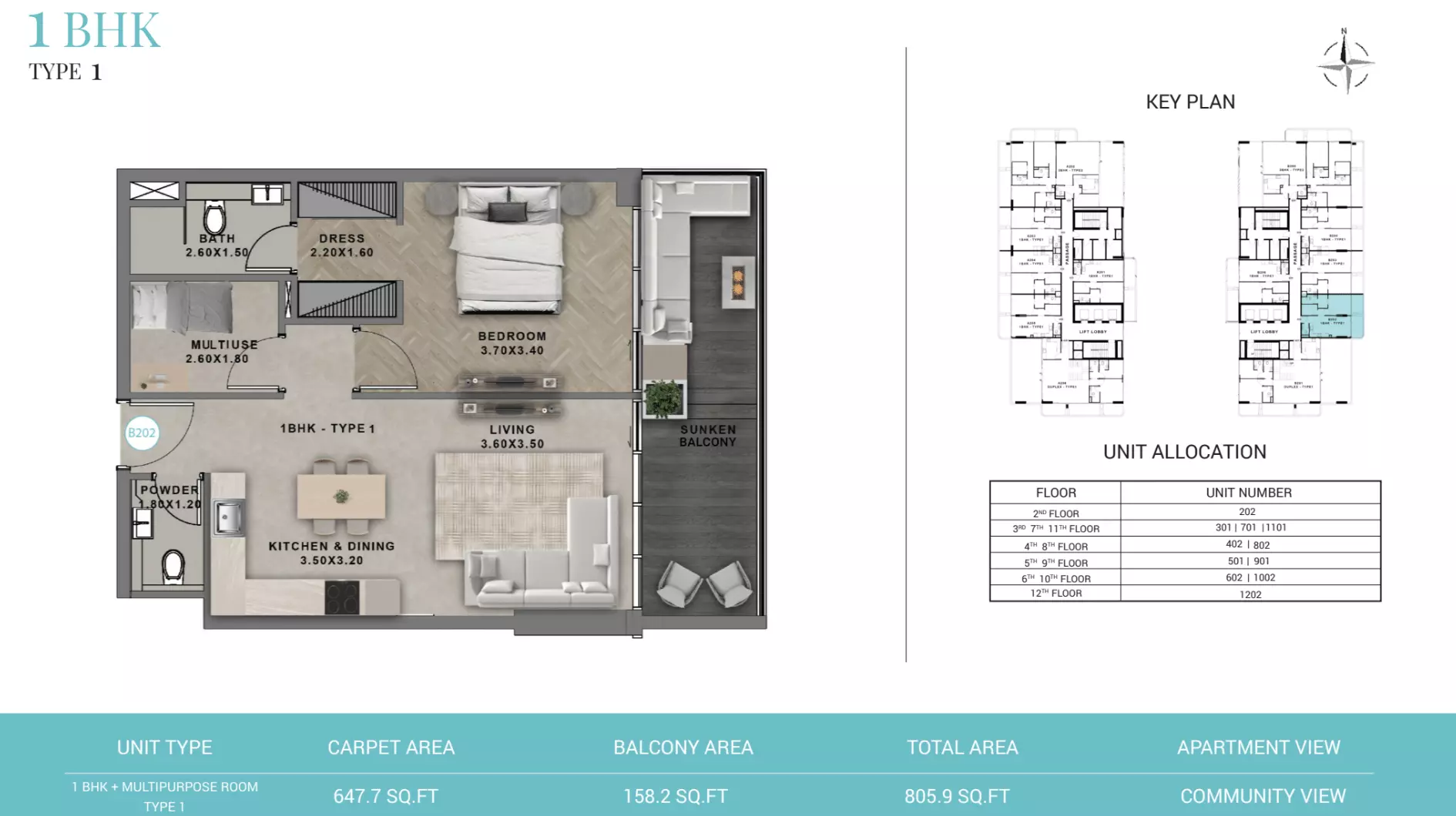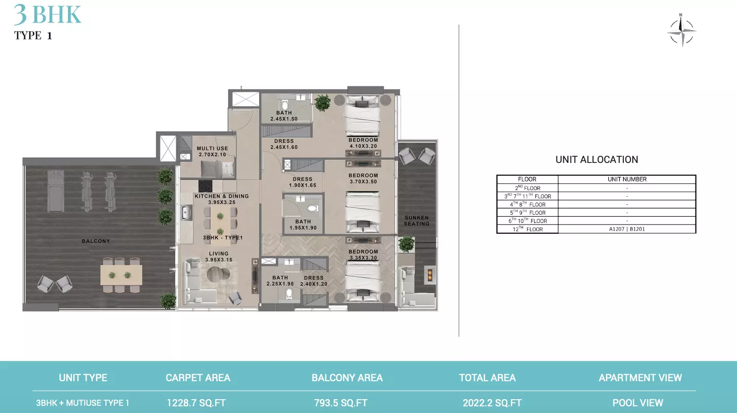 Reef 999 offers a variety of residential units designed to accommodate different lifestyle needs and budgets. The available housing options include • 1-bedroom apartments starting at AED 1.2 million, with sizes ranging from 793 to 916 square feet. For larger living spaces • 2-bedroom units are available starting from AED 2 million, offering areas between 1,338 and 1,875 square feet. • The 3-bedroom apartments begin at AED 2.7 million, with sizes ranging from 2,022 to 2,636 square feet. For those seeking expansive living. • 4-bedroom residences are offered starting at AED 4.4 million, with built-up areas between 3,423 and 3,693 square feet. These units are thoughtfully planned to meet high standards of comfort and modern living.