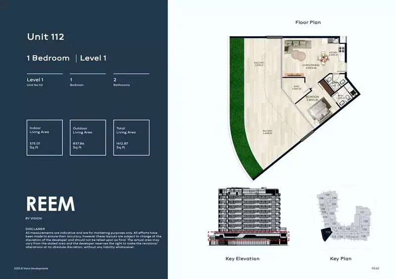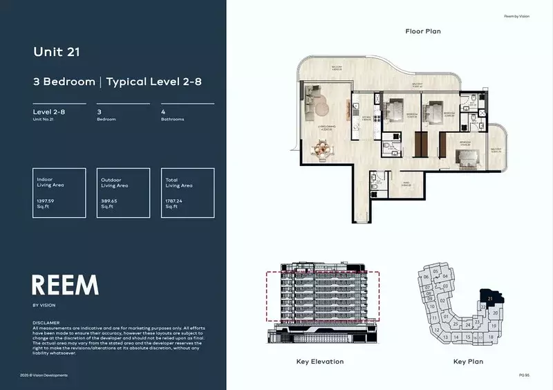 Reem by Vision offers a variety of housing options designed to suit different lifestyle needs, ranging from compact studios to spacious three-bedroom apartments. The studios cover 495 sqft, ideal for individuals seeking a functional and efficient living space. One-bedroom units are available in sizes between 941 and 1,412 sqft, offering a balance of comfort and practicality. For those needing more space, the two-bedroom apartments range from 1,183 to 2,087 sqft, providing ample room for families or professionals. The largest option, three-bedroom units, spans from 1,787 to 3,247 sqft, delivering expansive layouts with versatile living areas. Pricing details are available upon inquiry.